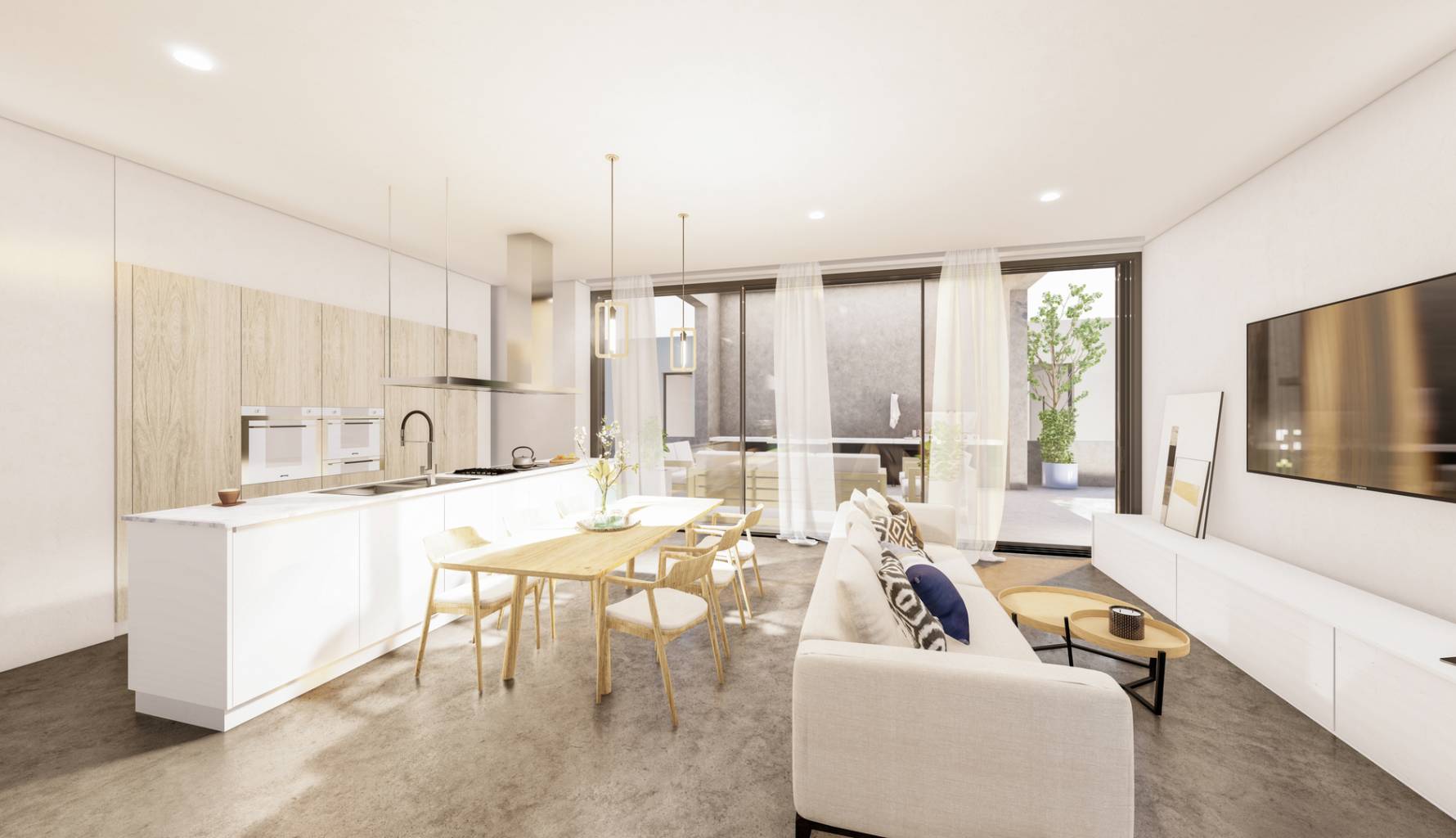 Das Innere dieser unabhängigen Häuser in Murcia ist so gestaltet, dass es maximalen Komfort und Funktionalität bietet. Die Verteilungsoptionen umfassen Häuser mit 2, 3 und 4 Schlafzimmern, mit 2 oder 3 Bädern, die sich an die Bedürfnisse verschiedener Familientypen anpassen. Die Böden aus Feinsteinzeug verleihen einen Hauch von Eleganz und sind pflegeleicht. Die Fußbodenheizung sorgt für eine warme Atmosphäre in den kälteren Monaten. Die Häuser sind mit modernen Geräten ausgestattet und verfügen über ein Smart-Home-System, das die Hausverwaltung erleichtert. Einbauschränke bieten effizienten Stauraum, während die Video-Gegensprechanlage ein zusätzliches Maß an Sicherheit und Komfort bietet.