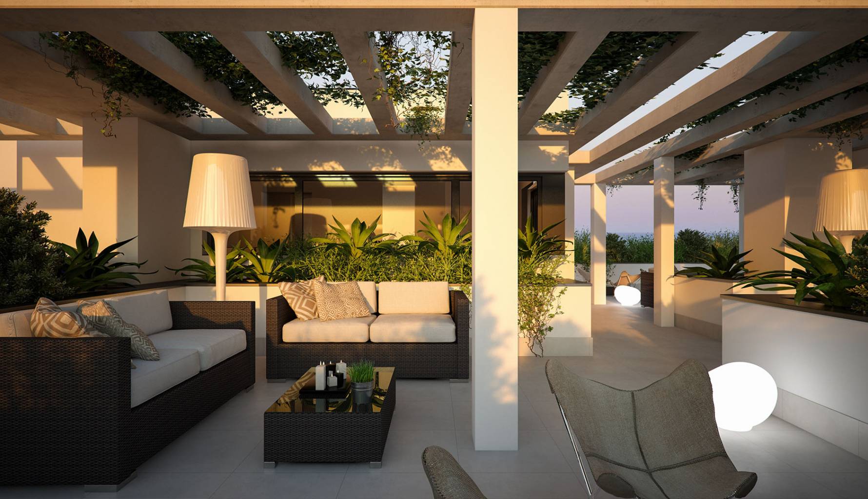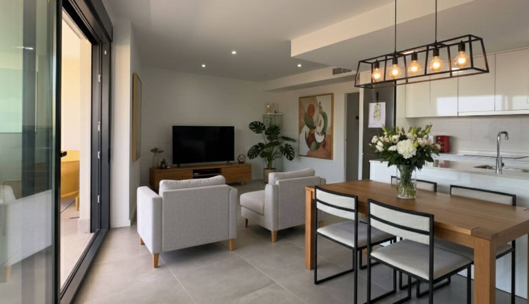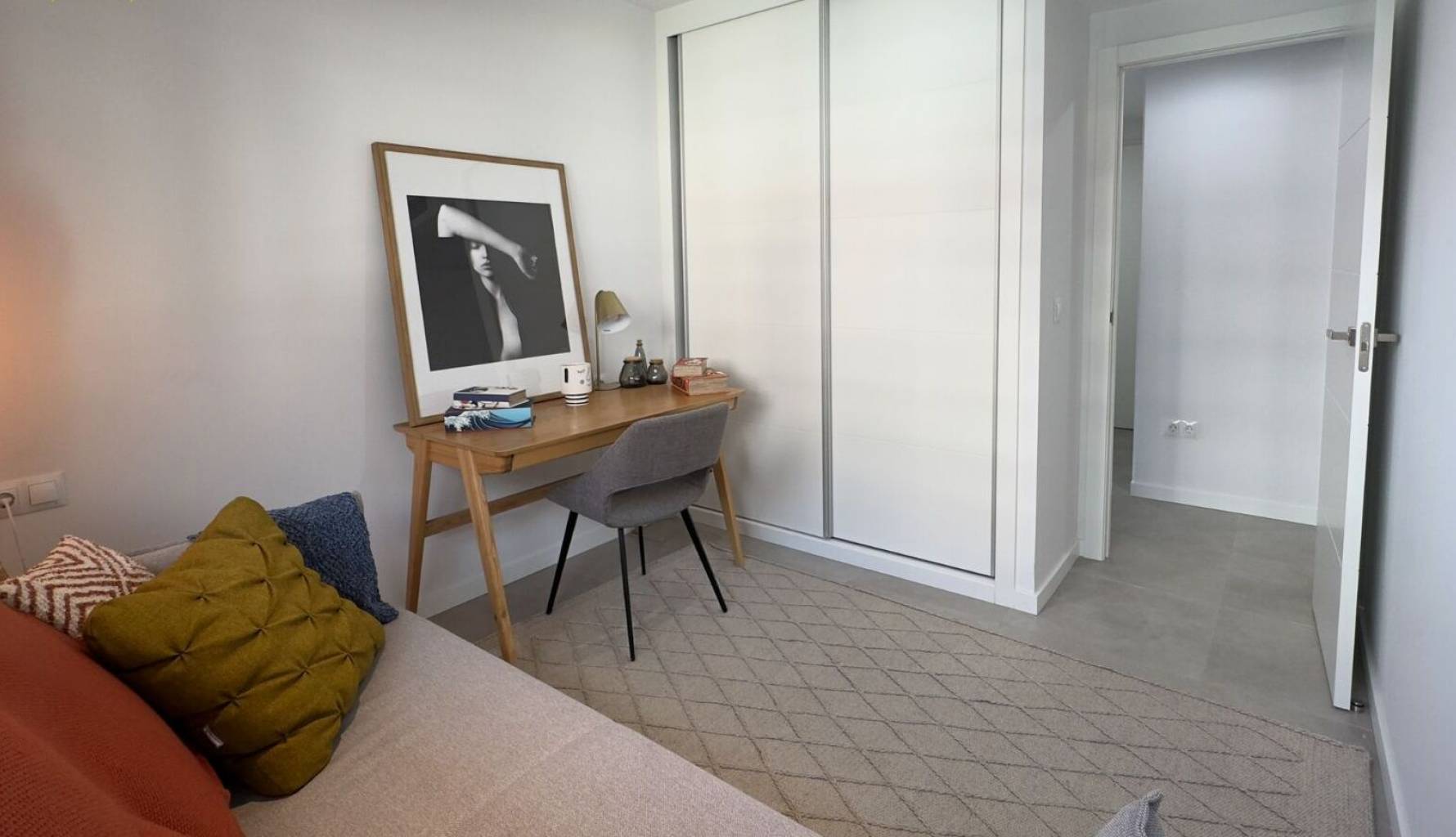 Das Innere der Wohnungen ist mit einem Fokus auf Qualität und Komfort gestaltet. Keramik- und Feinsteinzeugböden bieten eine elegante und langlebige Oberfläche. Die Wohnungen verfügen über 2 oder 3 Schlafzimmer und 2 Bäder, angepasst an unterschiedliche Familienbedürfnisse. Die Ausstattung mit Klimaanlage und modernen Geräten sorgt das ganze Jahr über für ein angenehmes Ambiente. Einbauschränke bieten praktische und effiziente Stauraumlösungen.