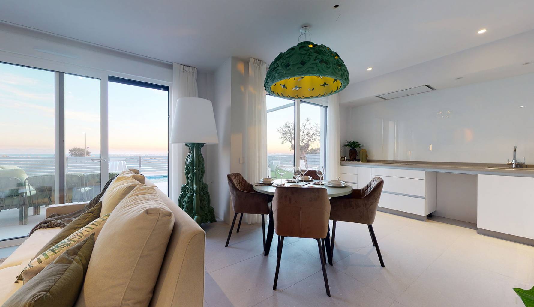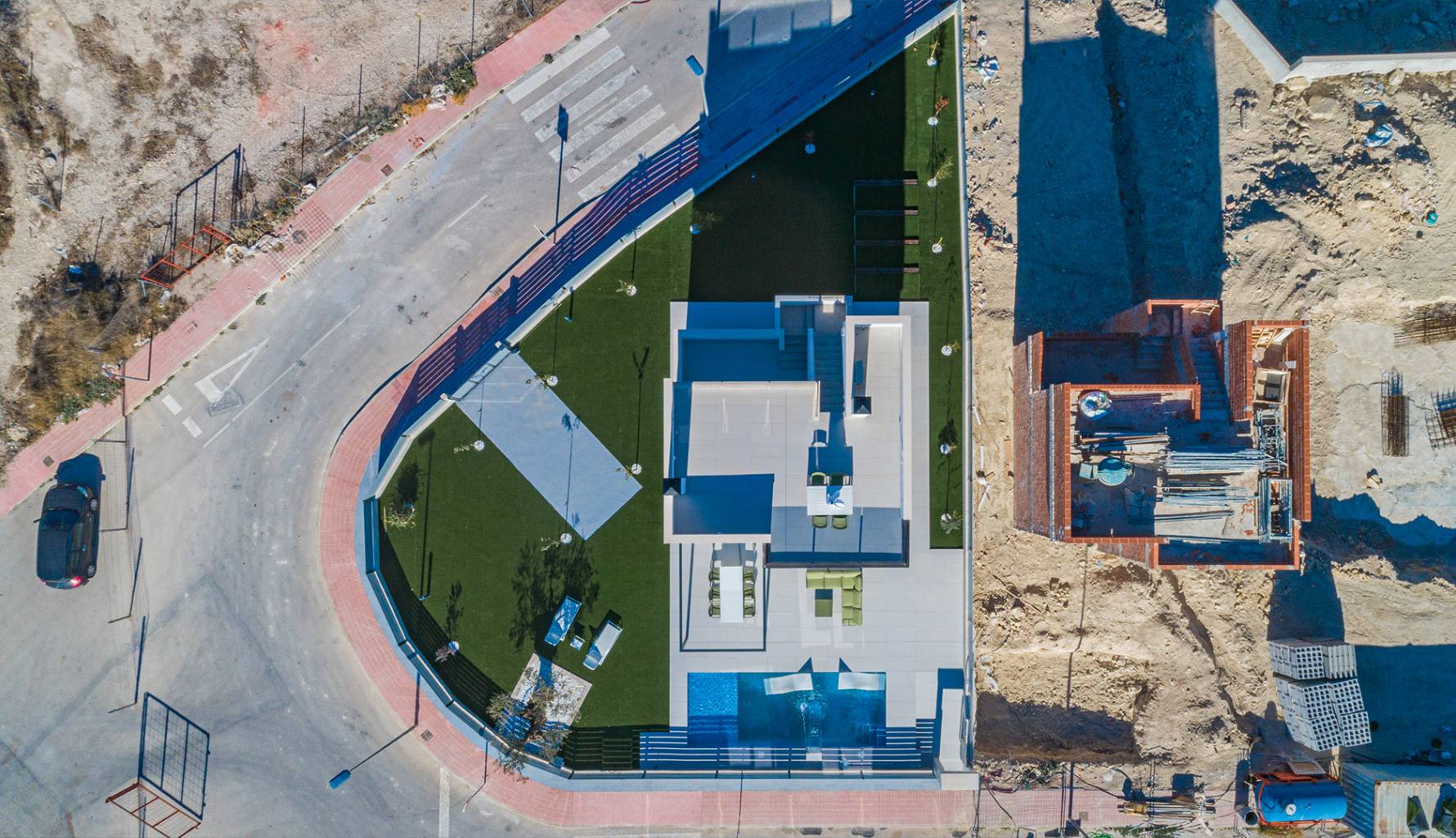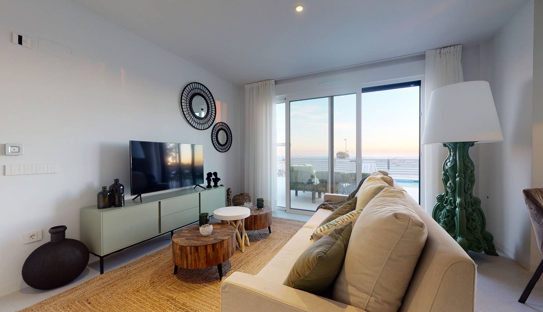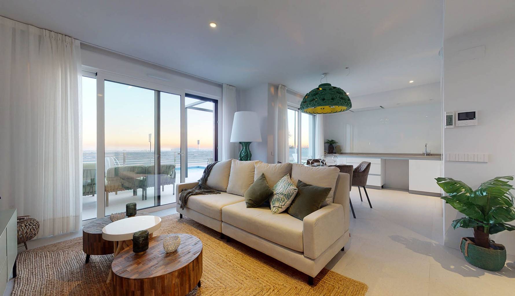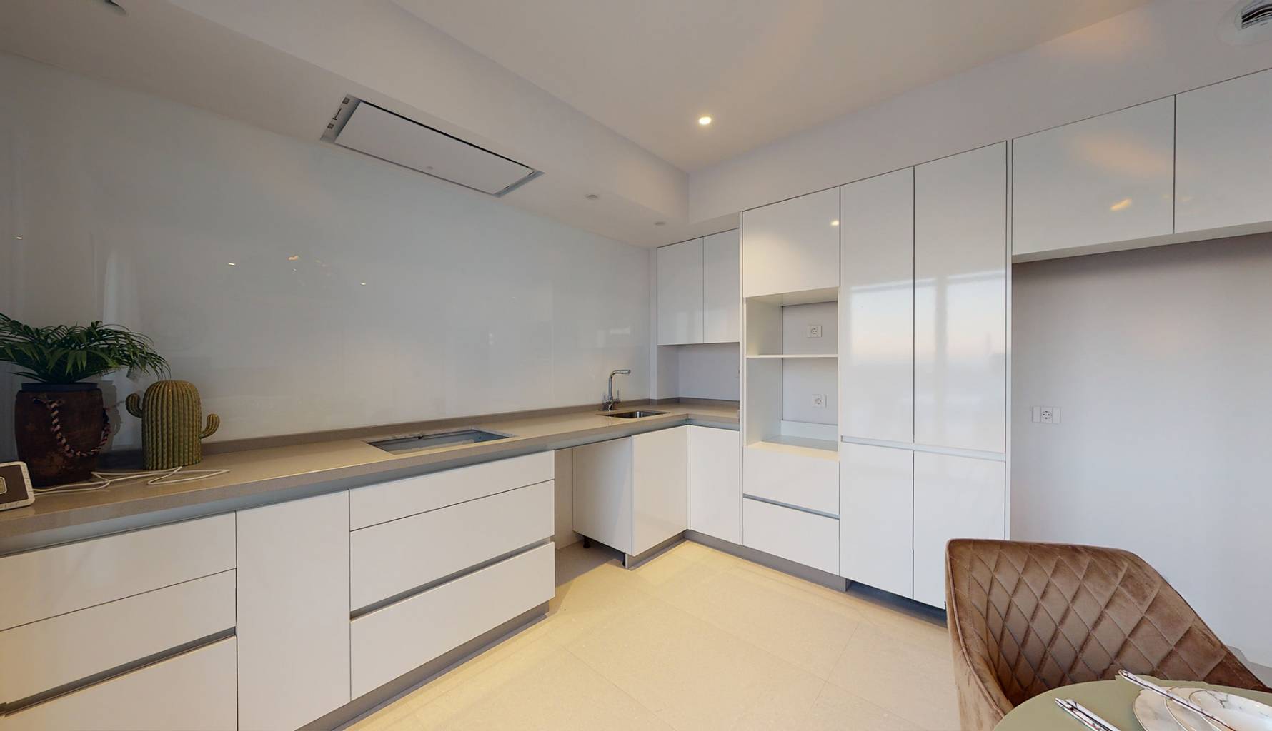 Die Außenbereiche dieser Häuser in Mutxamel sind so gestaltet, dass sie das mediterrane Klima optimal nutzen. Jede Immobilie verfügt über einen privaten Garten, ideal, um eine persönliche Oase der Ruhe zu schaffen. Die Terrassen bieten zusätzlichen Außenraum, ideal für Abendessen im Freien oder einfach zum Entspannen, während man den Meerblick genießt. Darüber hinaus verfügt jedes Haus über einen privaten Pool, der an warmen Sommertagen einen erfrischenden Ort bietet. Das Solarium ist ein weiteres Highlight und bietet einen erhöhten Bereich zum Sonnenbaden mit völliger Privatsphäre.