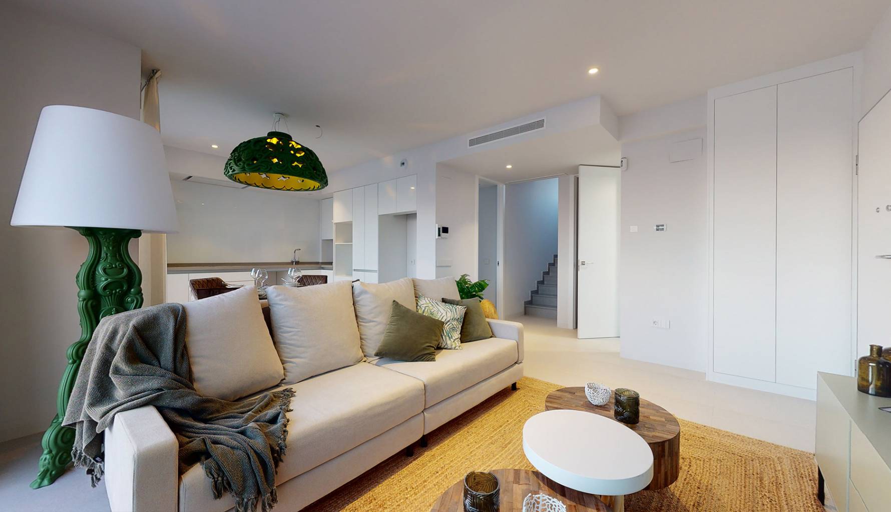 Das Innere dieser unabhängigen Häuser in Mutxamel ist sorgfältig gestaltet, um Komfort und Funktionalität zu bieten. Die Keramikböden verleihen einen modernen Touch und sind pflegeleicht. Die Häuser sind mit Haushaltsgeräten ausgestattet, was den Alltag von Anfang an erleichtert. Einbauschränke bieten viel Stauraum und sorgen für Ordnung und Organisation. Darüber hinaus gibt es eine Vorinstallation für Klimaanlagen, die eine effiziente Klimatisierung je nach saisonalen Bedürfnissen ermöglicht. Die Aufteilung umfasst Optionen mit 3 Schlafzimmern und 2 oder 3 Bädern, die sich an unterschiedliche familiäre Bedürfnisse anpassen. Die Video-Gegensprechanlage bietet ein zusätzliches Maß an Sicherheit und Komfort.