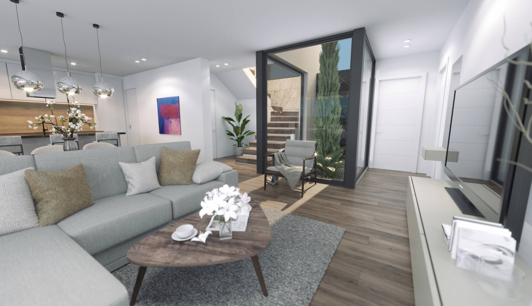 Das Innere dieser freistehenden Häuser in Finestrat ist darauf ausgelegt, maximalen Komfort und Funktionalität zu bieten. Mit Optionen von 3 Schlafzimmern und 2 oder 3 Bädern ist jedes Haus so gestaltet, dass es den Bedürfnissen der Bewohner entspricht. Die Böden aus Feinsteinzeug verleihen einen modernen Touch und sind pflegeleicht. Die Küchen sind mit hochwertigen Geräten ausgestattet, was den Alltag erleichtert. Einbauschränke bieten effizienten Stauraum und erhalten die Ordnung und Ästhetik des Hauses. Darüber hinaus verfügt jedes Haus über eine Garage, die Komfort und Sicherheit für Fahrzeuge gewährleistet.