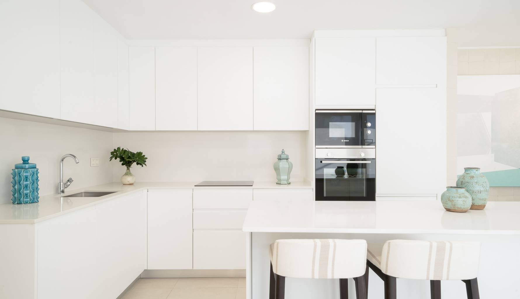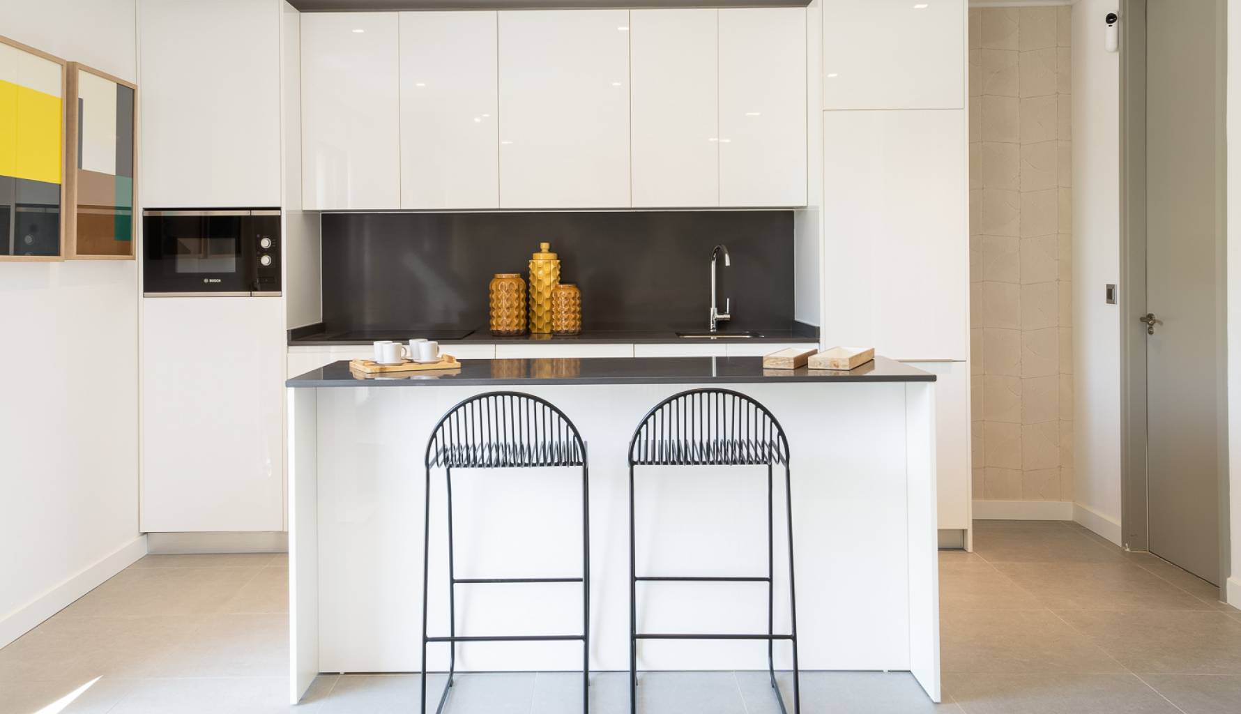 Die Wohnungen bieten eine vielseitige Aufteilung, die sich an verschiedene Bedürfnisse anpasst, mit Optionen von 1 bis 4 Schlafzimmern und 1 oder 2 Bädern. Die Innenräume sind mit einem Fokus auf Qualität und Komfort gestaltet, einschließlich Porzellanböden, die eine moderne und elegante Ausstrahlung verleihen. Die Küchen sind mit den neuesten Geräten vollständig ausgestattet, und die Klimaanlage sorgt das ganze Jahr über für ein angenehmes Ambiente. Einbauschränke bieten effiziente Stauraumlösungen und optimieren den verfügbaren Platz.