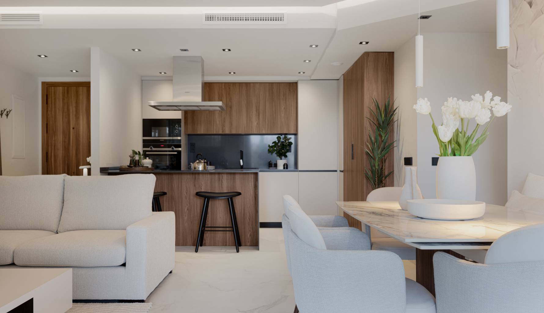 Die Wohnungen dieses Wohnkomplexes in Marbella sind mit hochwertigen Merkmalen ausgestattet, um maximalen Komfort zu gewährleisten. Die Böden aus Feinsteinzeug verleihen Eleganz und Langlebigkeit. Elektrische Rollläden und Klimaanlage sorgen das ganze Jahr über für ein angenehmes Ambiente. Die Küchen sind mit modernen Geräten komplett ausgestattet, was den Alltag erleichtert. Einbauschränke bieten viel Stauraum und halten jedes Zimmer ordentlich und funktional. Die Immobilien sind in Konfigurationen mit 2, 3 und 4 Schlafzimmern sowie 2 oder 3 Bädern erhältlich und passen sich den Bedürfnissen verschiedener Familientypen an.