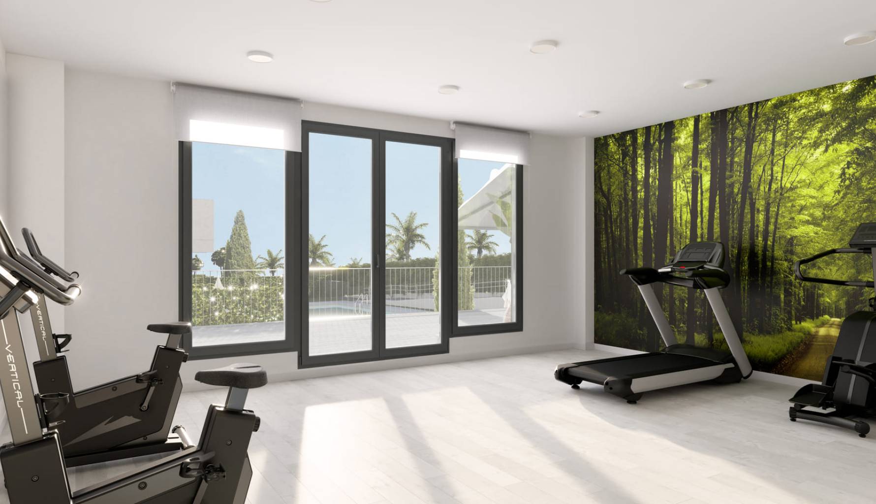 Das Innere der Wohnungen ist sorgfältig gestaltet, um Komfort und Stil zu bieten. Die Apartments verfügen über Plattformböden, die einen modernen und eleganten Touch verleihen. Sicherheit und Komfort sind mit einer Video-Gegensprechanlage und elektrischen Rollläden gewährleistet. Einbauschränke bieten effizienten Stauraum, während die Vorinstallation der Klimaanlage dafür sorgt, dass das Raumklima immer angenehm ist. Die Wohnungen sind in Konfigurationen mit 2 oder 3 Schlafzimmern erhältlich, alle mit 2 Bädern, was sie ideal für Familien sowie Paare oder Einzelpersonen macht, die zusätzlichen Raum suchen.