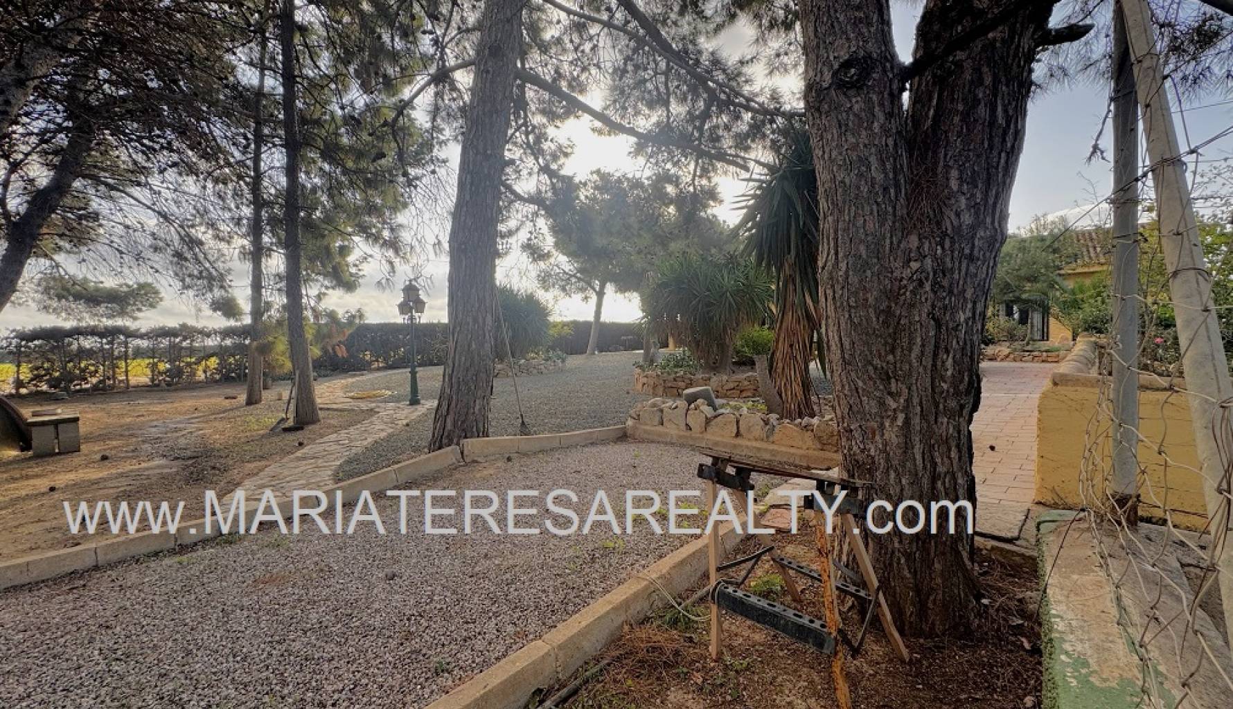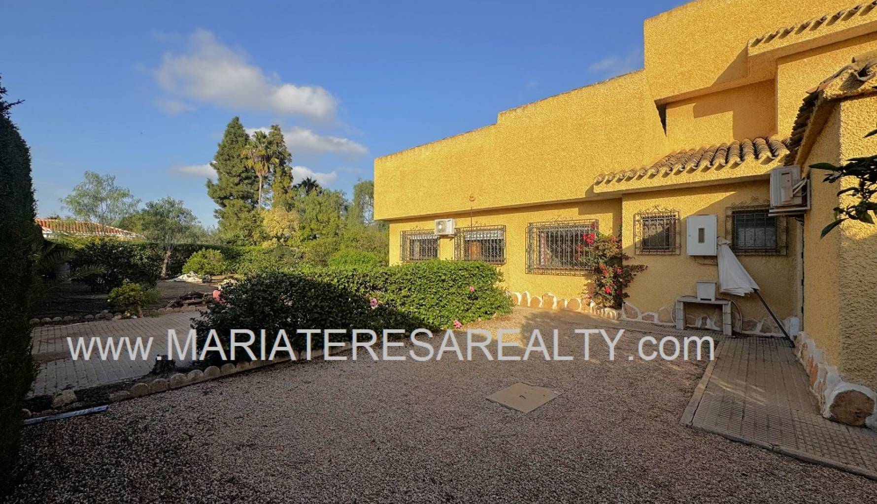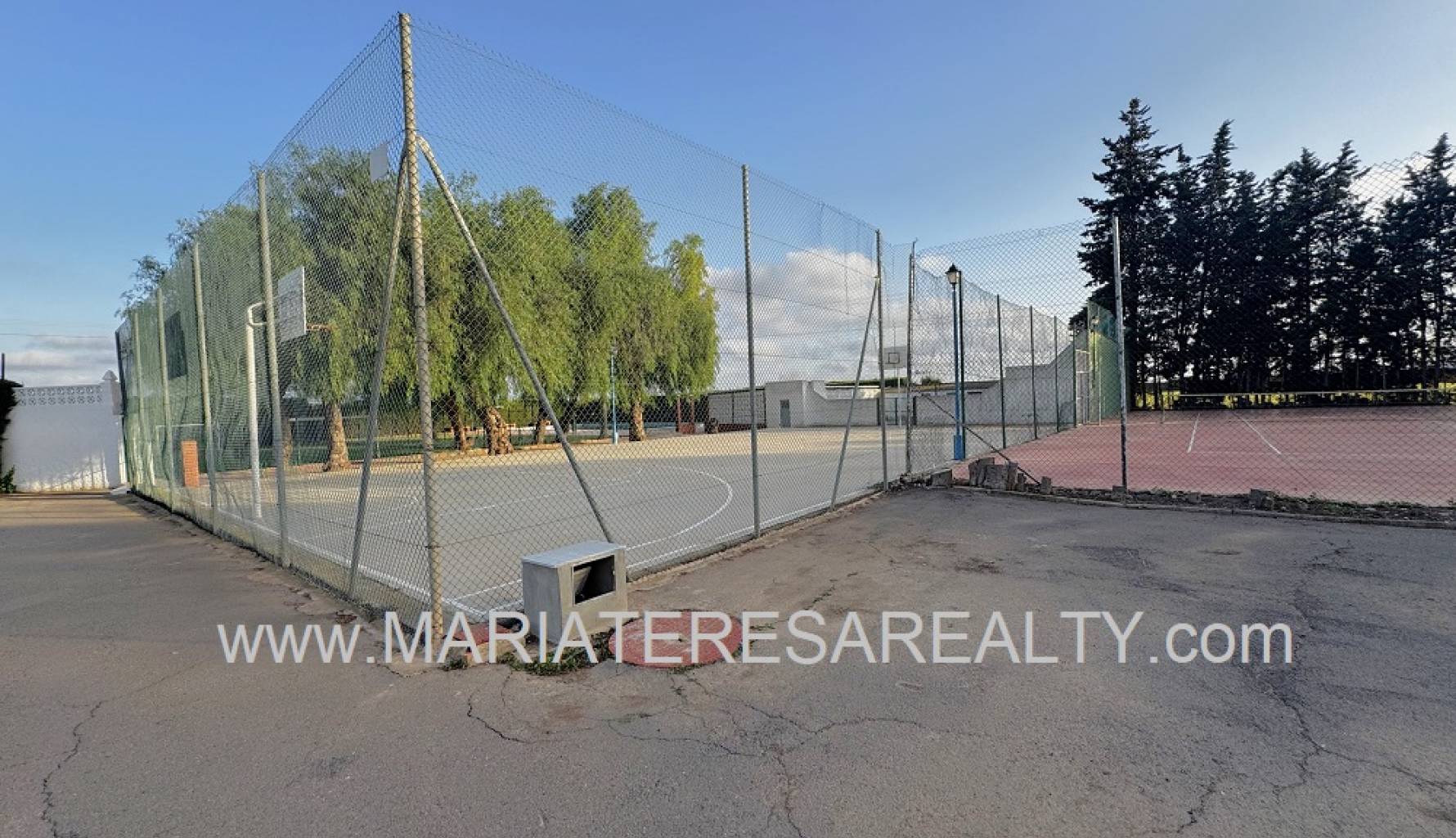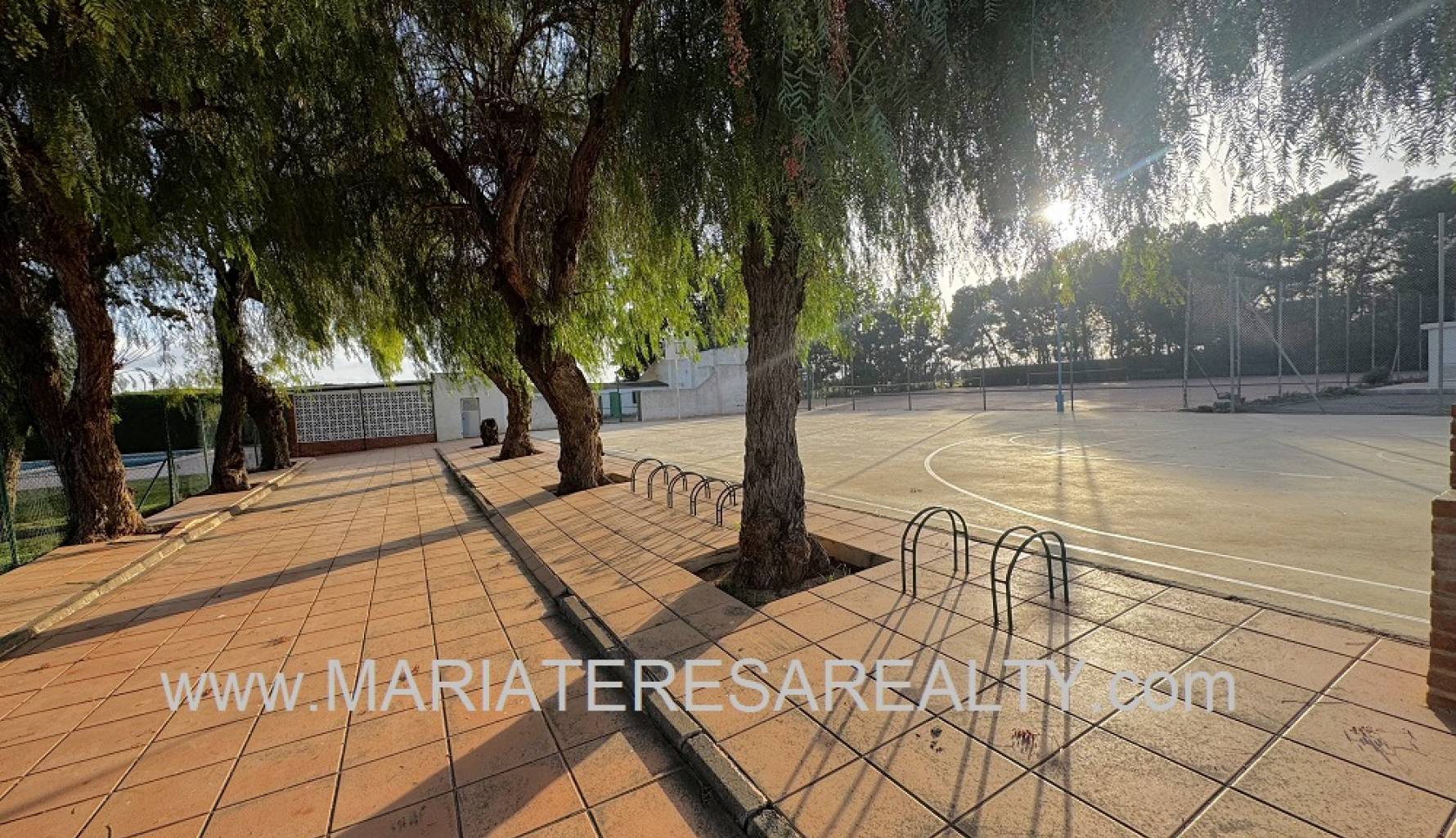 Spektakuläre, freistehende Villa mit einem 3.000 m² großen Grundstück und 200 m² Wohnfläche, nur 8 Minuten von Los Alcázares, 10 Minuten von Cartagena, 25 Minuten vom Zentrum von Murcia und 15 Minuten vom internationalen Flughafen Corvera entfernt. Der weitläufige Garten bietet zwei Zugänge von verschiedenen Straßen, diverse Obstbäume, eine überdachte Veranda mit eingebautem Grill und eine weitere Veranda, die zum Haus führt. Im Haus selbst finden Sie einen geräumigen, klimatisierten Essbereich, ein großes und helles Wohnzimmer mit Kamin, ein großes Schlafzimmer mit Einbauschrank, einen Arbeitsbereich mit Einbauschrank, ein weiteres Schlafzimmer mit Einbauschrank, ein Badezimmer mit Dusche sowie ein Hauptschlafzimmer mit begehbarem Kleiderschrank und eigenem Badezimmer mit Dusche und Badewanne sowie separatem Warmwasserbereiter. Dieses Schlafzimmer verfügt außerdem über große Fenster mit direktem Zugang zum Garten und ist klimatisiert. Die voll ausgestattete Küche bietet Zugang zum Garten, einer Speisekammer und einem großen, klimatisierten Essbereich. Von der Küche führt eine Treppe ins Untergeschoss. Von der Küche gelangt man außerdem in die 37 m² große Garage mit Platz für zwei Autos und zusätzlichem Stauraum. Im Obergeschoss befindet sich ein Flur mit einem großen Einbauschrank und Zugang zum geräumigen Schlafzimmer. Dieses verfügt ebenfalls über eine Klimaanlage, eine ca. 9 m² große Terrasse mit Blick auf den Garten, einen weiteren großen Einbauschrank und ein Badezimmer en suite mit Badewanne. Die Wohnanlage bietet einen großen Gemeinschaftspool, Tennisplätze sowie Fußball- und Basketballplätze – alles nur 100 Meter von der Villa entfernt. Die monatlichen Gemeinschaftsgebühren betragen 100 € und beinhalten Wasser, Müllabfuhr sowie die Instandhaltung der Anlage und der Gemeinschaftsflächen. Zur Ausstattung gehören Sicherheitsgitter an allen Fenstern, doppelt verglaste Fenster, ausziehbare Moskitonetze, beheizte Handtuchhalter in allen Badezimmern und ein Glasfaseranschluss.