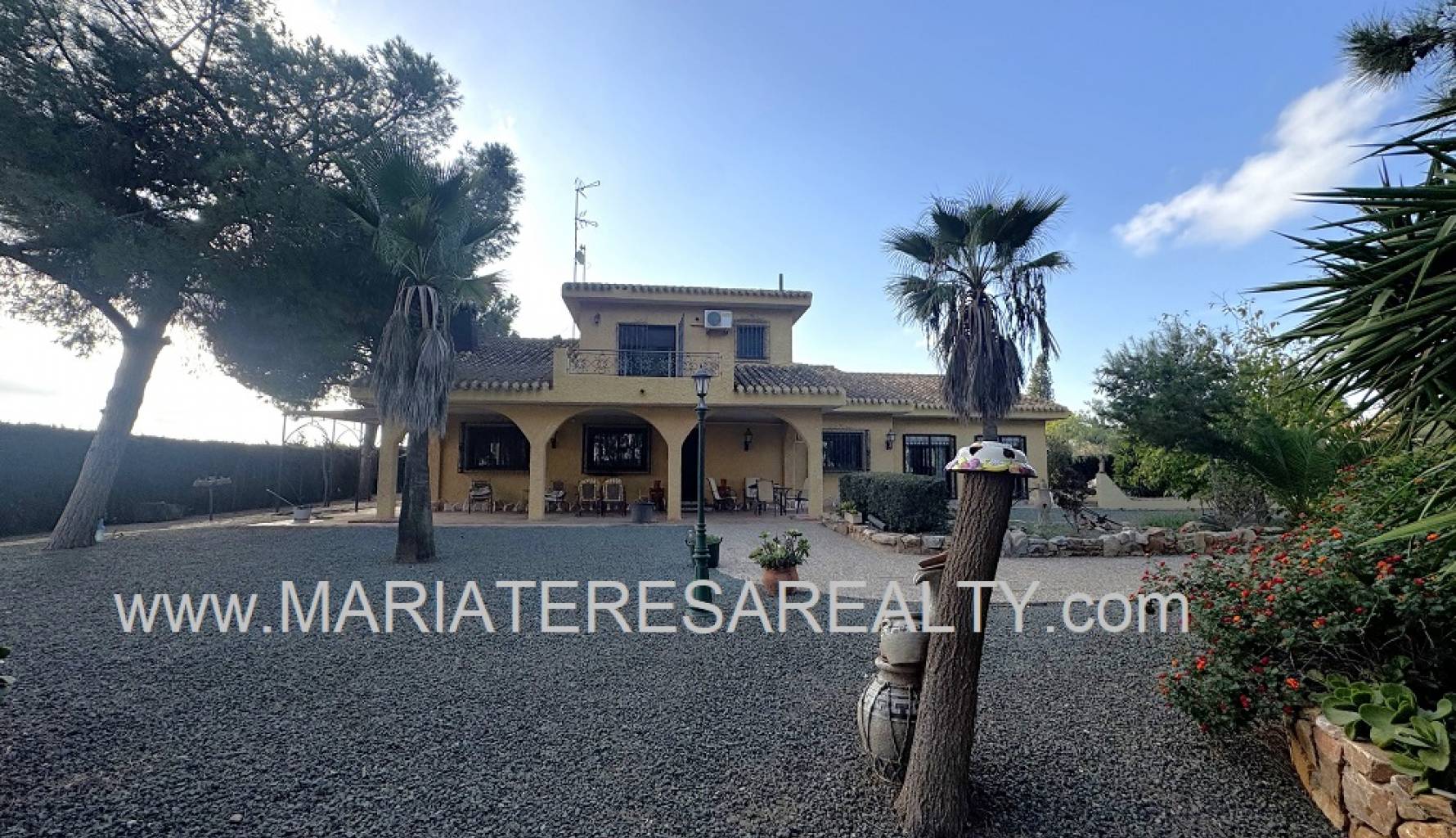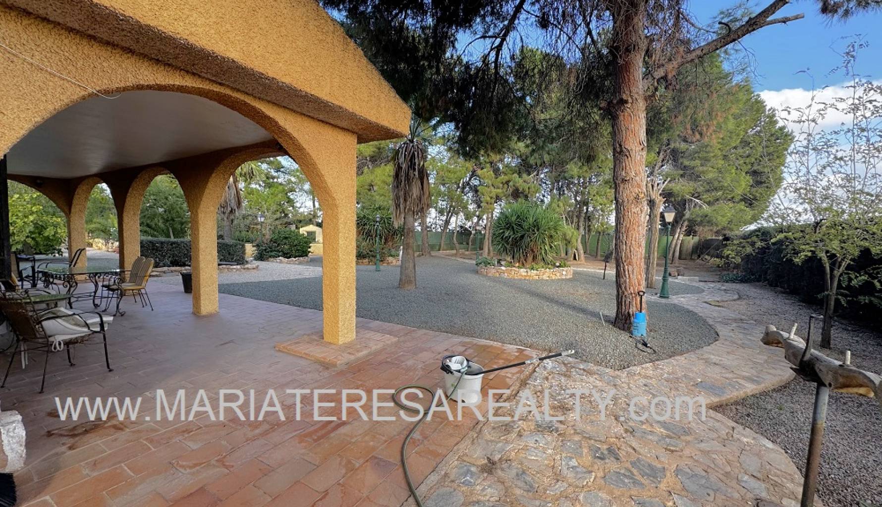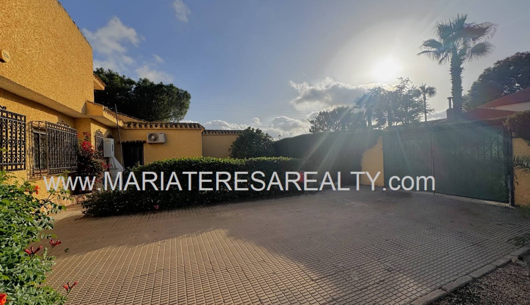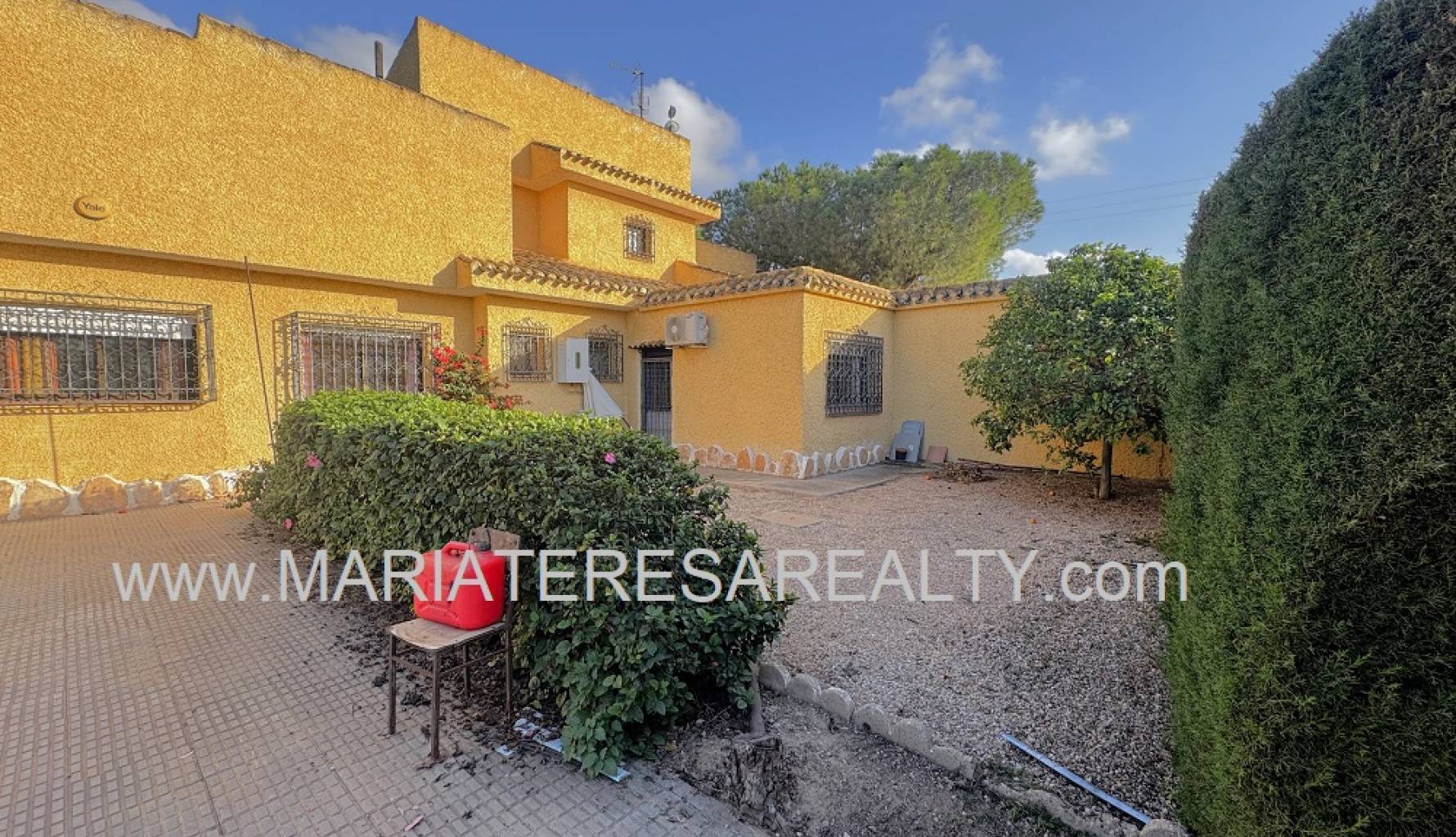 Spektakuläre, freistehende Villa mit einem 3.000 m² großen Grundstück und 200 m² Wohnfläche, nur 8 Minuten von Los Alcázares, 10 Minuten von Cartagena, 25 Minuten vom Zentrum von Murcia und 15 Minuten vom internationalen Flughafen Corvera entfernt. Der weitläufige Garten bietet zwei Zugänge von verschiedenen Straßen, diverse Obstbäume, eine überdachte Veranda mit eingebautem Grill und eine weitere Veranda, die zum Haus führt. Im Haus selbst finden Sie einen geräumigen, klimatisierten Essbereich, ein großes und helles Wohnzimmer mit Kamin, ein großes Schlafzimmer mit Einbauschrank, einen Arbeitsbereich mit Einbauschrank, ein weiteres Schlafzimmer mit Einbauschrank, ein Badezimmer mit Dusche sowie ein Hauptschlafzimmer mit begehbarem Kleiderschrank und eigenem Badezimmer mit Dusche und Badewanne sowie separatem Warmwasserbereiter. Dieses Schlafzimmer verfügt außerdem über große Fenster mit direktem Zugang zum Garten und ist klimatisiert. Die voll ausgestattete Küche bietet Zugang zum Garten, einer Speisekammer und einem großen, klimatisierten Essbereich. Von der Küche führt eine Treppe ins Untergeschoss. Von der Küche gelangt man außerdem in die 37 m² große Garage mit Platz für zwei Autos und zusätzlichem Stauraum. Im Obergeschoss befindet sich ein Flur mit einem großen Einbauschrank und Zugang zum geräumigen Schlafzimmer. Dieses verfügt ebenfalls über eine Klimaanlage, eine ca. 9 m² große Terrasse mit Blick auf den Garten, einen weiteren großen Einbauschrank und ein Badezimmer en suite mit Badewanne. Die Wohnanlage bietet einen großen Gemeinschaftspool, Tennisplätze sowie Fußball- und Basketballplätze – alles nur 100 Meter von der Villa entfernt. Die monatlichen Gemeinschaftsgebühren betragen 100 € und beinhalten Wasser, Müllabfuhr sowie die Instandhaltung der Anlage und der Gemeinschaftsflächen. Zur Ausstattung gehören Sicherheitsgitter an allen Fenstern, doppelt verglaste Fenster, ausziehbare Moskitonetze, beheizte Handtuchhalter in allen Badezimmern und ein Glasfaseranschluss.