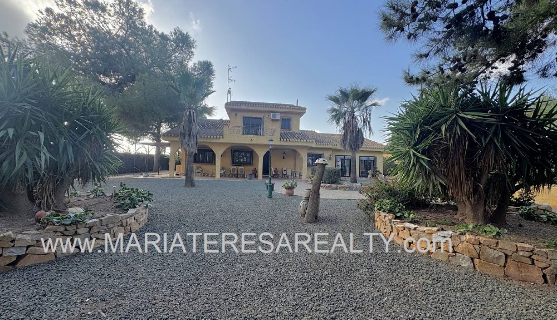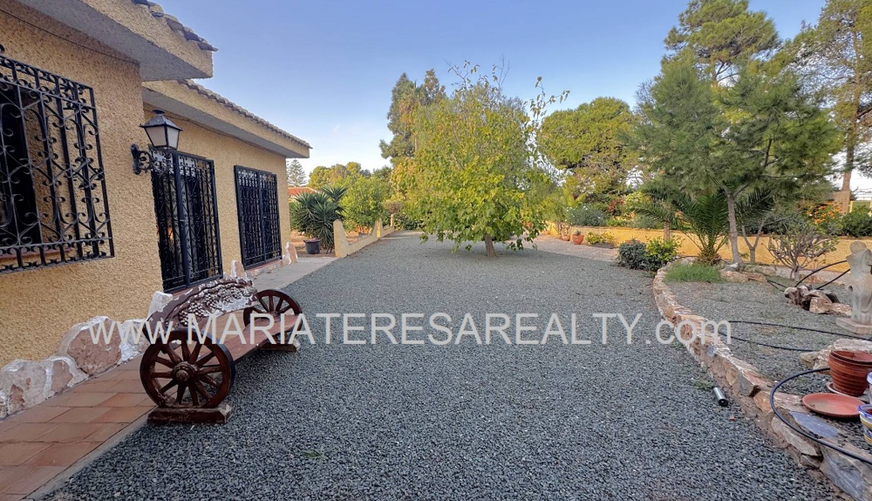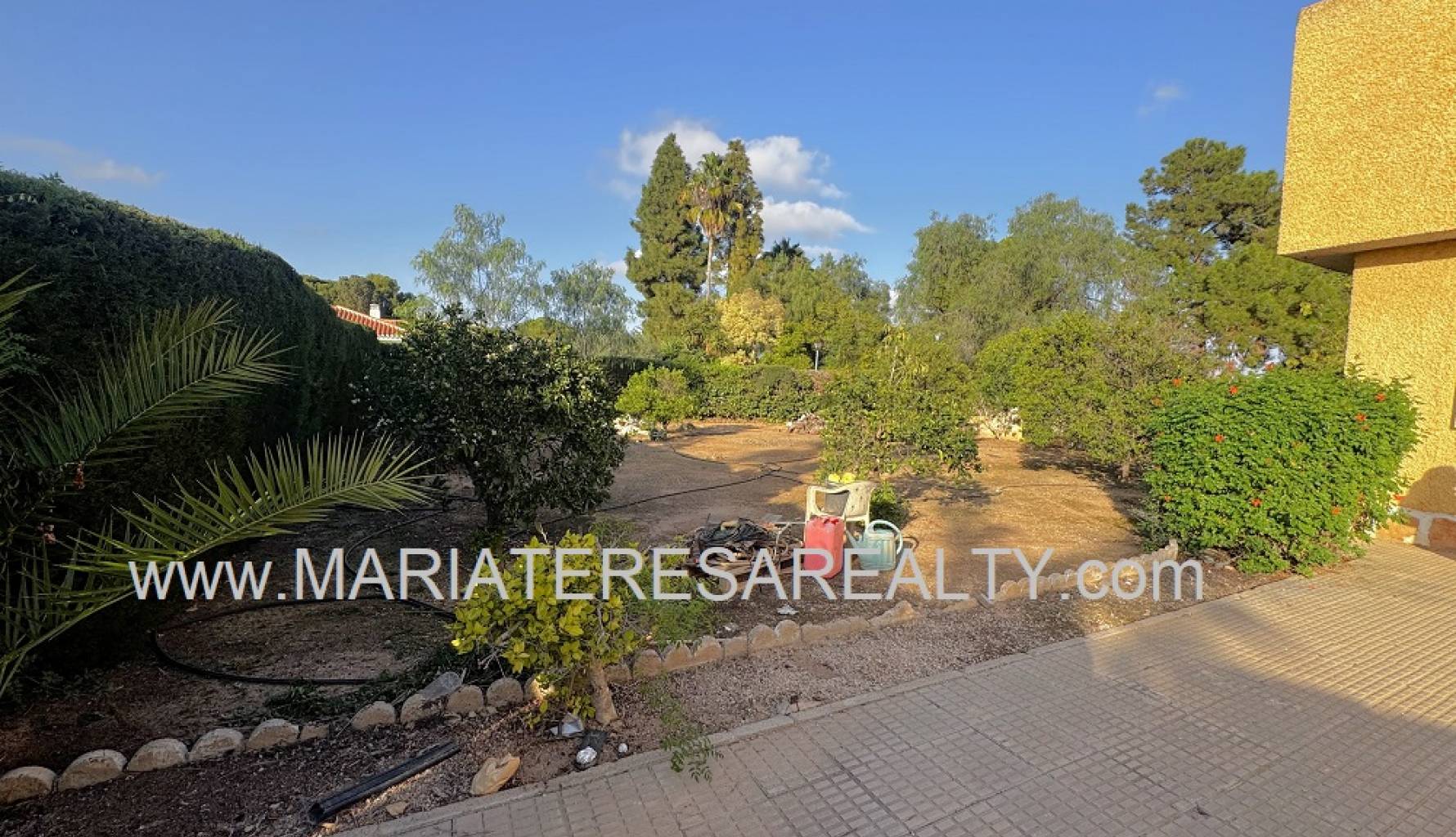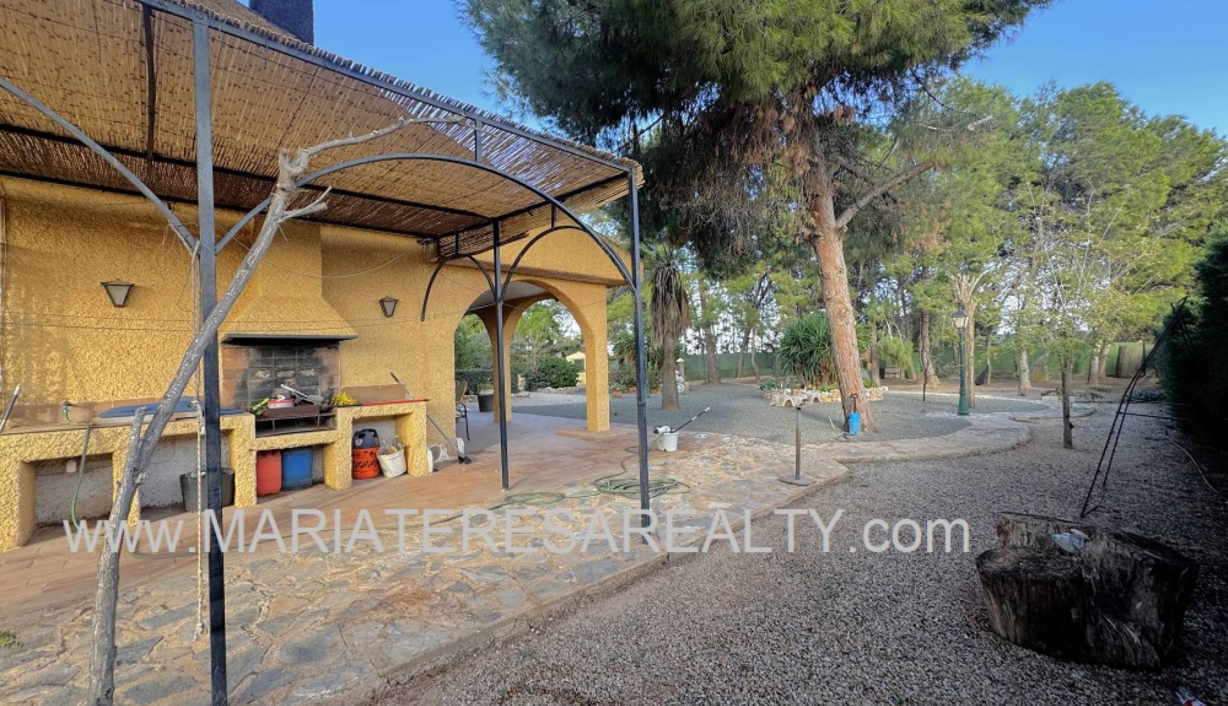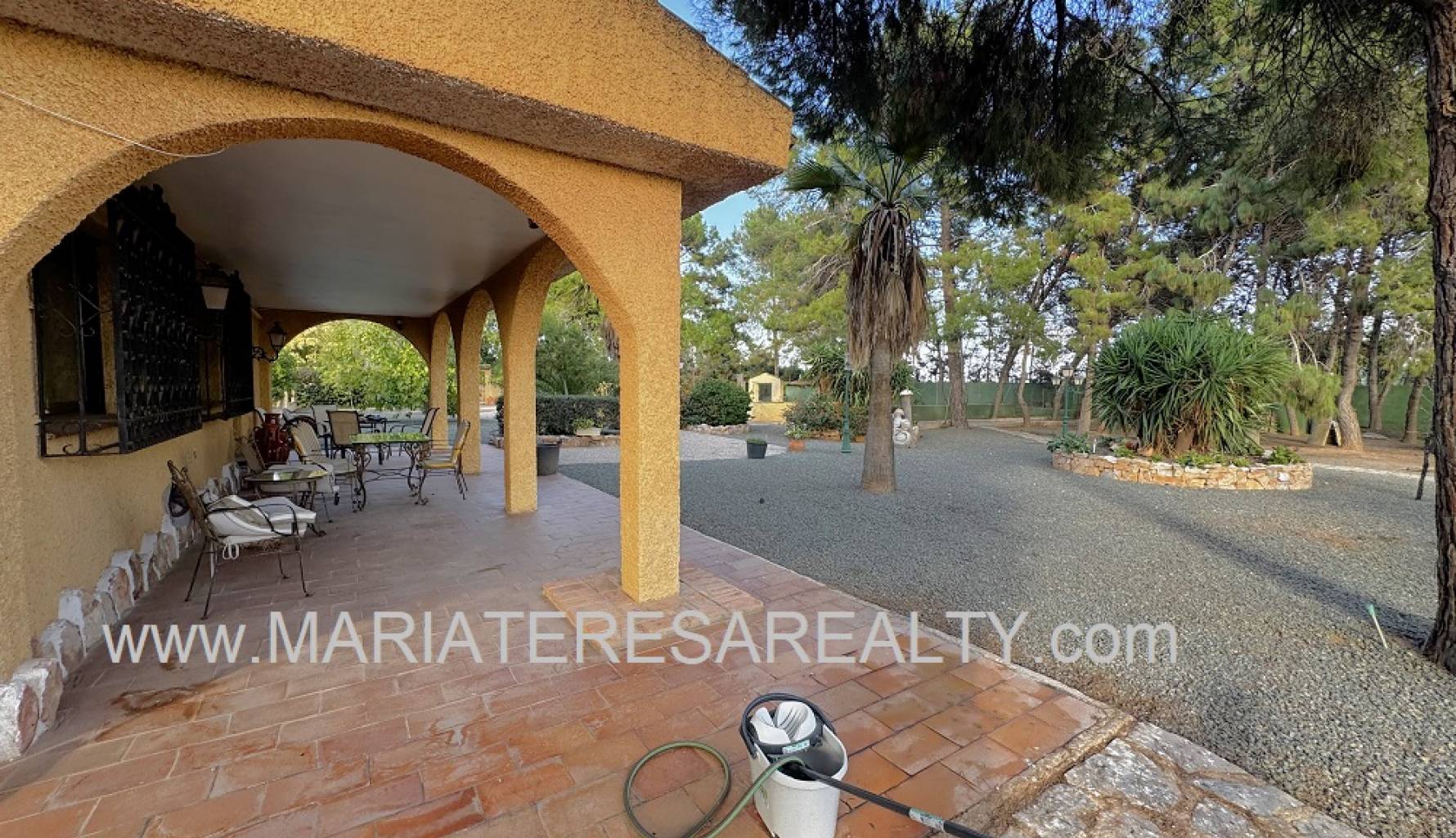 Spektakuläre, freistehende Villa mit einem 3.000 m² großen Grundstück und 200 m² Wohnfläche, nur 8 Minuten von Los Alcázares, 10 Minuten von Cartagena, 25 Minuten vom Zentrum von Murcia und 15 Minuten vom internationalen Flughafen Corvera entfernt. Der weitläufige Garten bietet zwei Zugänge von verschiedenen Straßen, diverse Obstbäume, eine überdachte Veranda mit eingebautem Grill und eine weitere Veranda, die zum Haus führt. Im Haus selbst finden Sie einen geräumigen, klimatisierten Essbereich, ein großes und helles Wohnzimmer mit Kamin, ein großes Schlafzimmer mit Einbauschrank, einen Arbeitsbereich mit Einbauschrank, ein weiteres Schlafzimmer mit Einbauschrank, ein Badezimmer mit Dusche sowie ein Hauptschlafzimmer mit begehbarem Kleiderschrank und eigenem Badezimmer mit Dusche und Badewanne sowie separatem Warmwasserbereiter. Dieses Schlafzimmer verfügt außerdem über große Fenster mit direktem Zugang zum Garten und ist klimatisiert. Die voll ausgestattete Küche bietet Zugang zum Garten, einer Speisekammer und einem großen, klimatisierten Essbereich. Von der Küche führt eine Treppe ins Untergeschoss. Von der Küche gelangt man außerdem in die 37 m² große Garage mit Platz für zwei Autos und zusätzlichem Stauraum. Im Obergeschoss befindet sich ein Flur mit einem großen Einbauschrank und Zugang zum geräumigen Schlafzimmer. Dieses verfügt ebenfalls über eine Klimaanlage, eine ca. 9 m² große Terrasse mit Blick auf den Garten, einen weiteren großen Einbauschrank und ein Badezimmer en suite mit Badewanne. Die Wohnanlage bietet einen großen Gemeinschaftspool, Tennisplätze sowie Fußball- und Basketballplätze – alles nur 100 Meter von der Villa entfernt. Die monatlichen Gemeinschaftsgebühren betragen 100 € und beinhalten Wasser, Müllabfuhr sowie die Instandhaltung der Anlage und der Gemeinschaftsflächen. Zur Ausstattung gehören Sicherheitsgitter an allen Fenstern, doppelt verglaste Fenster, ausziehbare Moskitonetze, beheizte Handtuchhalter in allen Badezimmern und ein Glasfaseranschluss.