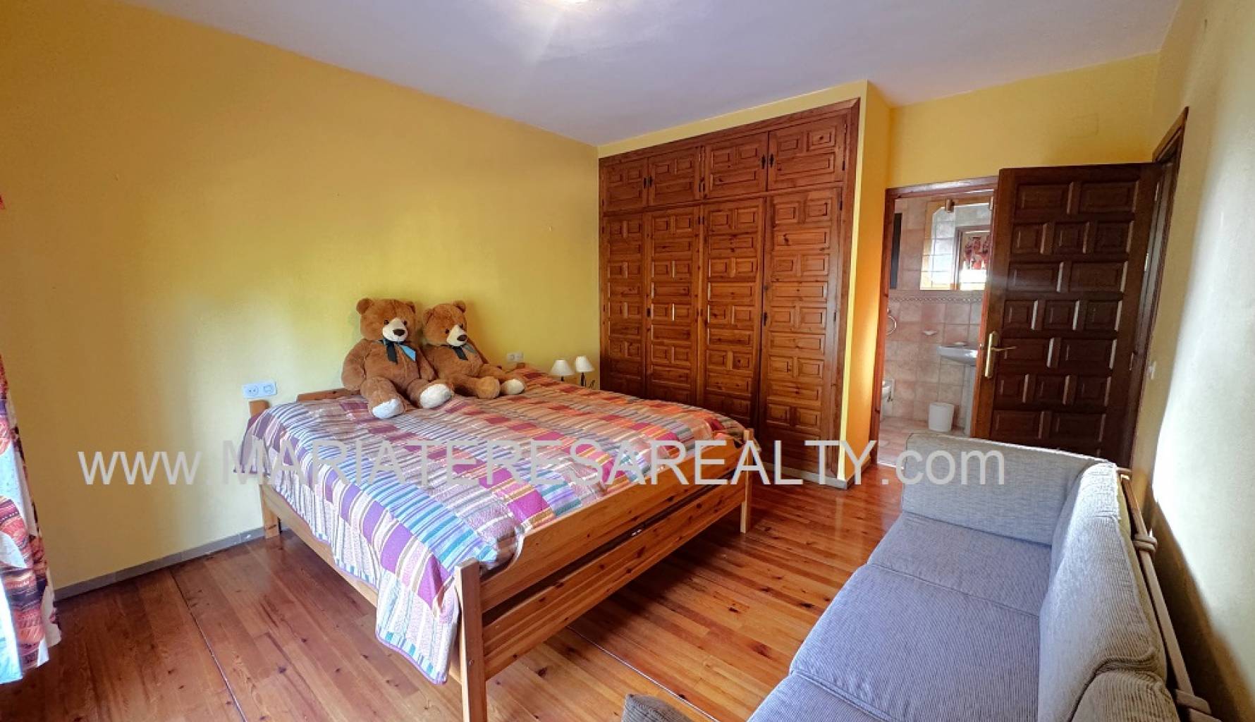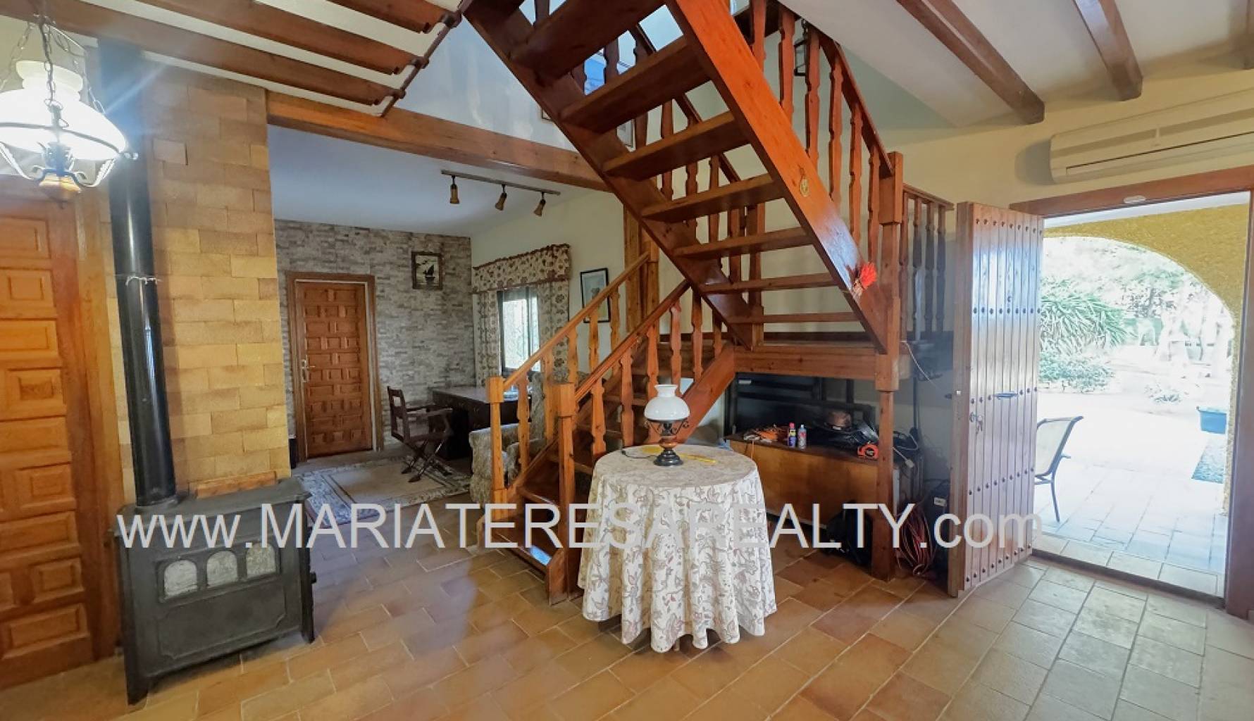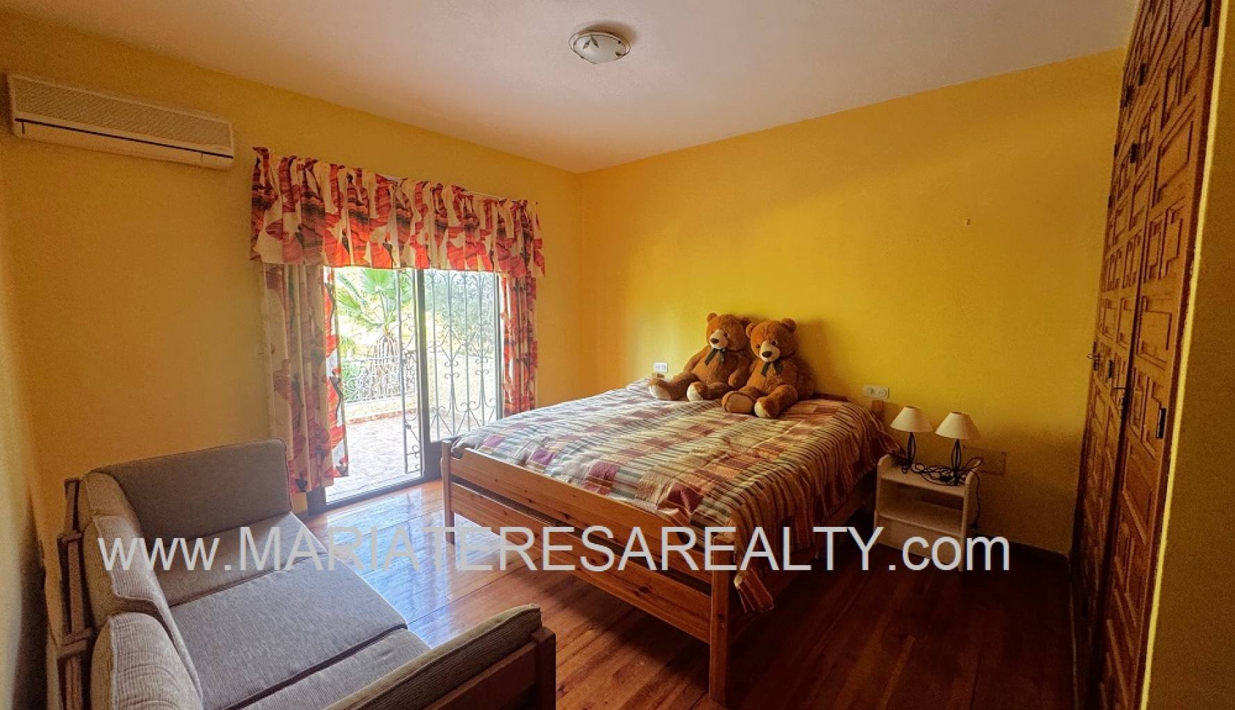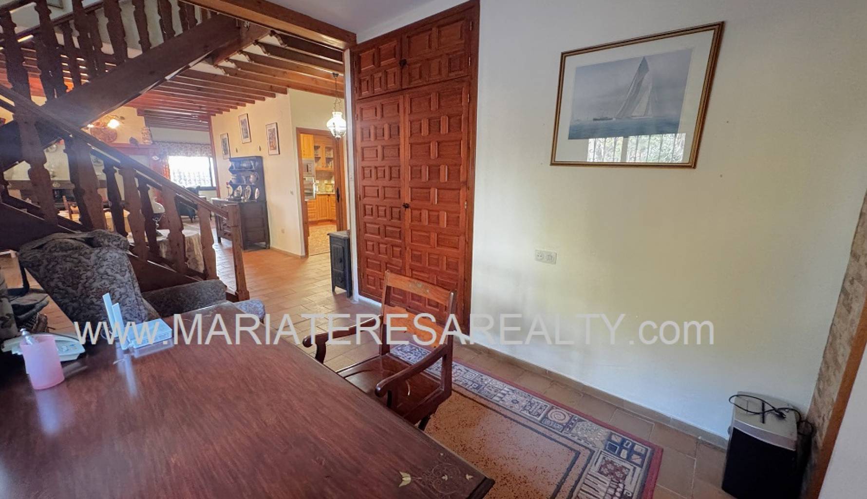 Spektakuläre, freistehende Villa mit einem 3.000 m² großen Grundstück und 200 m² Wohnfläche, nur 8 Minuten von Los Alcázares, 10 Minuten von Cartagena, 25 Minuten vom Zentrum von Murcia und 15 Minuten vom internationalen Flughafen Corvera entfernt. Der weitläufige Garten bietet zwei Zugänge von verschiedenen Straßen, diverse Obstbäume, eine überdachte Veranda mit eingebautem Grill und eine weitere Veranda, die zum Haus führt. Im Haus selbst finden Sie einen geräumigen, klimatisierten Essbereich, ein großes und helles Wohnzimmer mit Kamin, ein großes Schlafzimmer mit Einbauschrank, einen Arbeitsbereich mit Einbauschrank, ein weiteres Schlafzimmer mit Einbauschrank, ein Badezimmer mit Dusche sowie ein Hauptschlafzimmer mit begehbarem Kleiderschrank und eigenem Badezimmer mit Dusche und Badewanne sowie separatem Warmwasserbereiter. Dieses Schlafzimmer verfügt außerdem über große Fenster mit direktem Zugang zum Garten und ist klimatisiert. Die voll ausgestattete Küche bietet Zugang zum Garten, einer Speisekammer und einem großen, klimatisierten Essbereich. Von der Küche führt eine Treppe ins Untergeschoss. Von der Küche gelangt man außerdem in die 37 m² große Garage mit Platz für zwei Autos und zusätzlichem Stauraum. Im Obergeschoss befindet sich ein Flur mit einem großen Einbauschrank und Zugang zum geräumigen Schlafzimmer. Dieses verfügt ebenfalls über eine Klimaanlage, eine ca. 9 m² große Terrasse mit Blick auf den Garten, einen weiteren großen Einbauschrank und ein Badezimmer en suite mit Badewanne. Die Wohnanlage bietet einen großen Gemeinschaftspool, Tennisplätze sowie Fußball- und Basketballplätze – alles nur 100 Meter von der Villa entfernt. Die monatlichen Gemeinschaftsgebühren betragen 100 € und beinhalten Wasser, Müllabfuhr sowie die Instandhaltung der Anlage und der Gemeinschaftsflächen. Zur Ausstattung gehören Sicherheitsgitter an allen Fenstern, doppelt verglaste Fenster, ausziehbare Moskitonetze, beheizte Handtuchhalter in allen Badezimmern und ein Glasfaseranschluss.