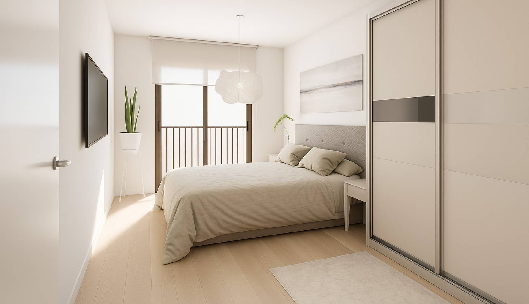 Das Innere der Wohnungen und Penthäuser ist sorgfältig gestaltet, um Komfort und Stil zu bieten. Die Feinsteinzeugböden verleihen einen modernen Touch und sind pflegeleicht. Die Immobilien verfügen über Einbauschränke, die den Stauraum optimieren. Die Vorinstallation der Klimaanlage sorgt dafür, dass das Raumklima immer angenehm ist. Zudem bietet die Video-Gegensprechanlage zusätzliche Sicherheit und Komfort. Mit zwei Schlafzimmern und zwei Bädern sind diese Wohnungen darauf ausgelegt, die Bedürfnisse jeder Familie oder jedes Paares zu erfüllen.