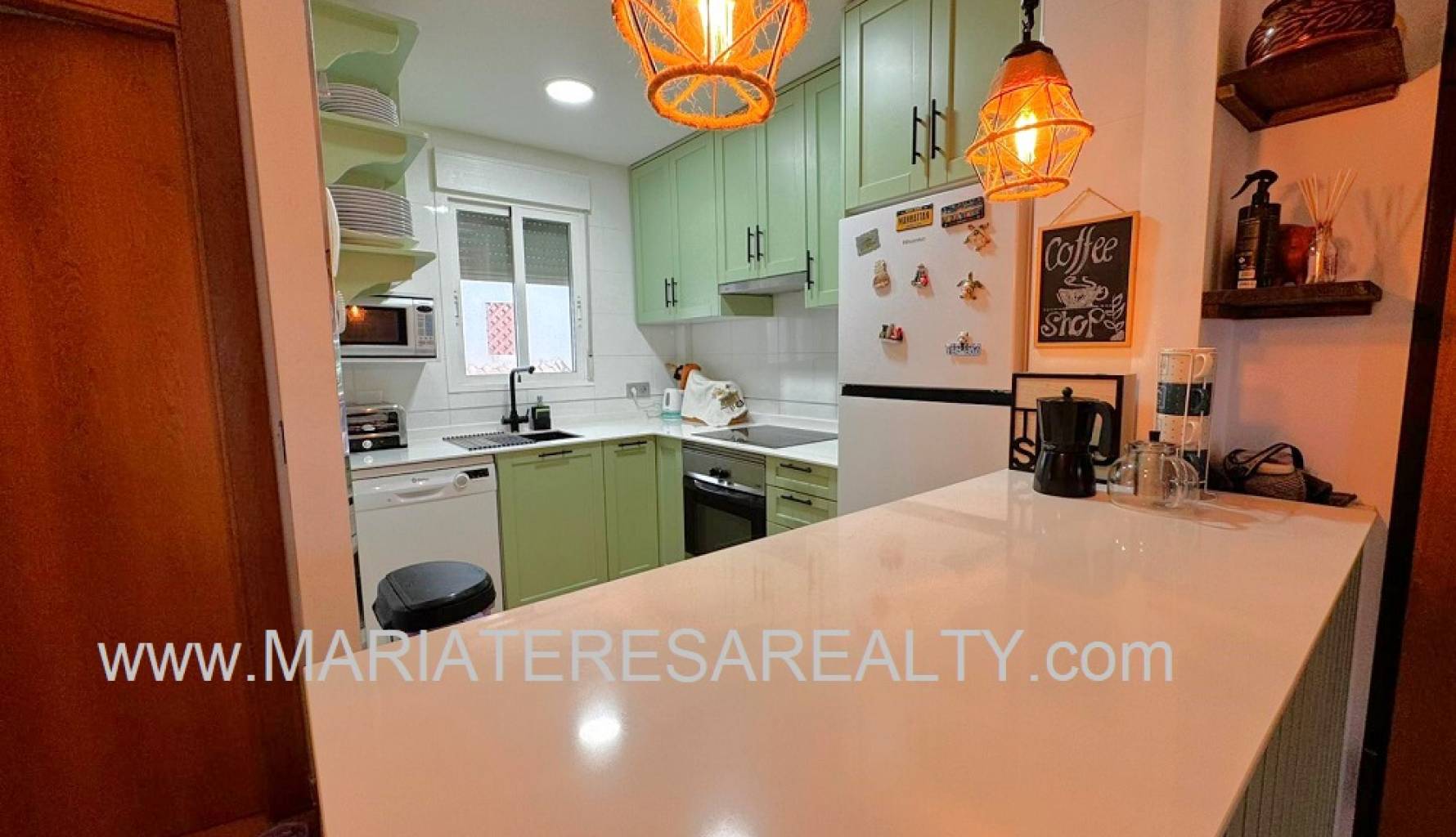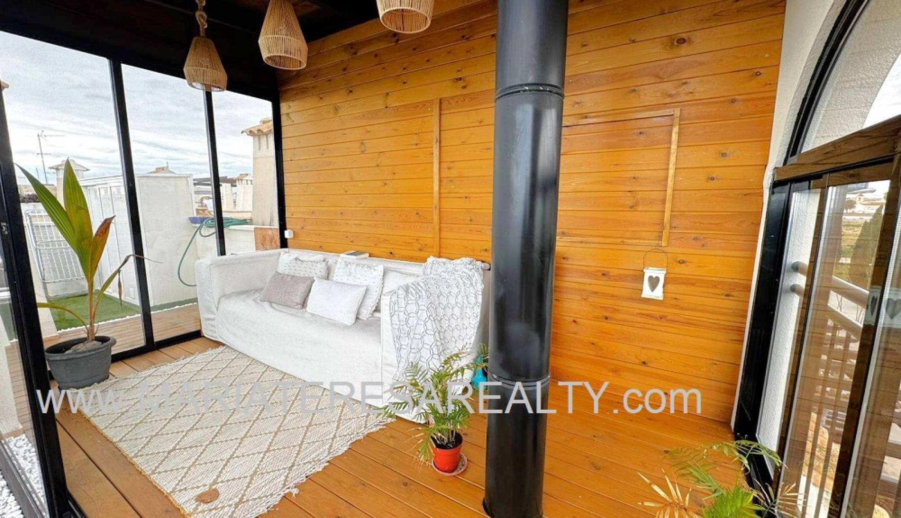 Wunderschönes und charmantes Eck-Penthouse-Apartment im ersten Stock in La Puebla, Cartagena, Murcia. Dieses Apartment im ersten Stock (ohne Aufzug) bietet eine Wohnfläche von 65 m², eine Terrasse mit Blick auf einen Park und die Berge sowie Zugang zum Solarium. Beim Betreten des Apartments gelangen Sie in ein geräumiges Wohnzimmer mit Kamin und schallisolierten Wänden. Weiterhin gibt es eine renovierte offene Küche mit einer voll ausgestatteten Frühstücksbar und Schubladen, ein großes Schlafzimmer mit maßgefertigtem Kleiderschrank, einem Einzelbett und einem Schreibtisch, ein Badezimmer mit Dusche sowie ein geräumiges und helles Hauptschlafzimmer mit maßgefertigtem Kleiderschrank und eigenem Badezimmer mit Badewanne. Vom Wohnzimmer aus erreichen Sie die nach Norden ausgerichtete Terrasse, die über eine Treppe zu einem großen und sonnigen Solarium mit mehreren Aluminiumschränken, Kunststoffboden in Holzoptik und einem verglasten Raum mit einem Wärmerohr vom Kamin im Wohnzimmer führt – ideal zum Entspannen und Genießen des Meerblicks. Diese Immobilie verfügt über eine Umkehrosmoseanlage und ein Leckageerkennungssystem, das die Wasserzufuhr automatisch unterbricht, um unnötige Kosten zu vermeiden. Alle Räume, einschließlich Wohnküche und Schlafzimmer, sind klimatisiert. Die Badezimmer sind mit Warmwasserbereitern ausgestattet, eines davon zusätzlich mit einem Handtuchwärmer. Ein Parkplatz und ein Abstellraum sind im Preis inbegriffen.