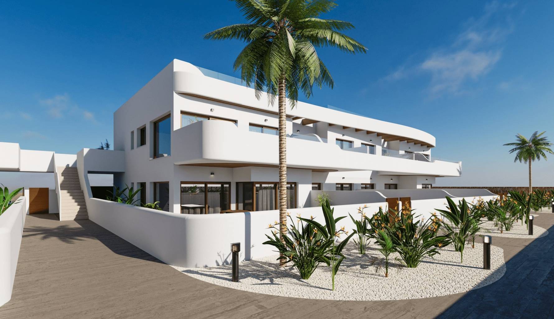 Im charmanten Ort Los Alcázares gelegen, bietet diese Wohnanlage eine Vielzahl von Typologien, die unterschiedlichen Bedürfnissen und Lebensstilen gerecht werden. Mit insgesamt 10 Einheiten können zukünftige Eigentümer zwischen Apartments, Erdgeschoss, Hoch-Bungalow, Niedrig-Bungalow und Penthäusern wählen. Jede Immobilie wurde so gestaltet, dass sie Komfort und Funktionalität maximiert und Meerblick bietet, der die Nähe zur Küste, nur 1 km entfernt, ergänzt. Darüber hinaus sorgt die Nähe zu einem Golfplatz, ebenfalls 1 km entfernt, und zum Flughafen, 31 km entfernt, für eine hervorragende Konnektivität für diejenigen, die eine Balance zwischen Ruhe und Erreichbarkeit suchen. Die Wohnungen verfügen über eine Aufteilung mit 2 oder 3 Schlafzimmern und 2 Bädern, was sie ideal für Familien sowie Paare oder Einzelpersonen macht, die zusätzlichen Raum suchen. Die Vorinstallation der Klimaanlage und die enthaltenen Geräte garantieren modernen Komfort, während die Böden aus Feinsteinzeug und die Einbauschränke einen Hauch von Eleganz und Funktionalität hinzufügen.