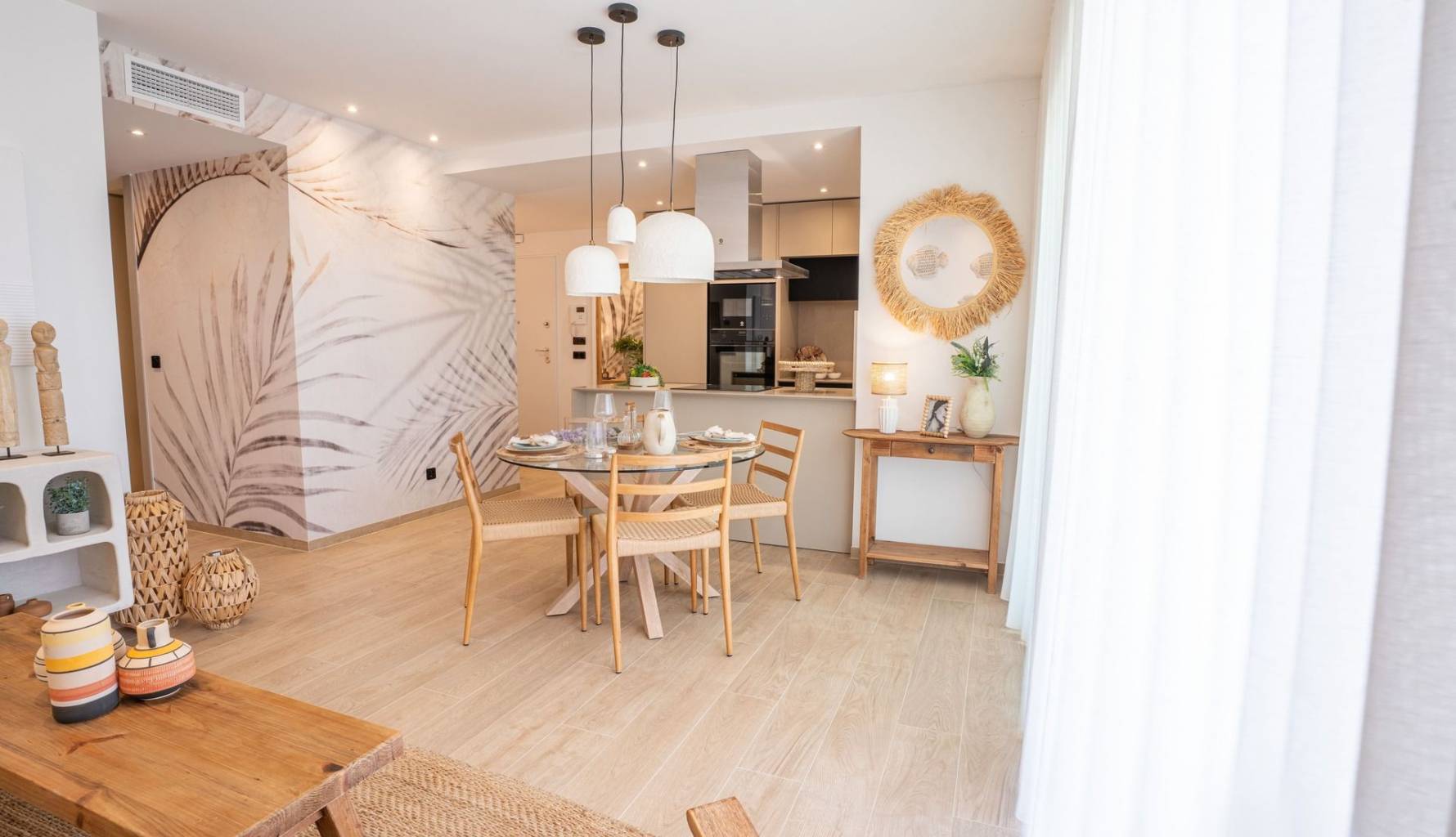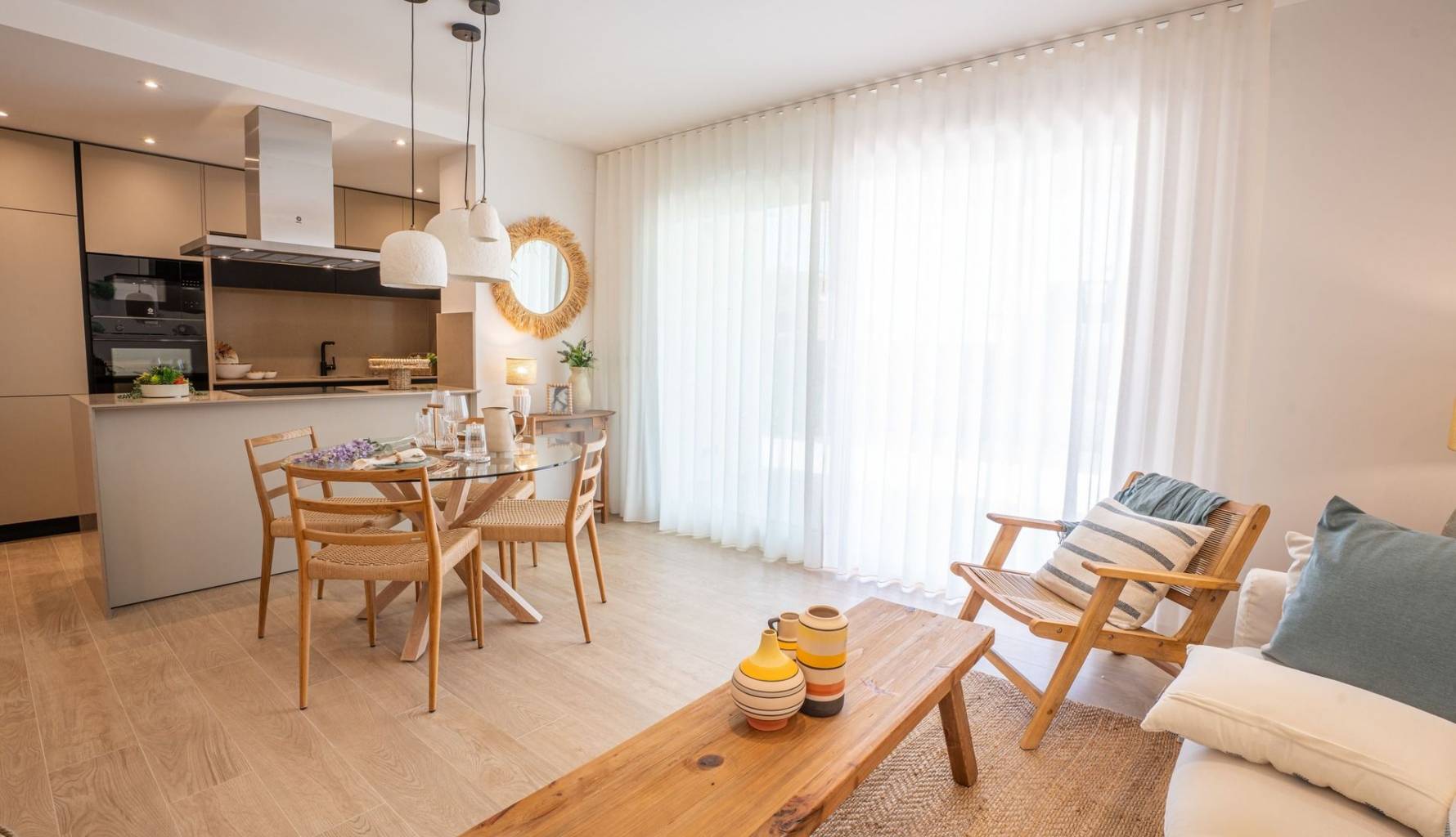 Im Inneren bieten die Bungalows ein zeitgenössisches Design mit Einbauschränken, die den Raum optimieren und die Lagerung erleichtern. Die Raumaufteilung ist darauf ausgelegt, maximales Tageslicht zu nutzen und so gemütliche und funktionale Räume zu schaffen. Die Wahl zwischen 2 oder 3 Schlafzimmern ermöglicht es, das Zuhause an die Bedürfnisse jeder Familie anzupassen. Die Bäder, ausgestattet mit modernen Oberflächen, vervollständigen ein Ensemble, das Stil und Komfort vereint.