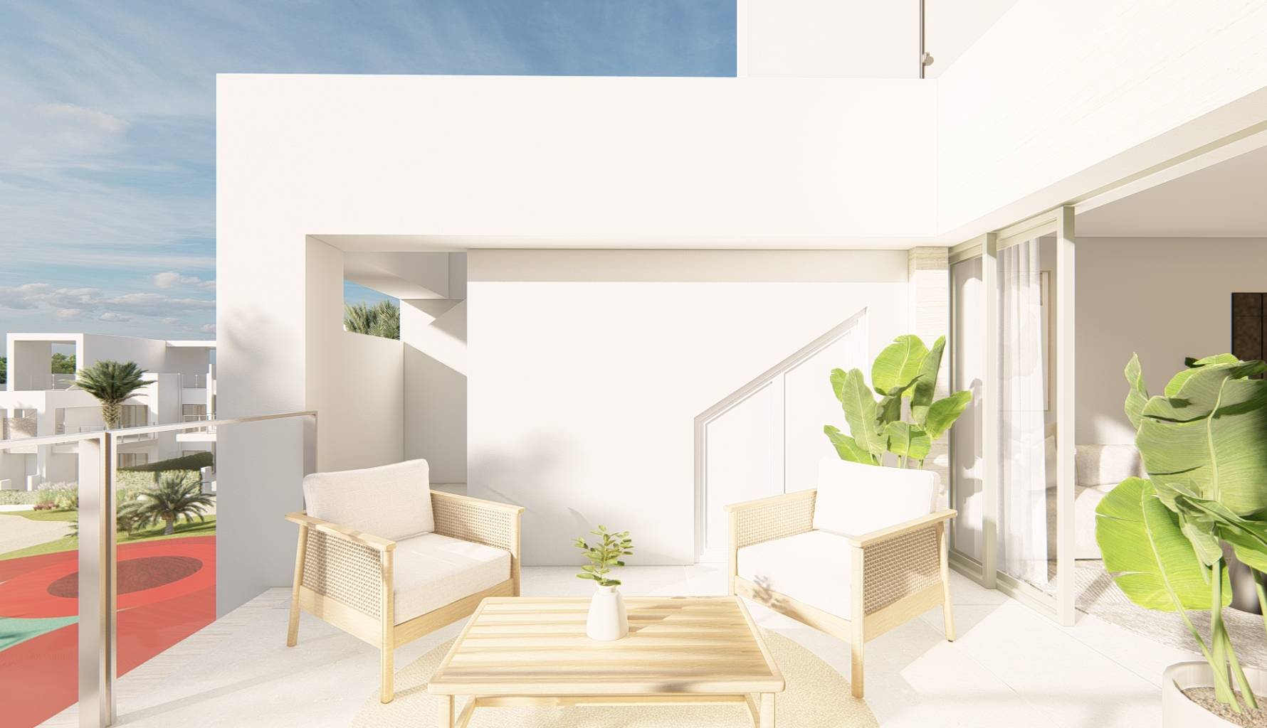 Die Außenbereiche dieser Wohnanlage in Los Alcázares sind so gestaltet, dass sie das mediterrane Klima optimal nutzen. Alle Wohnungen verfügen über private Terrassen, die sich perfekt zum Entspannen im Freien eignen. Die Erdgeschosse bieten private Gärten, die zusätzlichen Raum für Freizeit und Privatsphäre bieten. Die Penthäuser verfügen über Solariums, die einen idealen Ort zum Sonnenbaden in völliger Privatsphäre bieten. Die Nähe zum Meer, nur 300 Meter entfernt, ermöglicht spektakuläre Ausblicke und einen schnellen Zugang zum Strand, was diese Wohnanlage zu einer perfekten Wahl für diejenigen macht, die das Leben im Freien schätzen.