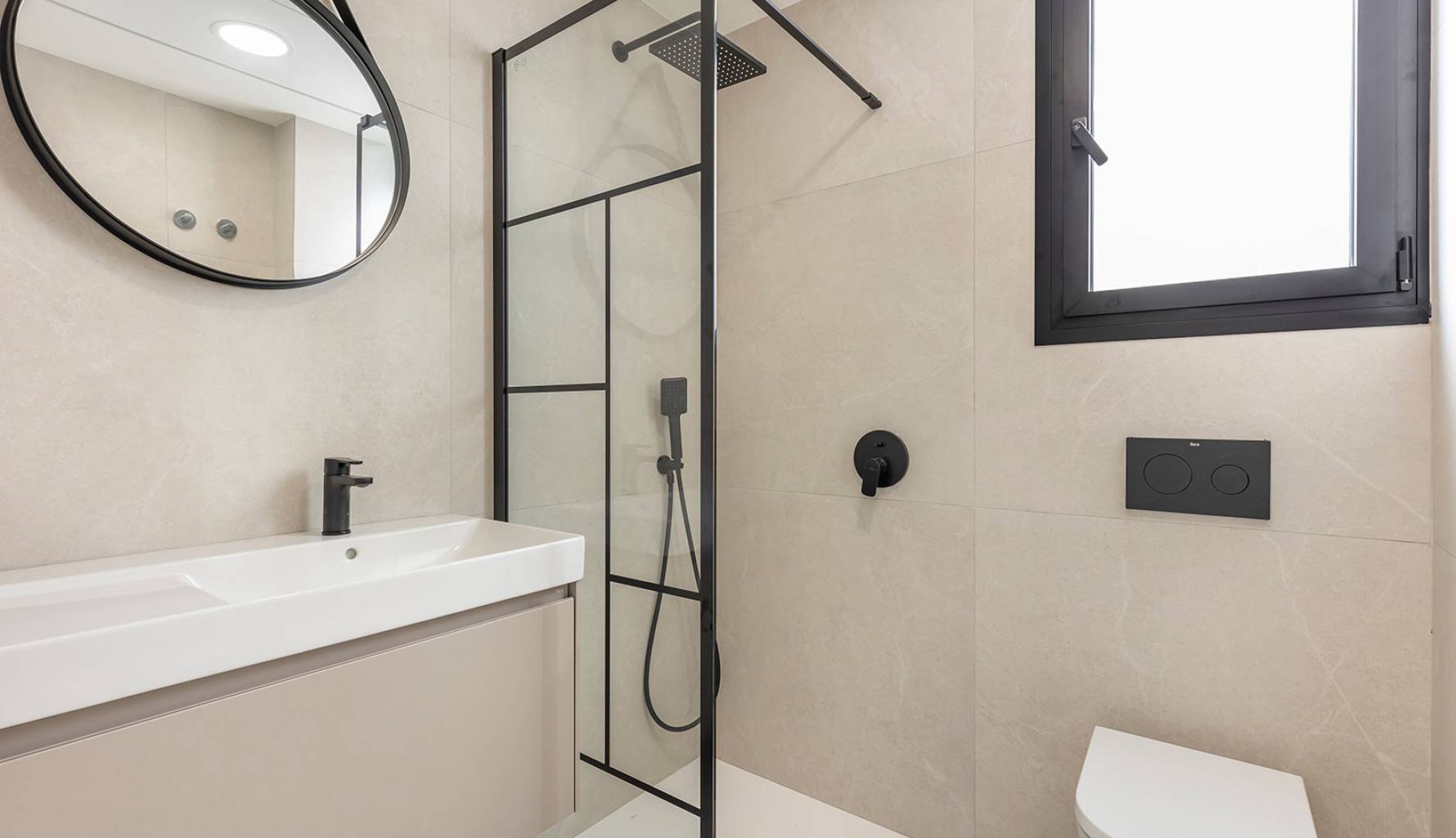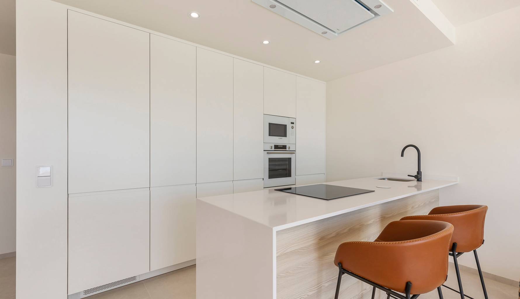 Das Innere dieser Häuser ist mit Liebe zum Detail und Funktionalität gestaltet. Die Chalets bieten Optionen mit 2 oder 3 Schlafzimmern und 2 oder 3 Bädern, um unterschiedlichen familiären Bedürfnissen gerecht zu werden. Die Feinsteinzeugböden verleihen einen modernen Touch und sind pflegeleicht. Die Küche ist mit Geräten ausgestattet, die den Alltag von Anfang an erleichtern. Die Klimaanlage sorgt das ganze Jahr über für ein angenehmes Ambiente. Einbauschränke optimieren den Stauraum und erhalten Ordnung und Ästhetik.