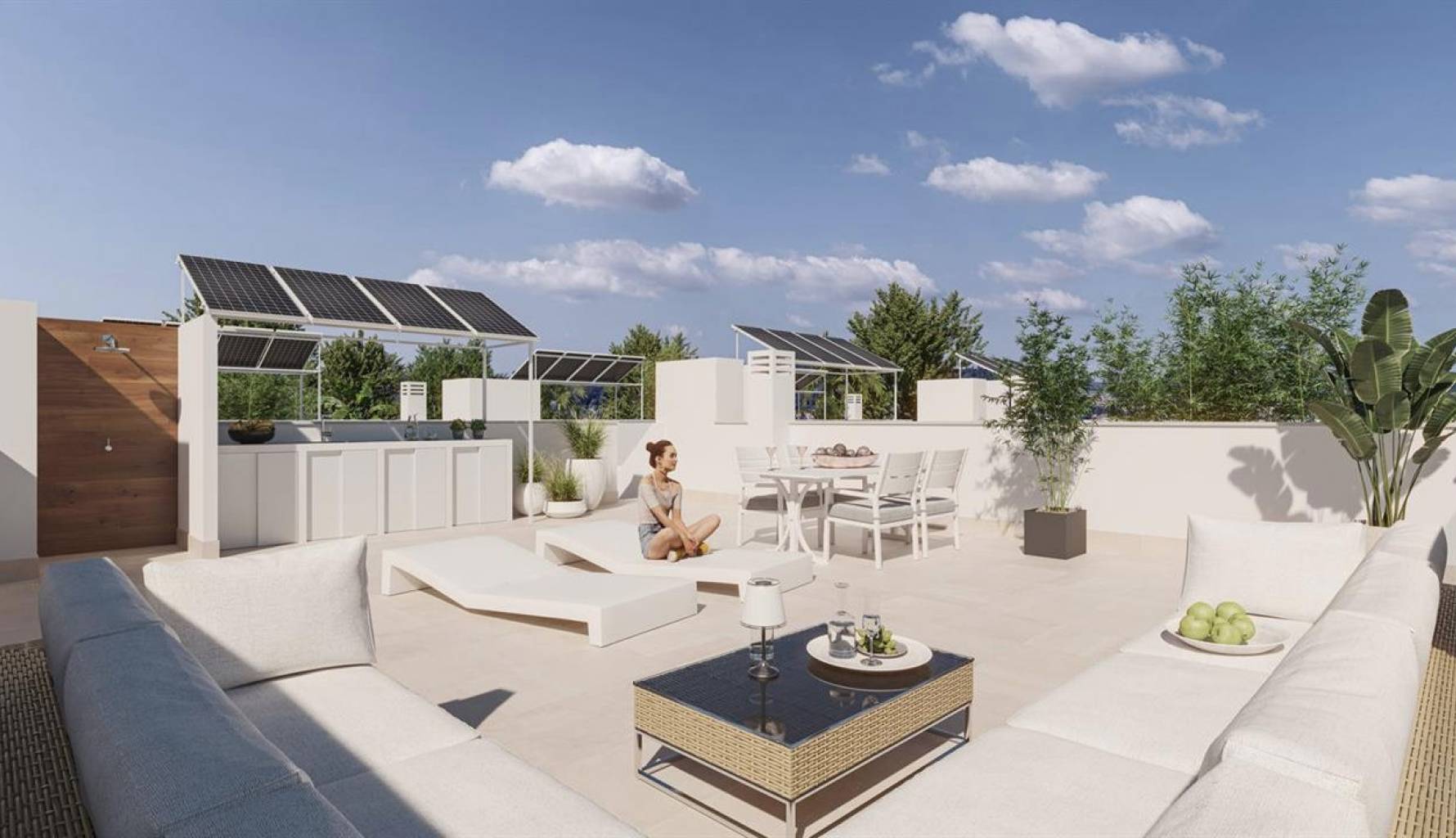 Im Inneren ist das Reihenhaus so gestaltet, dass es maximalen Komfort bietet. Mit zwei Schlafzimmern ist es ideal für kleine Familien oder Paare, die zusätzlichen Raum wünschen. Die zwei Badezimmer sorgen für Komfort und Privatsphäre für alle Bewohner. Die Immobilie ist mit Haushaltsgeräten ausgestattet, was den Alltag von Anfang an erleichtert. Einbauschränke bieten effizienten Stauraum und halten den Raum ordentlich und frei von Unordnung. Zudem ist eine Vorinstallation für Klimaanlagen vorhanden, die das ganze Jahr über ein angenehmes Ambiente gewährleistet.