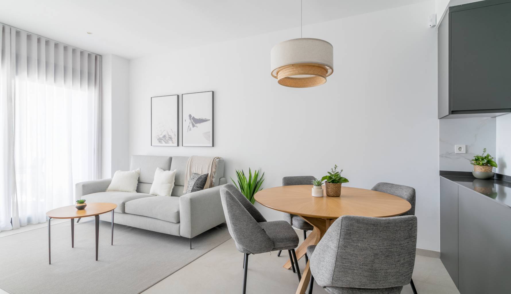 Die Wohnungen sind mit modernen Merkmalen ausgestattet, die ein hohes Maß an Komfort gewährleisten. Porzellanböden verleihen Eleganz und Langlebigkeit, während elektrische Rollläden und integrierte Geräte den Alltag erleichtern. Einbauschränke optimieren den Stauraum und sorgen für Ordnung und Funktionalität. Die Grundrissoptionen umfassen Wohnungen mit 2 und 3 Schlafzimmern sowie 2 oder 3 Bädern, die sich an unterschiedliche Familiengrößen und persönliche Vorlieben anpassen.