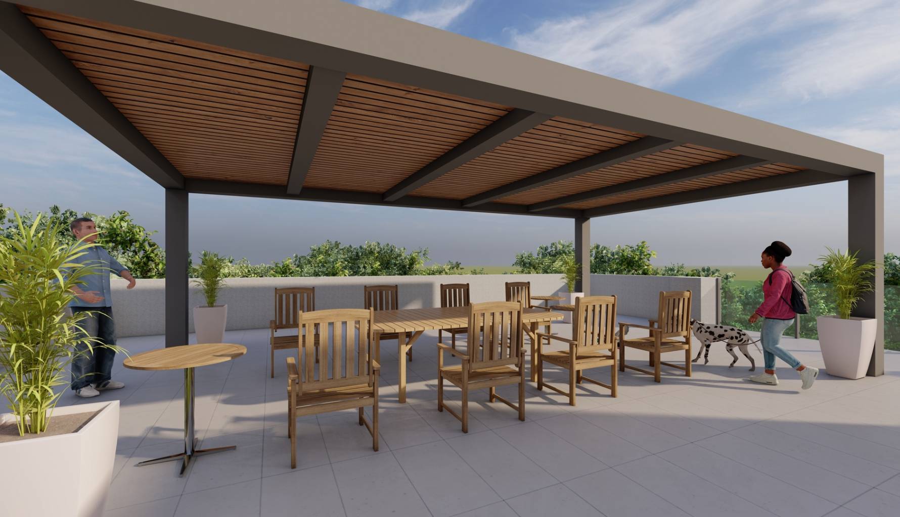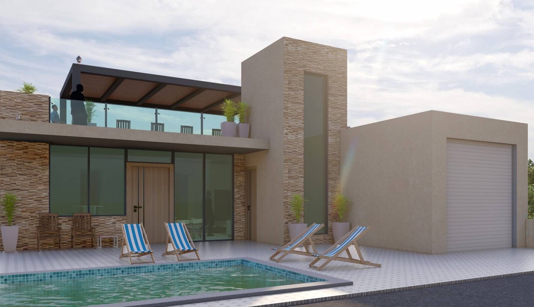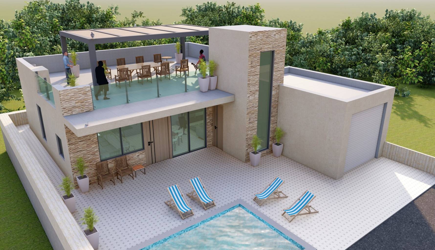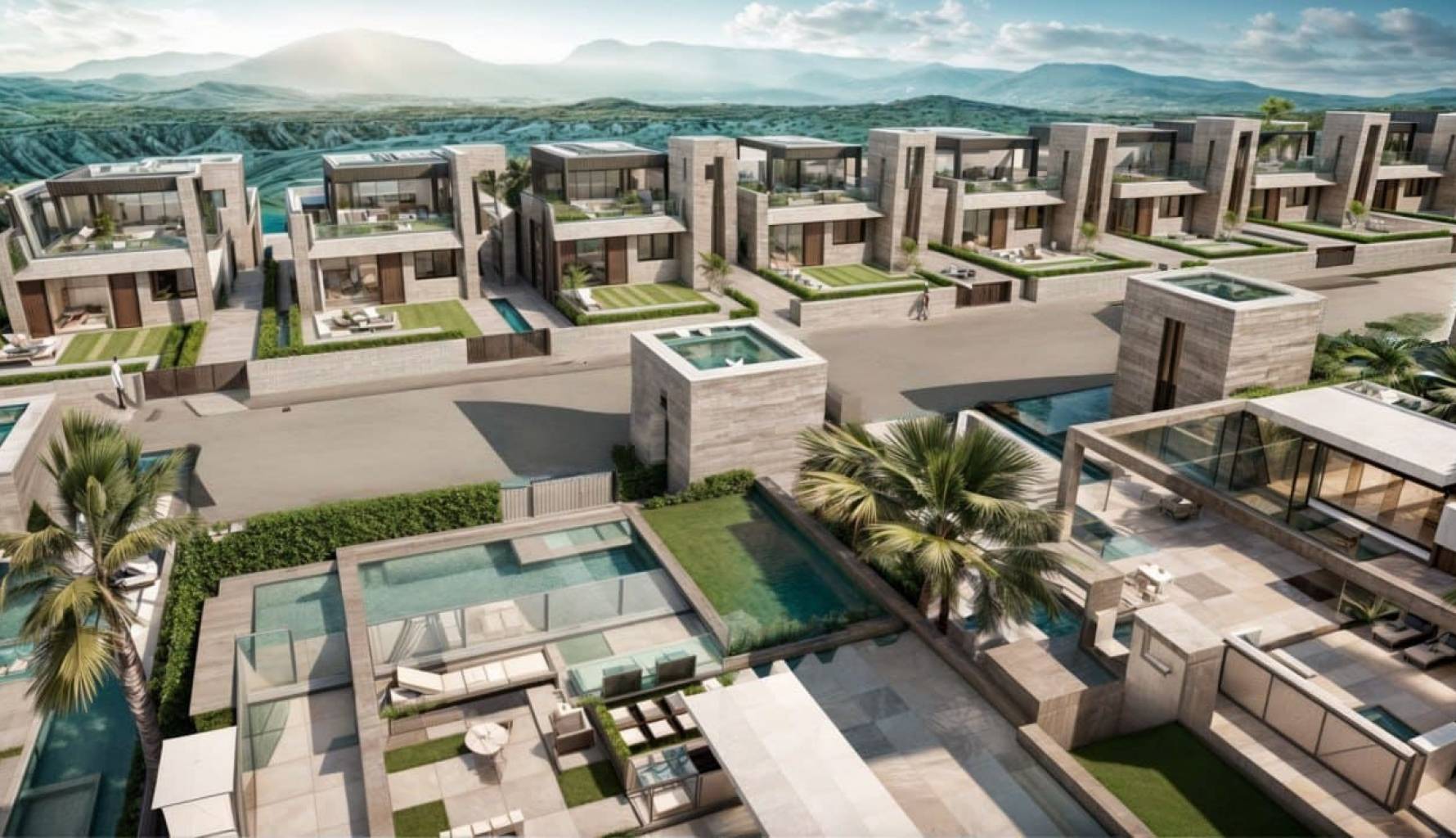 Die Außenbereiche dieser Häuser sind so gestaltet, dass sie das mediterrane Klima optimal nutzen. Jede Immobilie verfügt über einen privaten Garten, ideal für diejenigen, die gerne gärtnern oder einfach nur einen persönlichen grünen Raum wünschen. Die Terrassen bieten einen perfekten Ort zum Entspannen im Freien, während die Möglichkeit, einen privaten Pool hinzuzufügen, einen Hauch von Luxus und Exklusivität verleiht. Darüber hinaus bieten Pergolen Schatten und Komfort, sodass man auch an sonnigen Tagen die Außenbereiche genießen kann. Die Möglichkeit eines Solariums in einigen Typologien bietet zusätzlichen Raum für Freizeit und Erholung und nutzt die Aussicht und die natürliche Umgebung optimal aus.