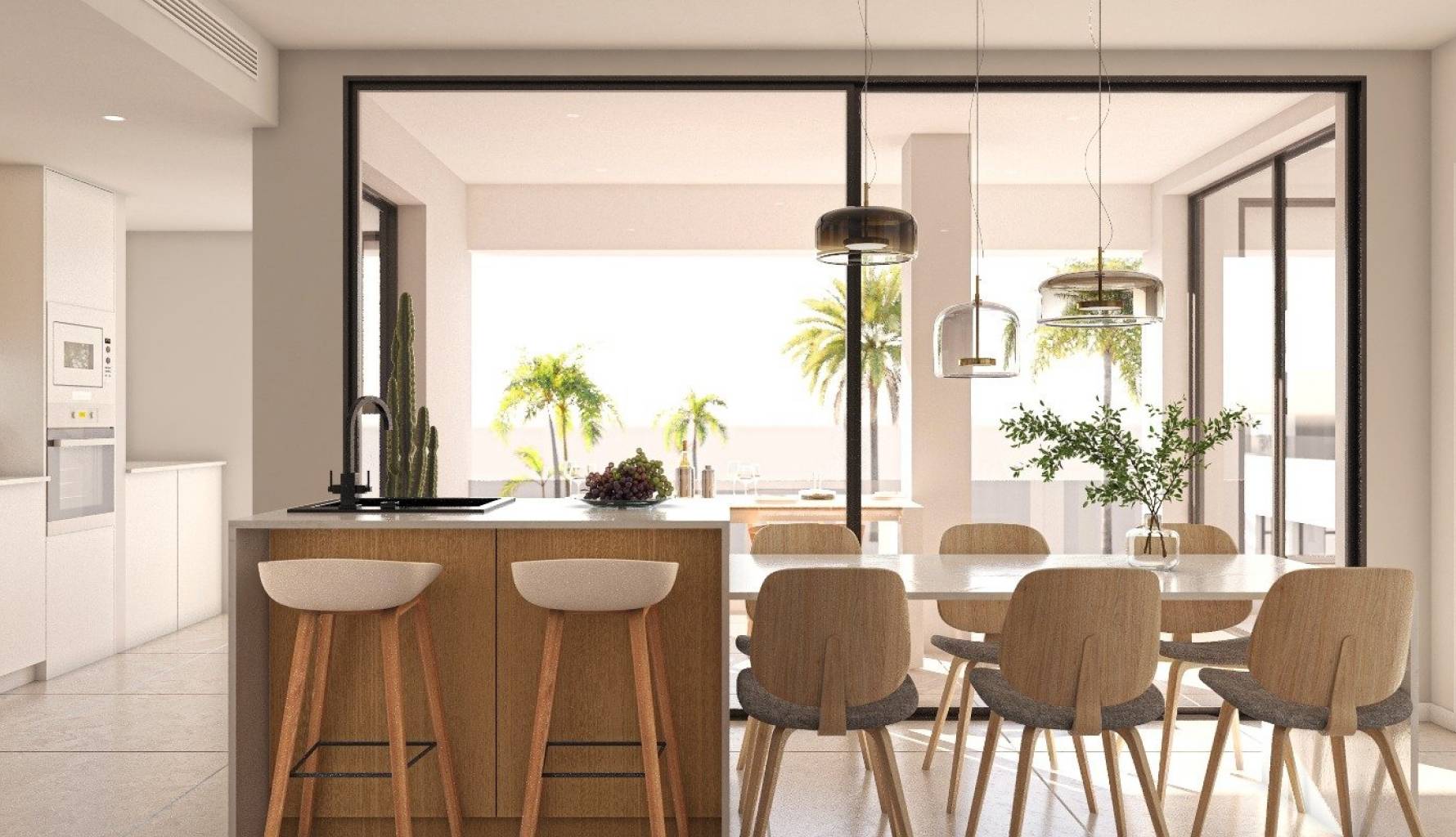 Das Innere dieser Wohnungen ist so gestaltet, dass es Komfort und Funktionalität bietet. Die Grundrissoptionen umfassen Wohnungen mit 2 und 3 Schlafzimmern, alle mit 2 Bädern, was Flexibilität für unterschiedliche familiäre Bedürfnisse bietet. Die Einbeziehung moderner Geräte erleichtert den Alltag, während Einbauschränke den Stauraum optimieren. Der Keramikboden ist nicht nur ästhetisch ansprechend, sondern auch pflegeleicht, was ihn zu einer praktischen Wahl für den Alltag macht. Jedes Detail des Innenraums ist darauf ausgelegt, eine gemütliche und moderne Atmosphäre zu bieten, ideal, um das Leben in San Pedro del Pinatar zu genießen.