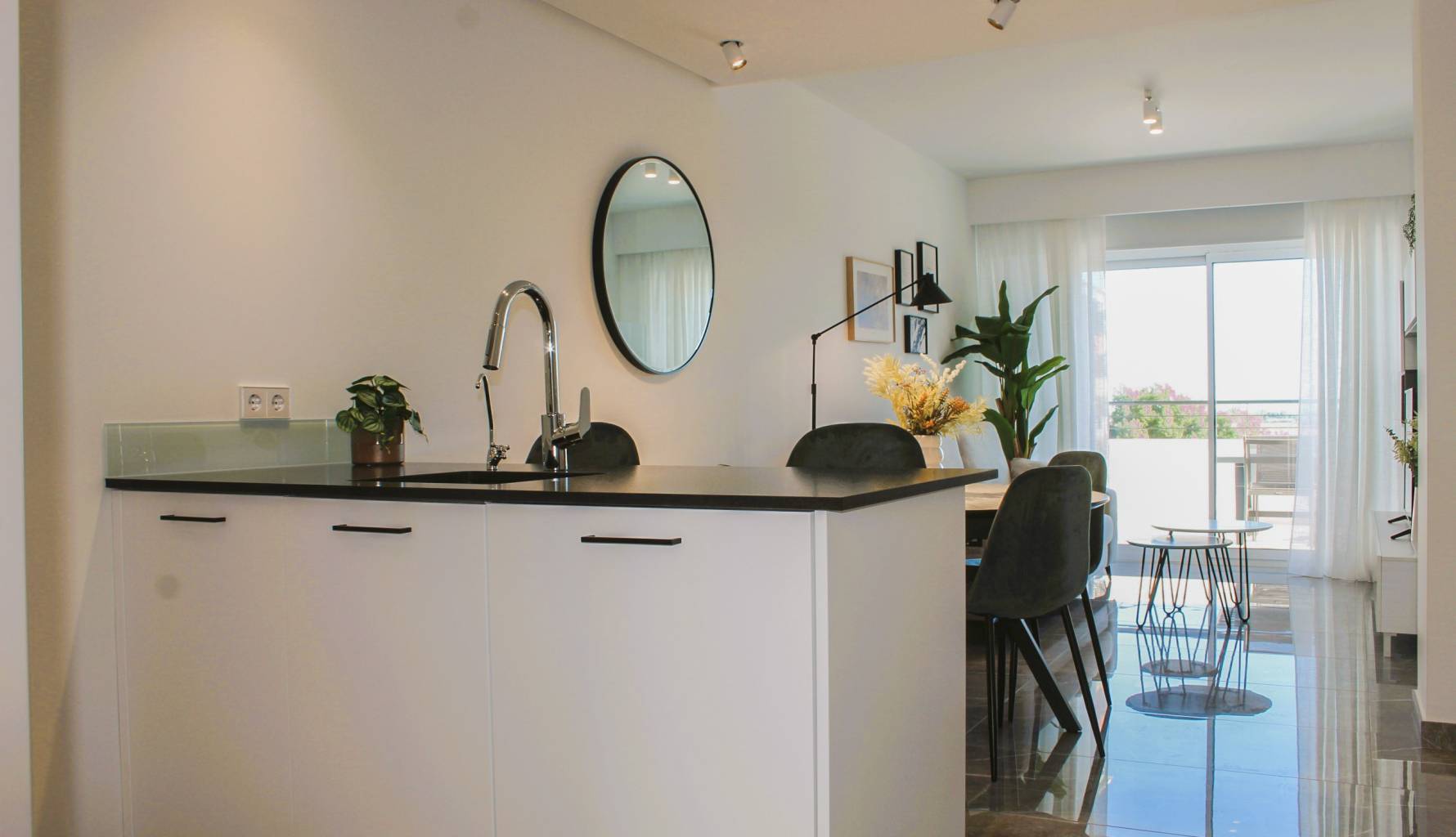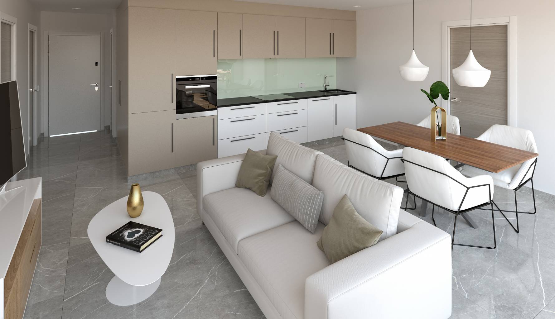 El interior de cada vivienda está cuidadosamente diseñado para ofrecer el máximo confort. Las propiedades vienen amuebladas, facilitando la mudanza y el inicio de una nueva vida en este idílico entorno. Los suelos combinan cerámica, gres y tarima flotante, creando un ambiente moderno y acogedor. Las persianas eléctricas y el videoportero añaden un toque de modernidad y seguridad. La calefacción por suelo radiante y la preinstalación de aire acondicionado aseguran un ambiente agradable durante todo el año. Los electrodomésticos están incluidos, y los armarios empotrados ofrecen un almacenamiento eficiente y elegante.