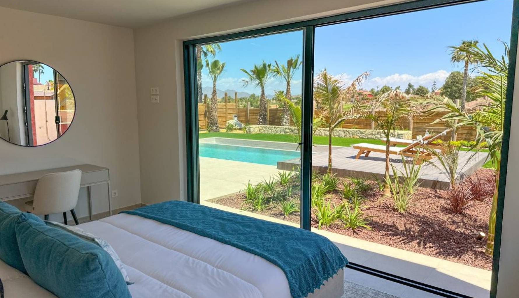 El diseño exterior de las villas en Cuevas del Almanzora es simplemente impresionante. Cada propiedad cuenta con una terraza privada, perfecta para disfrutar de las vistas y el clima mediterráneo. Los jardines privados ofrecen un espacio verde personal donde relajarse o disfrutar de actividades al aire libre. Además, cada villa incluye una piscina privada, proporcionando un oasis refrescante durante los cálidos días de verano. La presencia de una pérgola añade un toque de elegancia y funcionalidad, ofreciendo sombra y un espacio adicional para el entretenimiento al aire libre.
