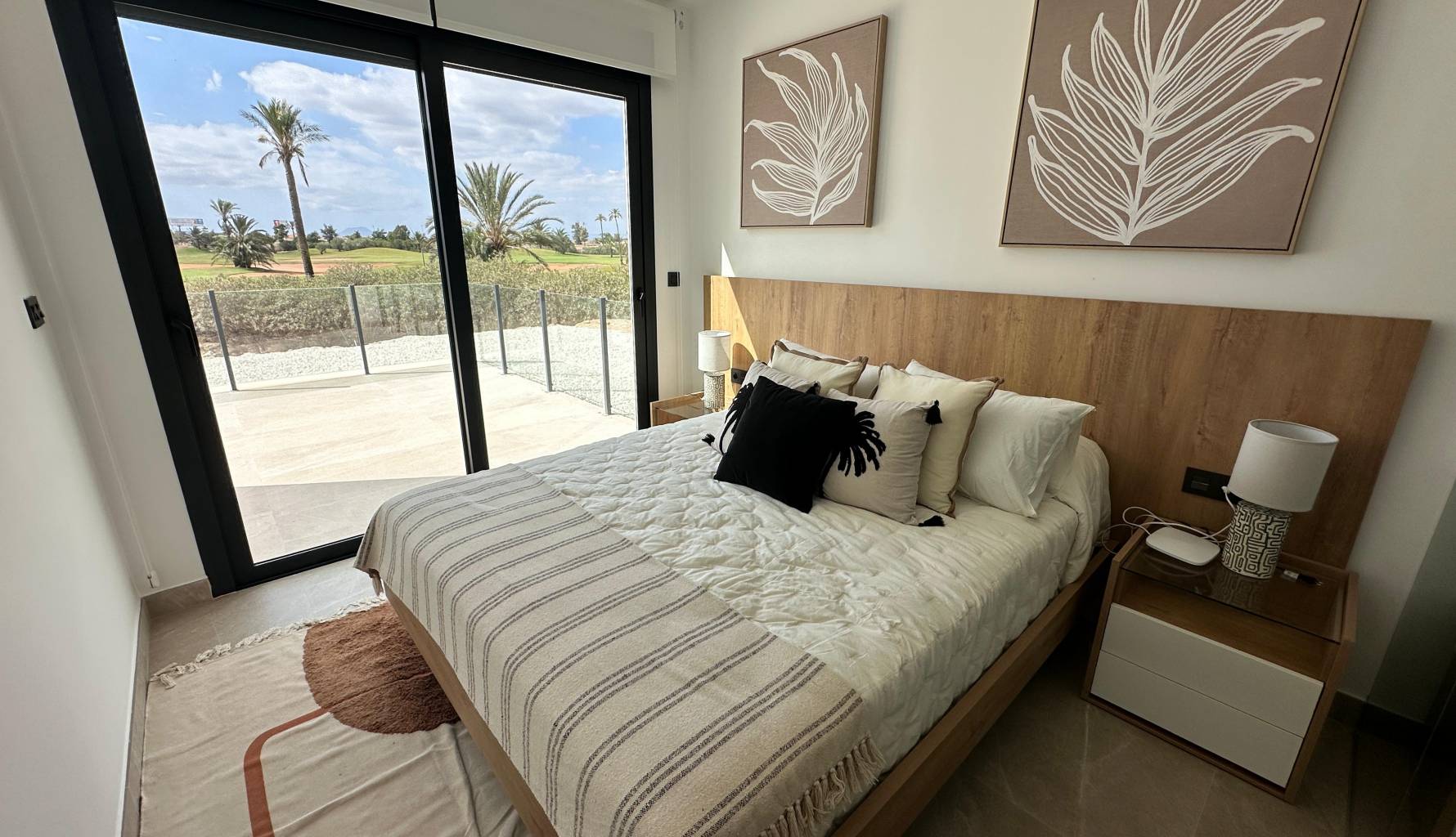 El interior de las viviendas está diseñado con un enfoque en la funcionalidad y el estilo moderno. Los suelos de gres porcelánico aportan un toque elegante y son fáciles de mantener. Las persianas eléctricas y los armarios empotrados añaden comodidad y espacio de almacenamiento. Además, todas las propiedades cuentan con preinstalación de aire acondicionado, asegurando un ambiente agradable durante todo el año. Las opciones de distribución incluyen viviendas de 2 y 3 dormitorios, todas con 2 baños, lo que ofrece flexibilidad para diferentes necesidades familiares.