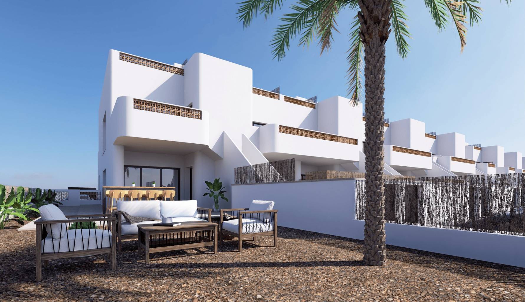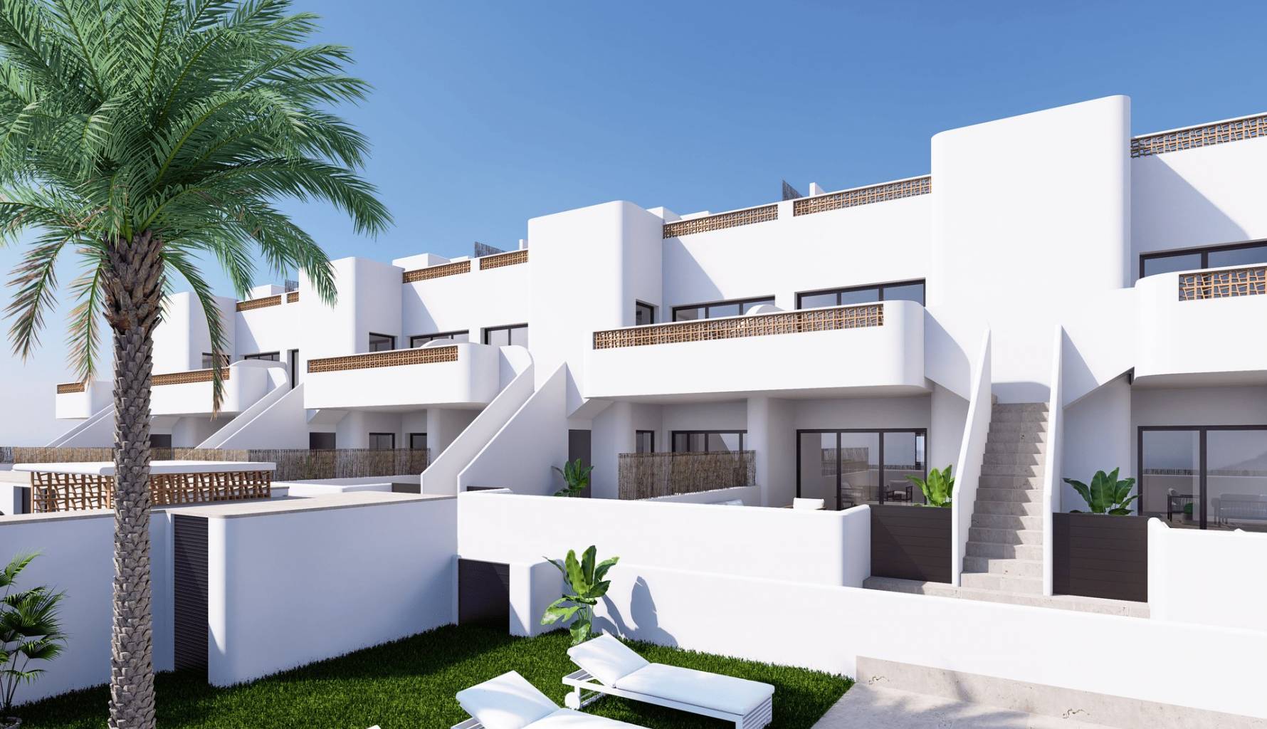Los exteriores de estas viviendas en Dolores están pensados para maximizar el disfrute del clima mediterráneo. Cada bungalow dispone de un jardín privado, perfecto para crear un espacio verde personal o un área de recreo al aire libre. Además, las terrazas ofrecen un lugar ideal para relajarse, disfrutar de las vistas y compartir momentos al aire libre. La inclusión de un solárium proporciona un espacio adicional para tomar el sol o simplemente disfrutar de la tranquilidad del entorno. La ubicación estratégica de estas viviendas permite disfrutar de un ambiente sereno y acogedor, ideal para quienes valoran la vida al aire libre.