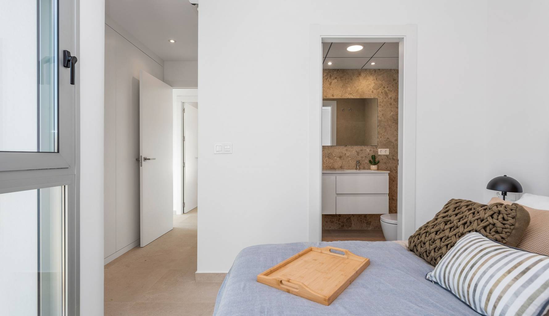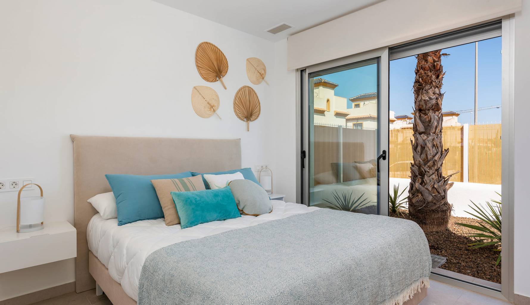 El interior de estos bungalows está diseñado con atención al detalle y funcionalidad. Los suelos de gres porcelánico aportan un toque de elegancia y son fáciles de mantener, ideales para el día a día. Las persianas eléctricas añaden comodidad y modernidad, permitiendo ajustar la luz natural con facilidad. La cocina está equipada con electrodomésticos, facilitando la vida diaria desde el primer día. Los armarios empotrados en los dormitorios ofrecen un espacio de almacenamiento práctico y eficiente, manteniendo el orden y la organización. Cada detalle está pensado para ofrecer un hogar confortable y moderno.