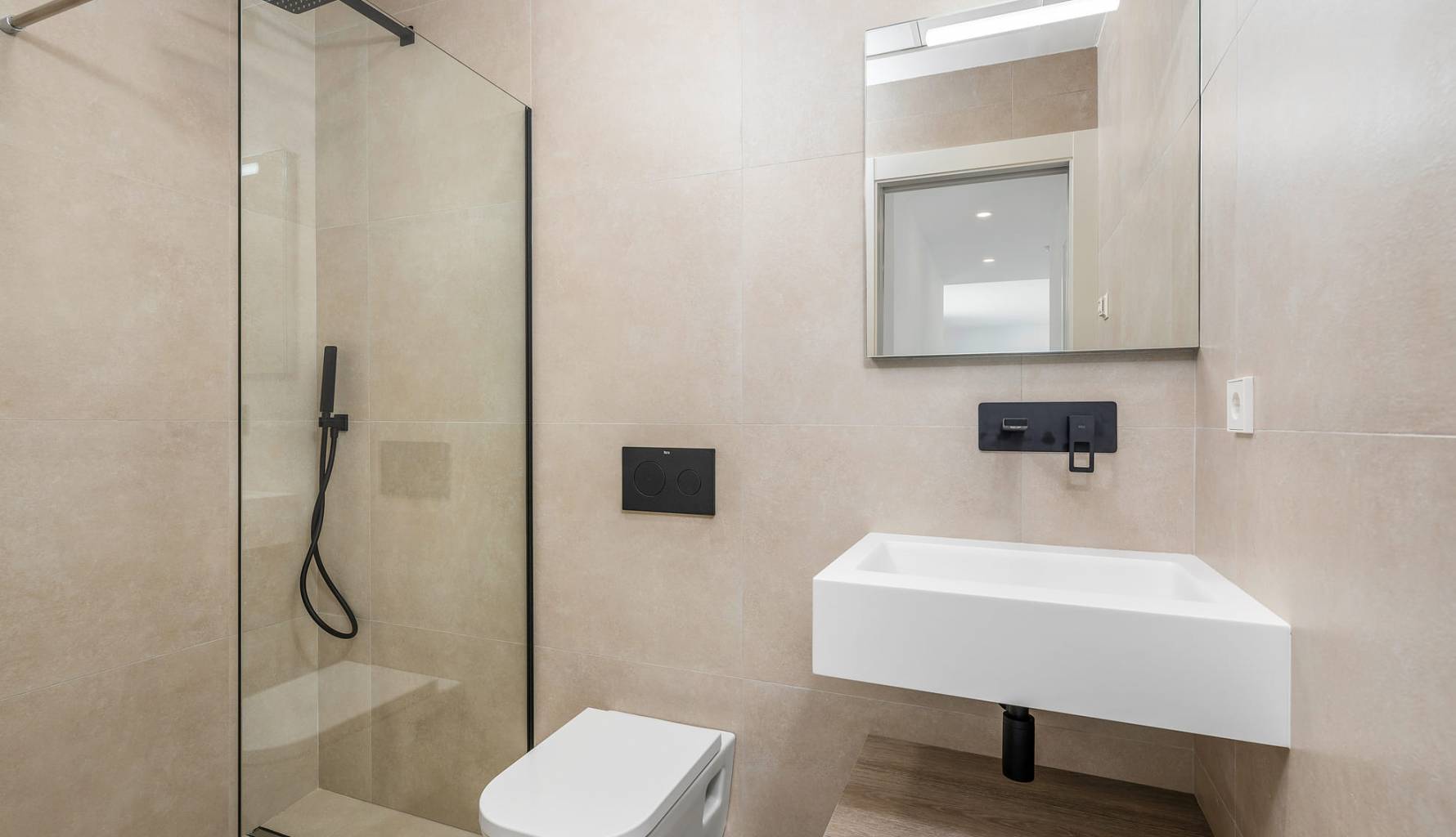 El interior de las viviendas está cuidadosamente diseñado para ofrecer el máximo confort. Las propiedades están completamente amuebladas, lo que facilita la mudanza y permite disfrutar del hogar desde el primer día. El suelo de gres porcelánico aporta un toque de elegancia y durabilidad a los espacios. Las viviendas disponen de aire acondicionado, garantizando un ambiente agradable durante todo el año. Los armarios empotrados ofrecen un espacio de almacenamiento eficiente, mientras que la preinstalación de aire acondicionado permite futuras mejoras en el sistema de climatización. La distribución incluye tres dormitorios y la opción de dos o tres baños, según la tipología disponible, lo que asegura comodidad para toda la familia. Además, cada vivienda cuenta con un garaje, proporcionando un espacio seguro para el estacionamiento del vehículo.