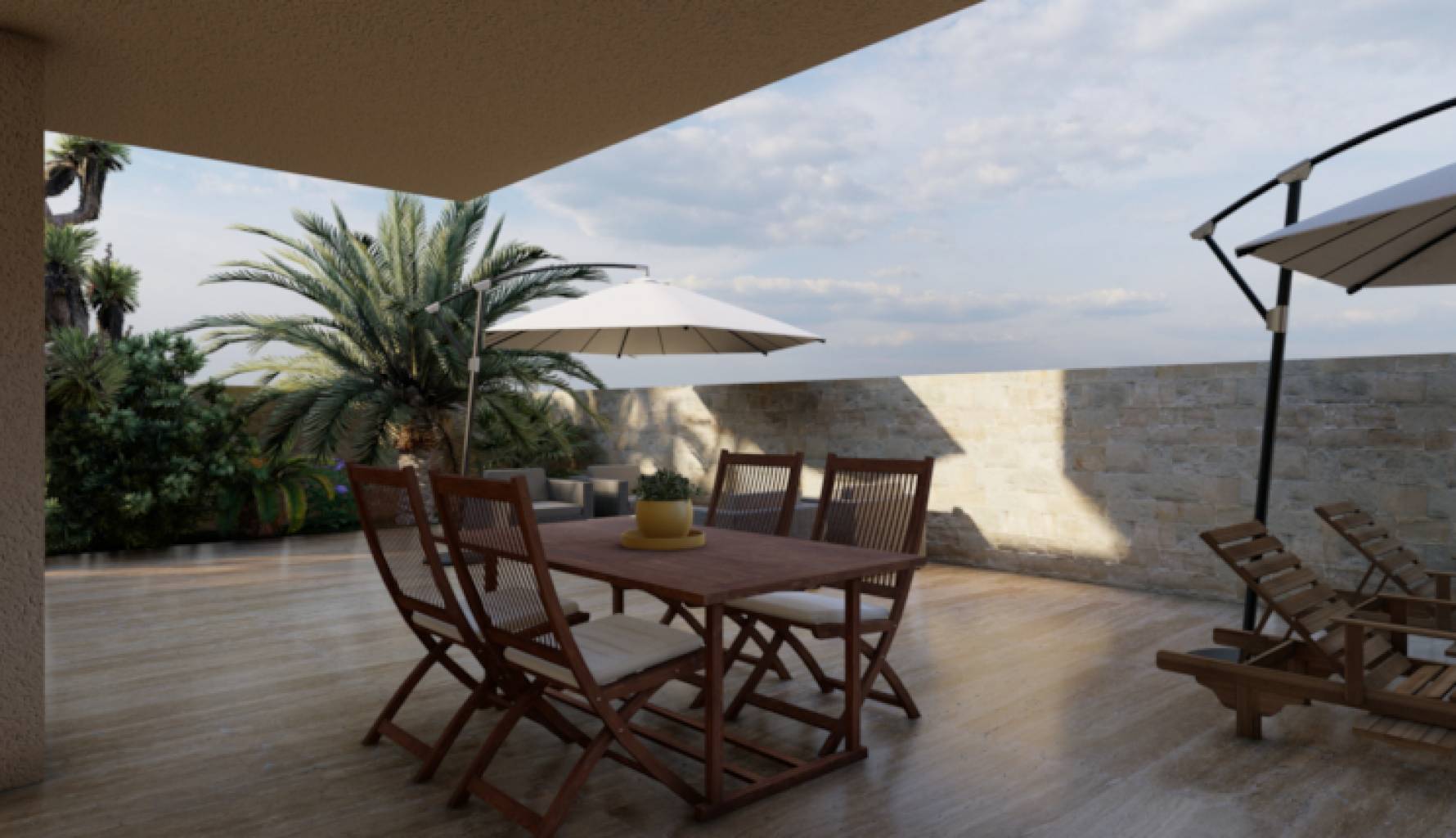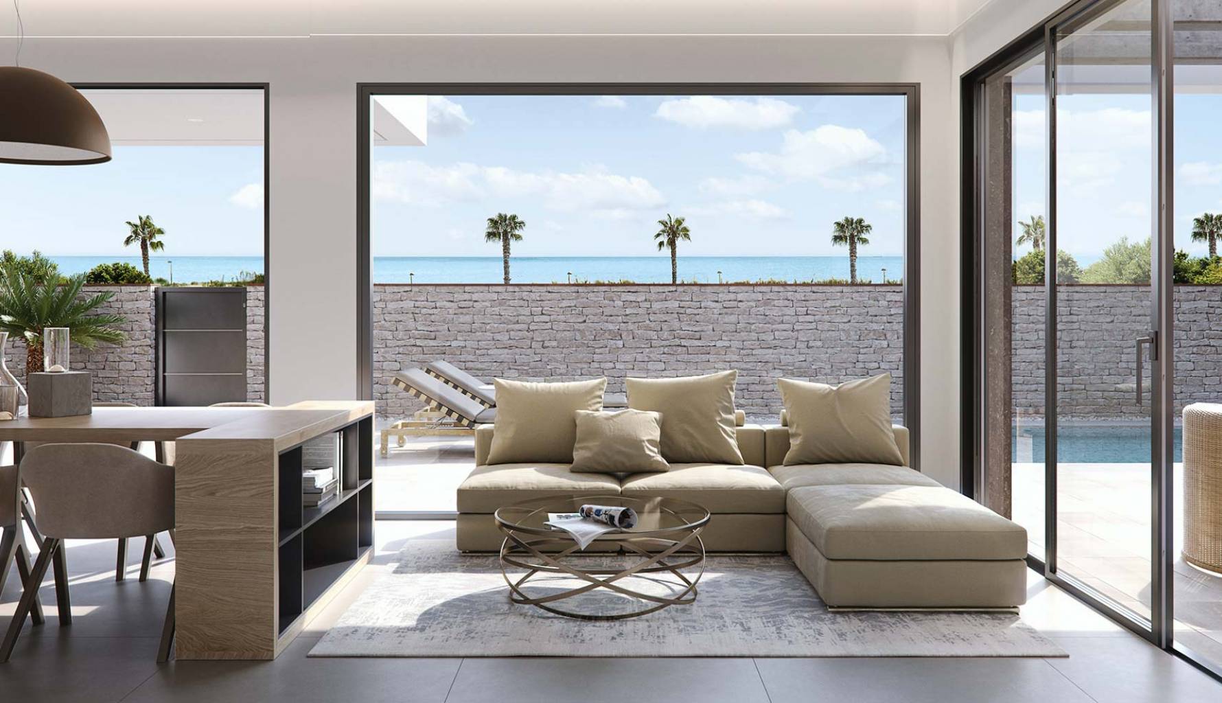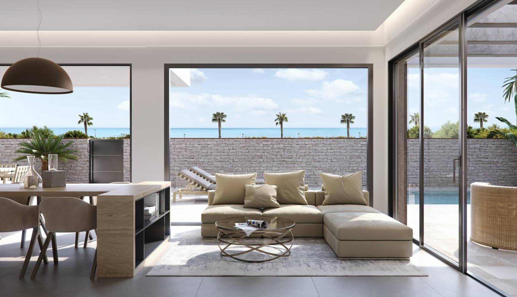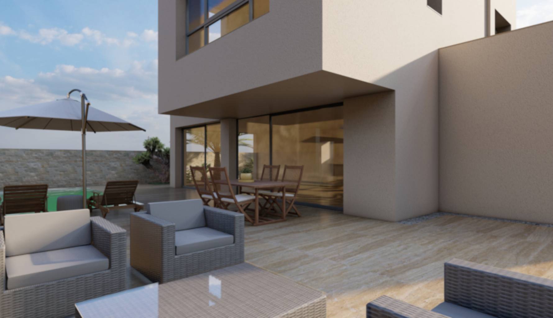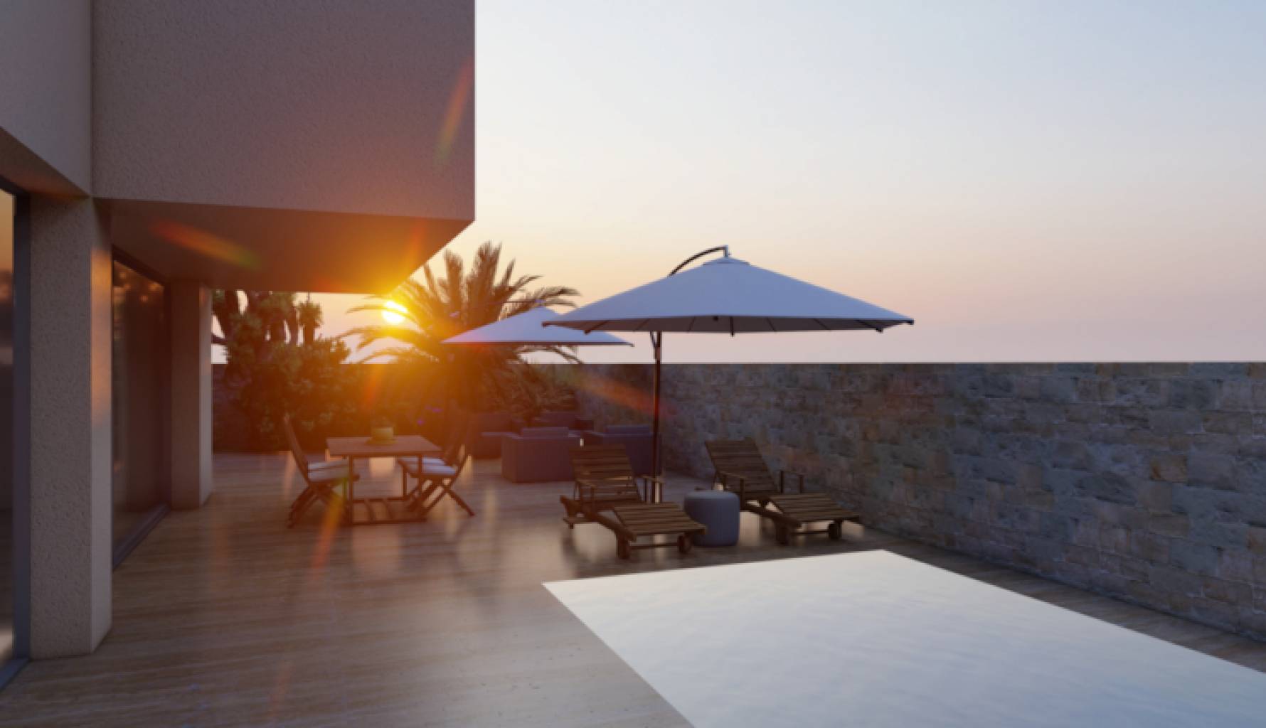 El exterior de la villa está diseñado para ofrecer el máximo disfrute del clima mediterráneo. La propiedad cuenta con una piscina privada, perfecta para refrescarse en los días calurosos o para disfrutar de una tarde relajante junto al agua. Además, dispone de un solárium, ideal para tomar el sol y disfrutar de las vistas panorámicas al mar. La terraza es otro de los espacios destacados, proporcionando un lugar perfecto para cenas al aire libre o para relajarse con un buen libro. El diseño exterior está pensado para ofrecer privacidad y confort, haciendo de esta villa un lugar perfecto para disfrutar de la vida al aire libre.