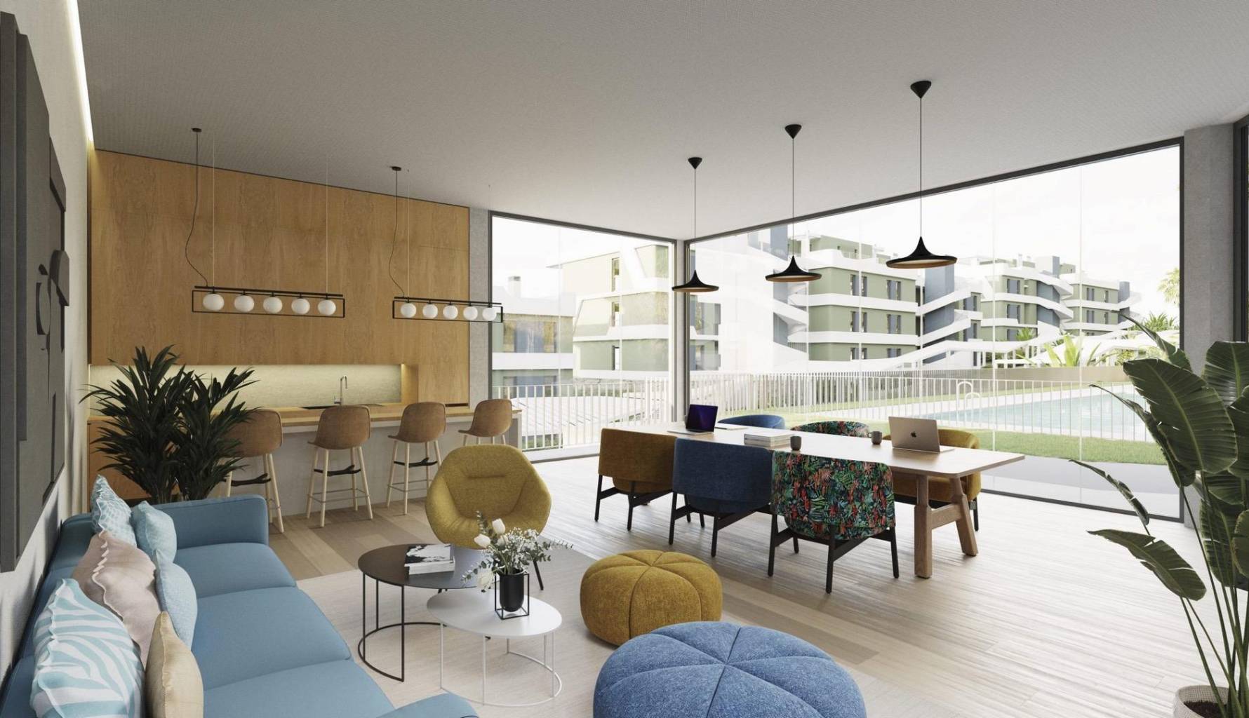 Las viviendas están cuidadosamente distribuidas para ofrecer el máximo confort y funcionalidad. Con opciones de 2 o 3 dormitorios y 2 baños, cada espacio está diseñado para adaptarse a las necesidades de diferentes estilos de vida. Los interiores cuentan con armarios empotrados que optimizan el espacio de almacenamiento, mientras que los electrodomésticos modernos garantizan una experiencia de vida cómoda y eficiente. La inclusión de garajes privados añade un nivel adicional de conveniencia para los residentes, asegurando que cada aspecto de la vida diaria esté cubierto.