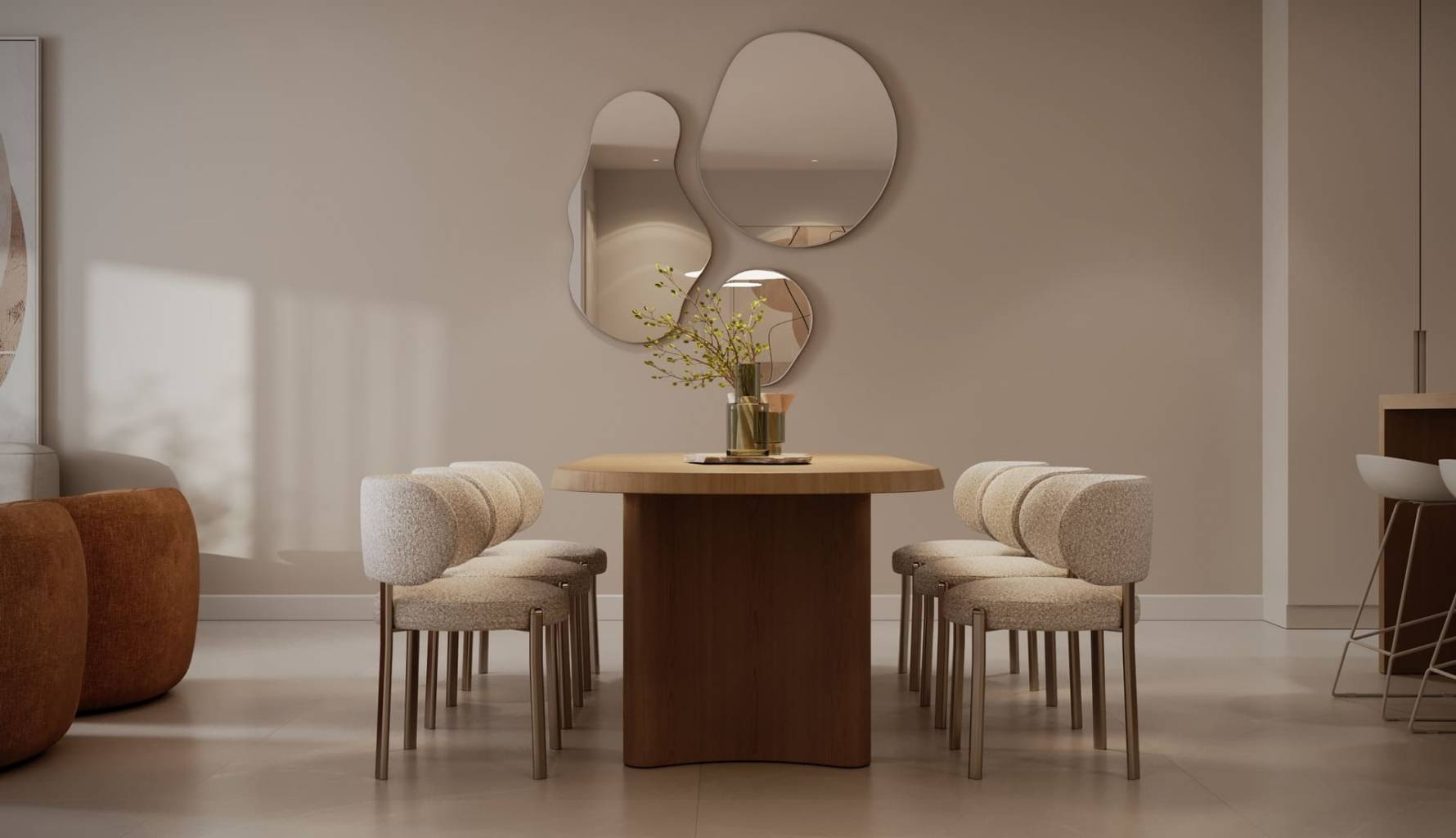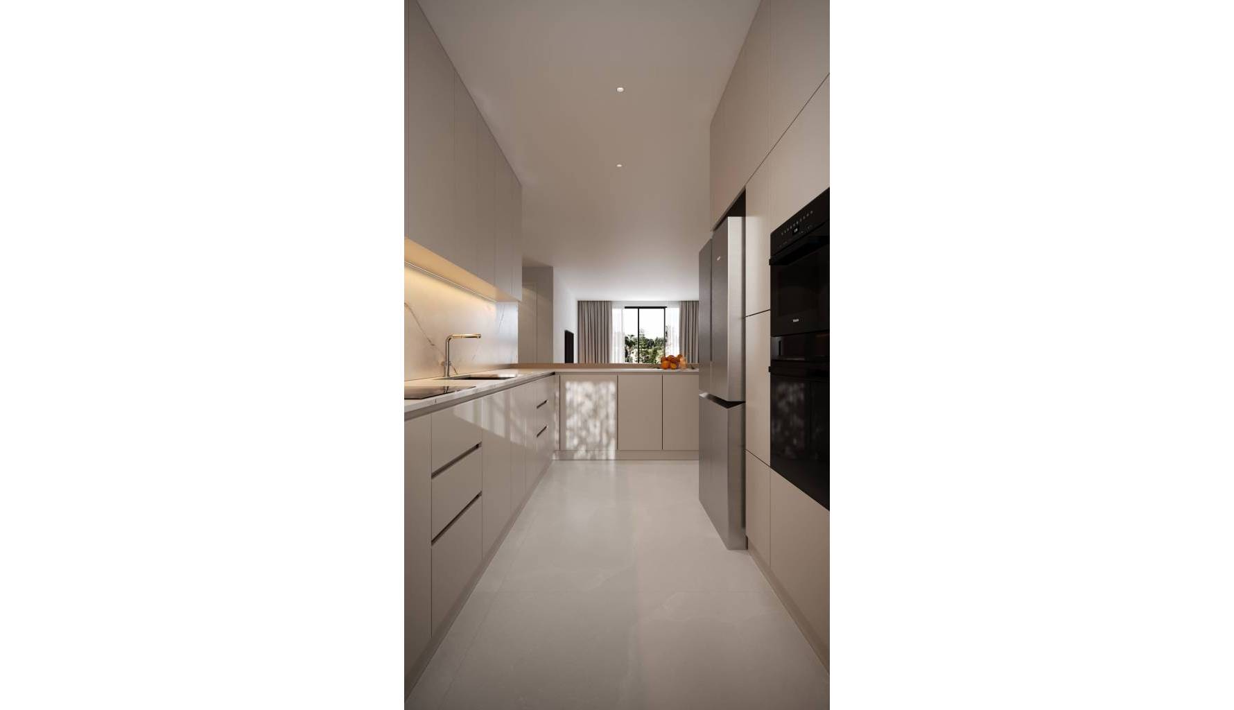El interior de las viviendas está diseñado para ofrecer el máximo confort y funcionalidad. Las opciones de distribución incluyen propiedades de 2, 3 y 4 dormitorios, cada una con 2, 3 o 4 baños, adaptándose a diferentes estilos de vida y necesidades familiares. Las cocinas están equipadas con electrodomésticos modernos, y el sistema de aire acondicionado asegura un ambiente agradable durante todo el año. Los armarios empotrados proporcionan un amplio espacio de almacenamiento, mientras que la calefacción por suelo radiante añade un toque de lujo y confort. Cada detalle ha sido cuidadosamente considerado para crear un hogar acogedor y eficiente.