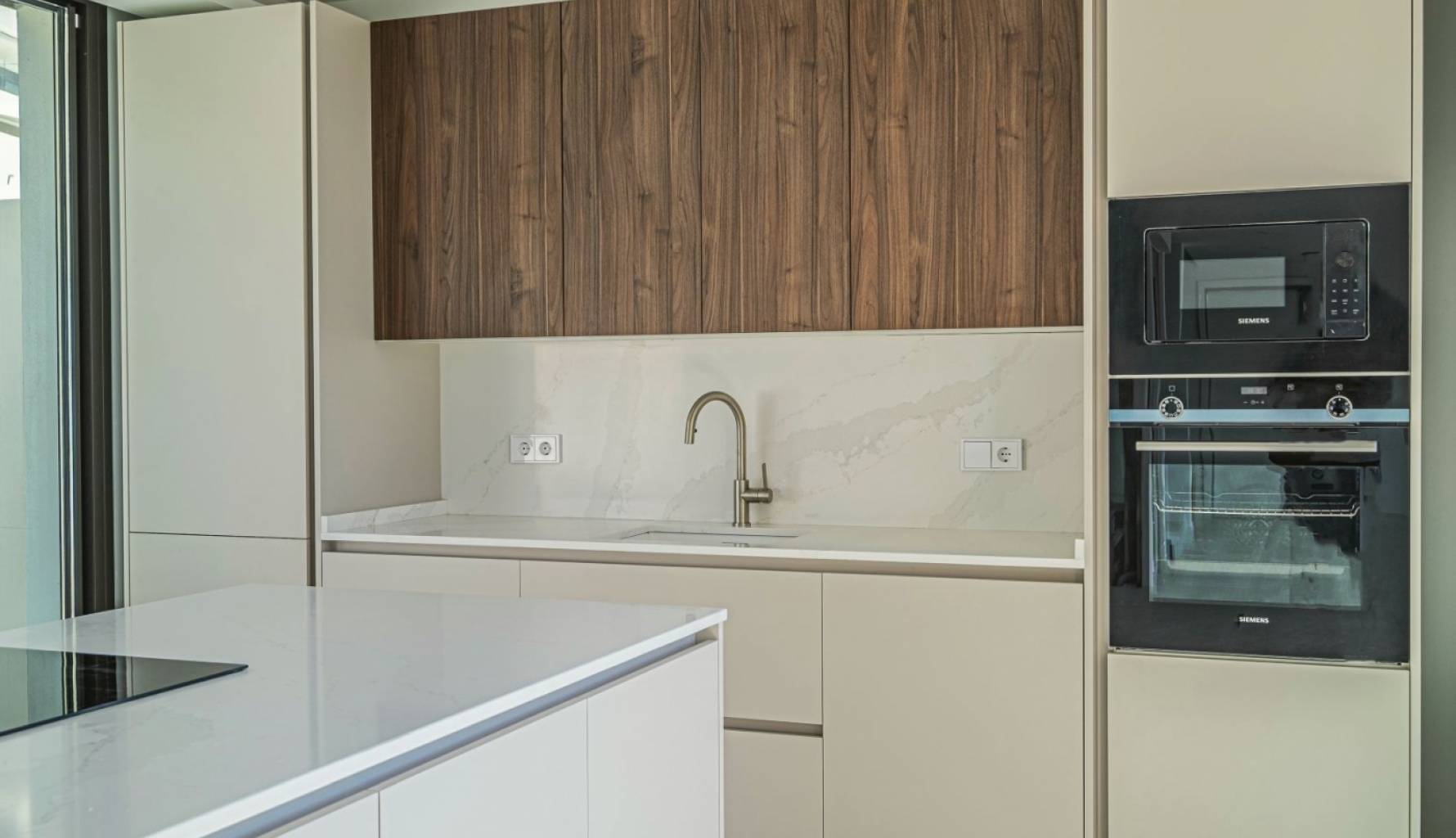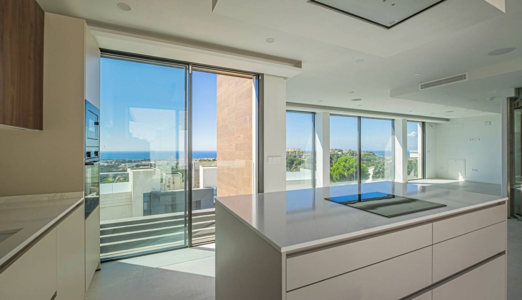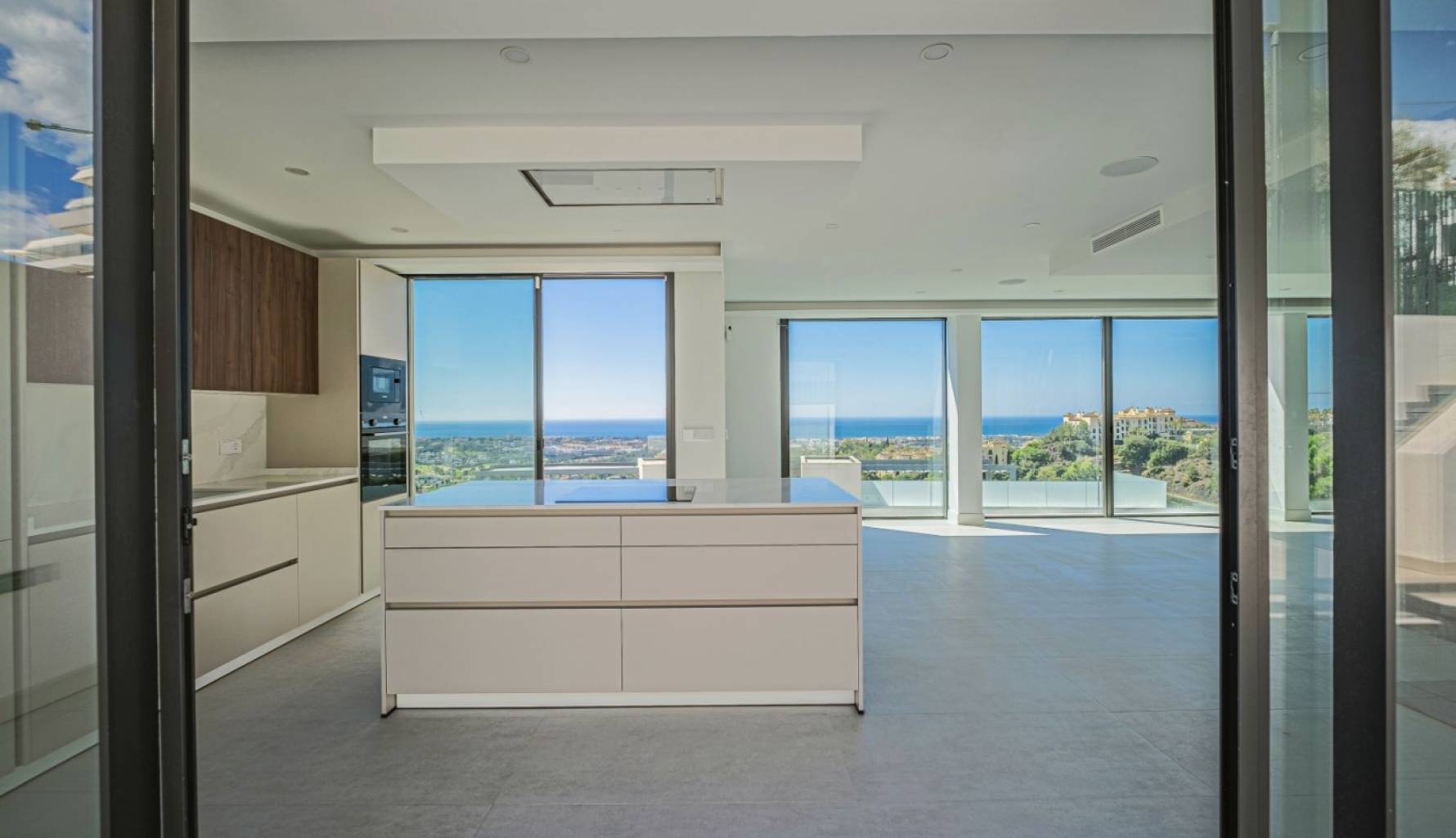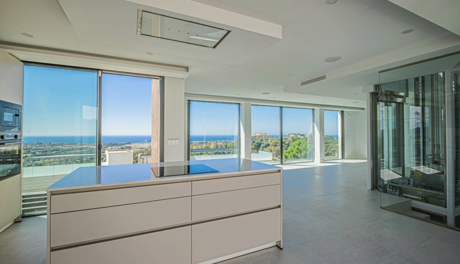 El interior de estas villas en Benahavís está diseñado con un enfoque en la comodidad y la tecnología moderna. Cada villa dispone de tres dormitorios y tres baños, lo que garantiza espacio suficiente para la familia o invitados. El suelo de gres porcelánico aporta un toque de sofisticación y durabilidad. Las villas están equipadas con aire acondicionado y un sistema de domótica que permite controlar diversos aspectos del hogar de manera eficiente. Las persianas eléctricas y el videoportero añaden un nivel adicional de comodidad y seguridad. Los electrodomésticos de alta calidad están incluidos, y los armarios empotrados ofrecen un almacenamiento práctico y elegante.