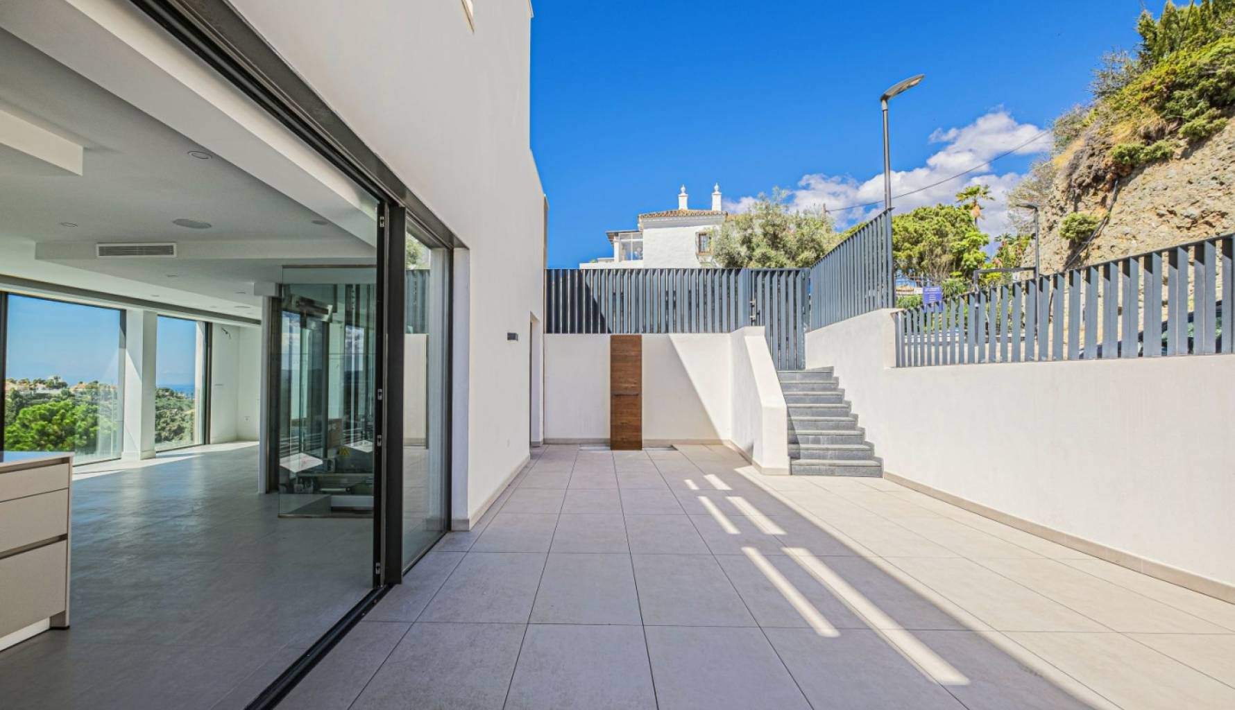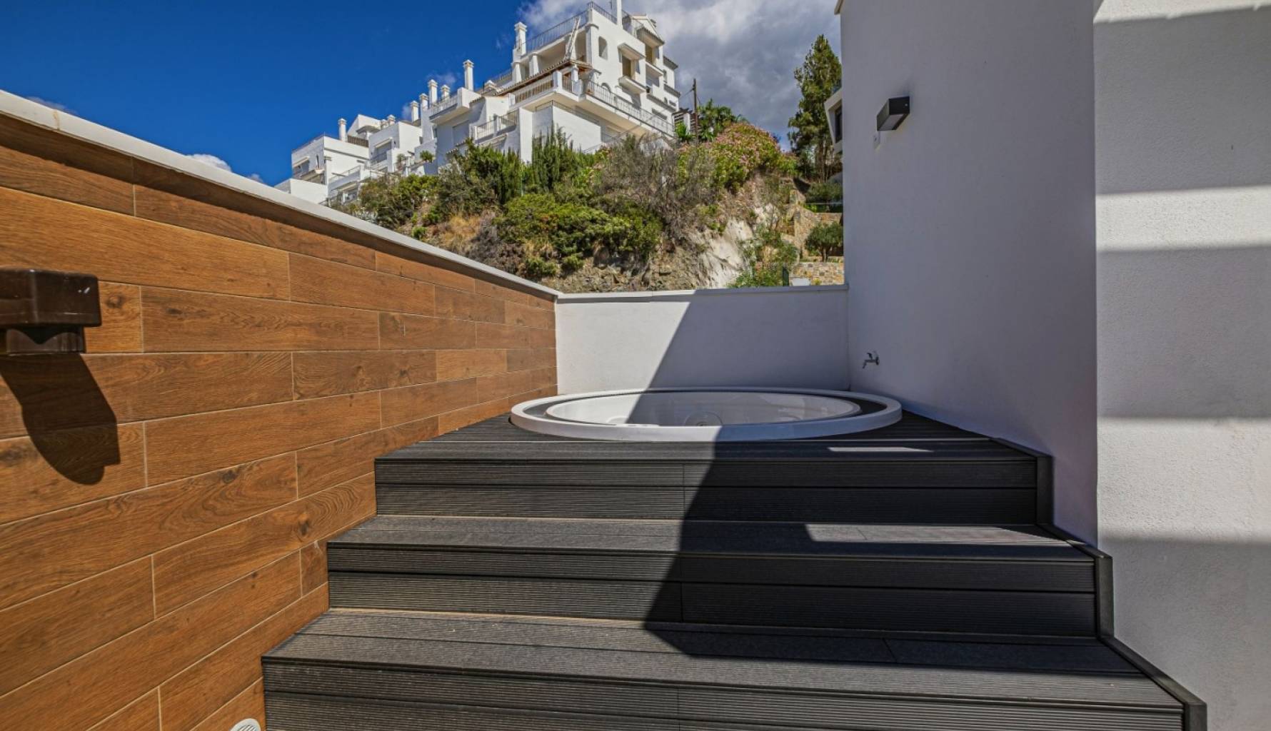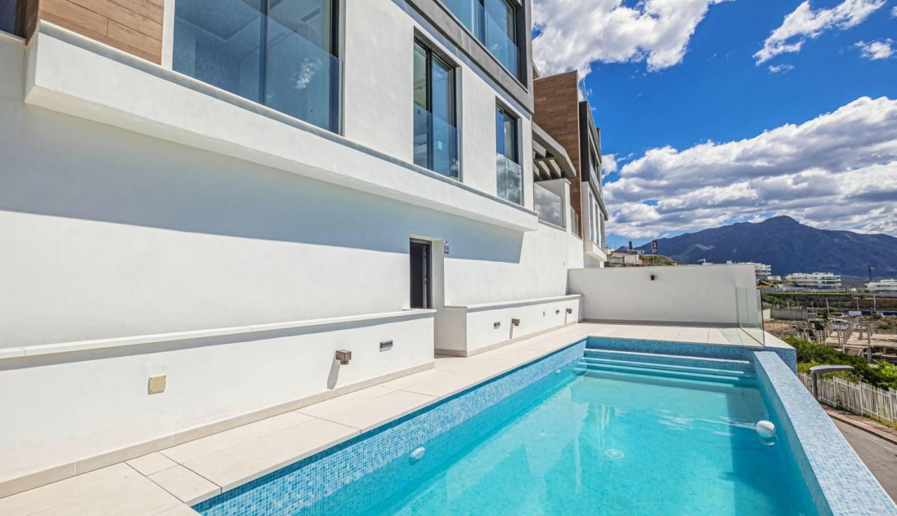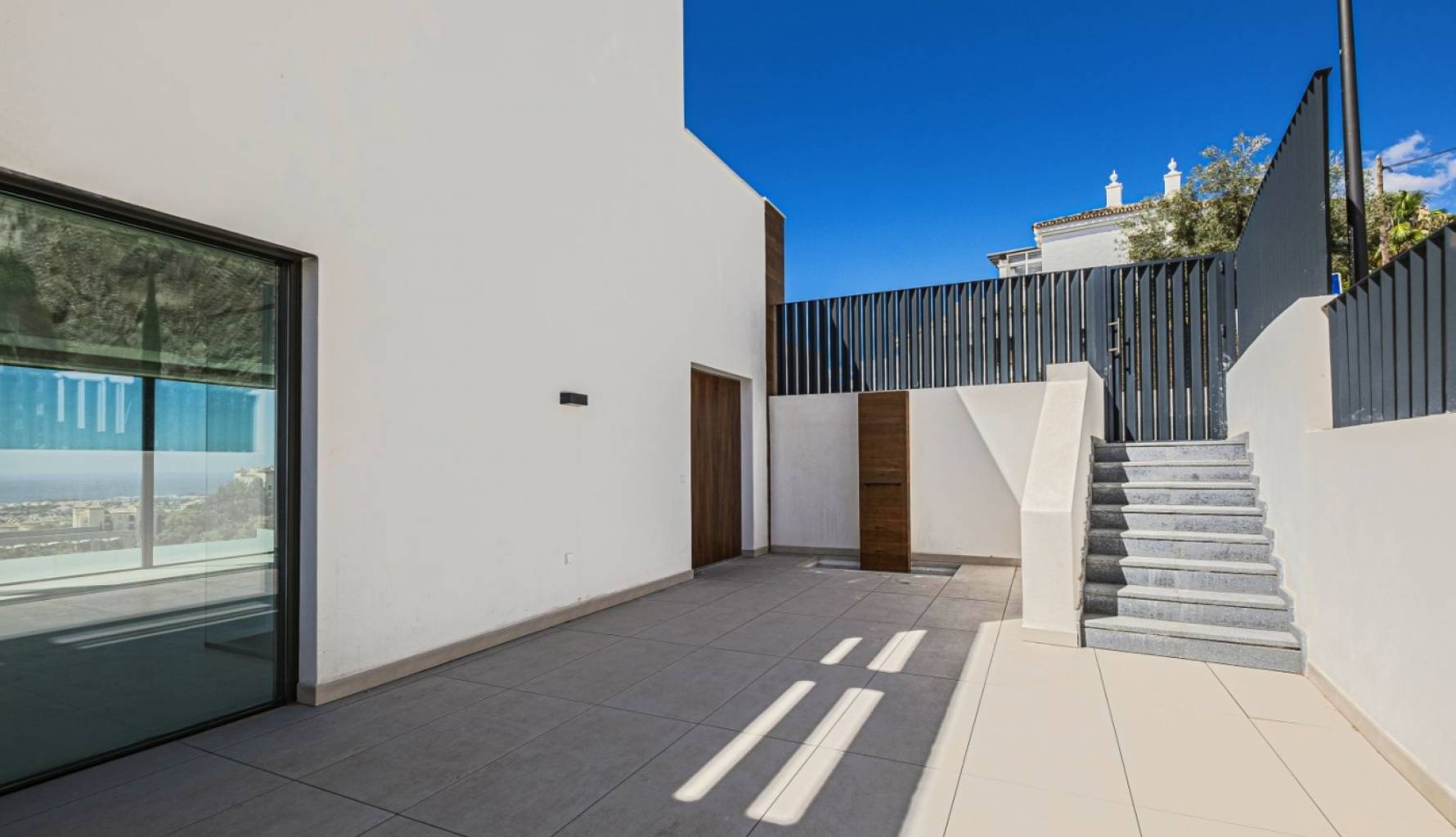 Los exteriores de estas villas en Benahavís están diseñados para disfrutar al máximo del clima mediterráneo. Cada villa cuenta con una piscina privada, perfecta para relajarse y disfrutar del sol. Además, las terrazas ofrecen un espacio ideal para el entretenimiento al aire libre, con vistas panorámicas al mar que crean un ambiente inigualable. La presencia de una pérgola añade un toque de elegancia y funcionalidad, proporcionando sombra y estilo a las áreas exteriores. El solárium es otro de los atractivos, ofreciendo un espacio adicional para disfrutar de las vistas y el clima.