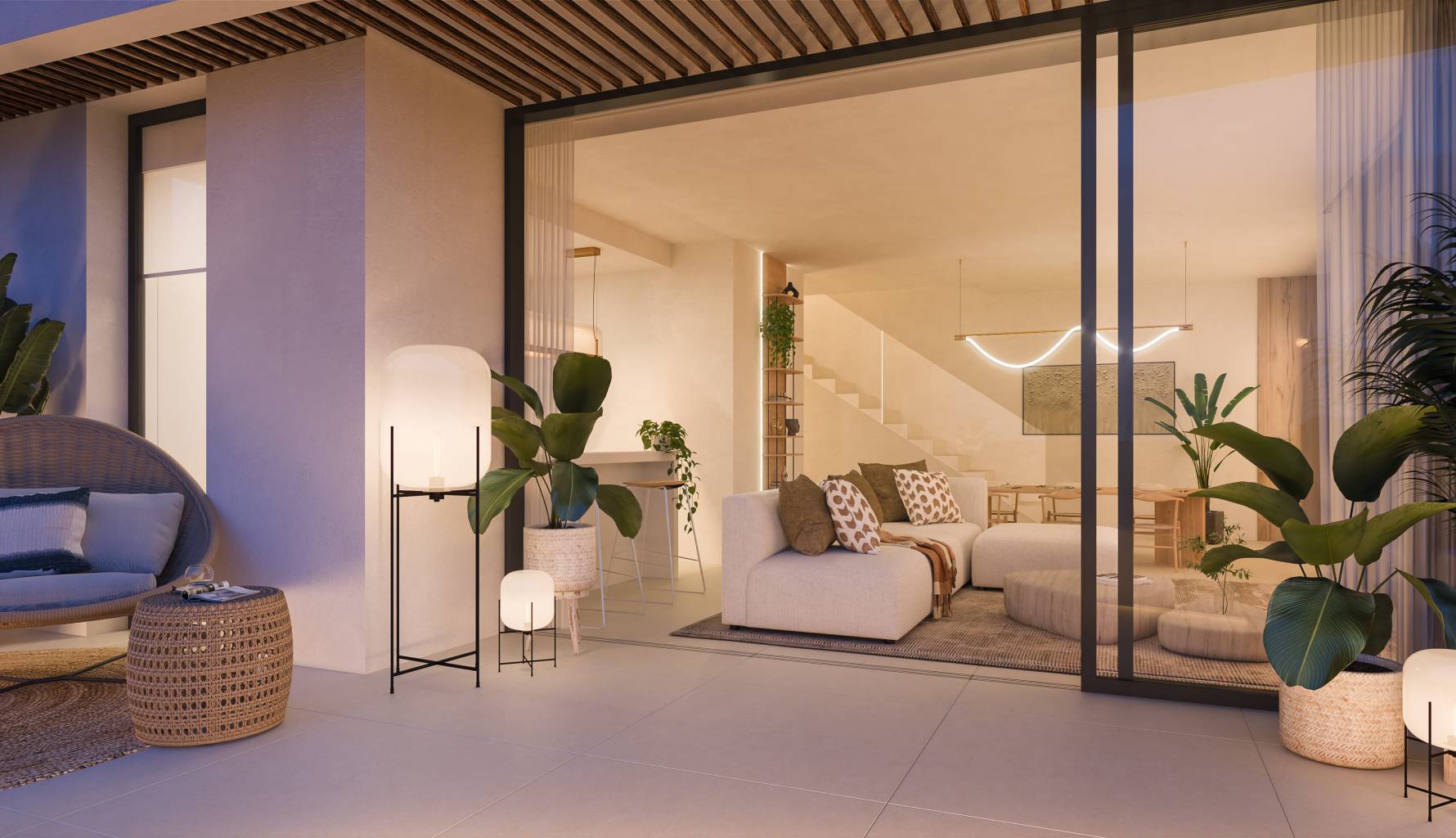 Las propiedades están equipadas con características de alta calidad que garantizan un confort excepcional. Los suelos de gres porcelánico aportan un toque moderno y elegante a cada espacio. La inclusión de electrodomésticos de última generación y un sistema de domótica avanzada facilita la vida diaria, permitiendo el control de diversas funciones del hogar con facilidad. El aire acondicionado y la calefacción por suelo radiante aseguran un ambiente agradable durante todo el año. Los armarios empotrados ofrecen soluciones de almacenamiento prácticas y eficientes, optimizando el uso del espacio.