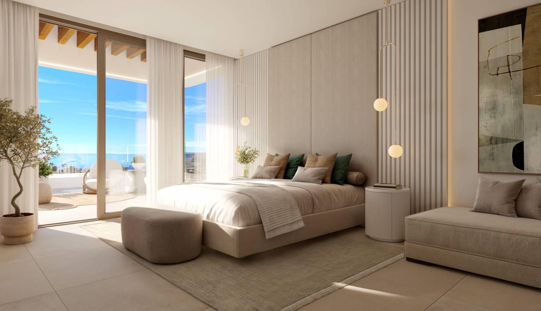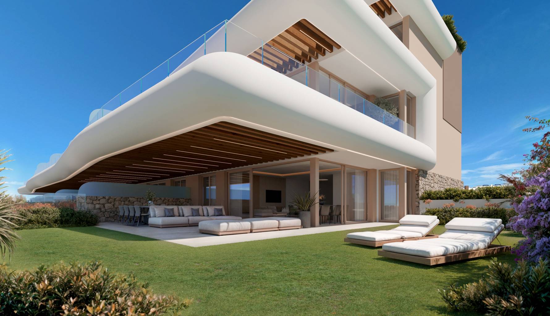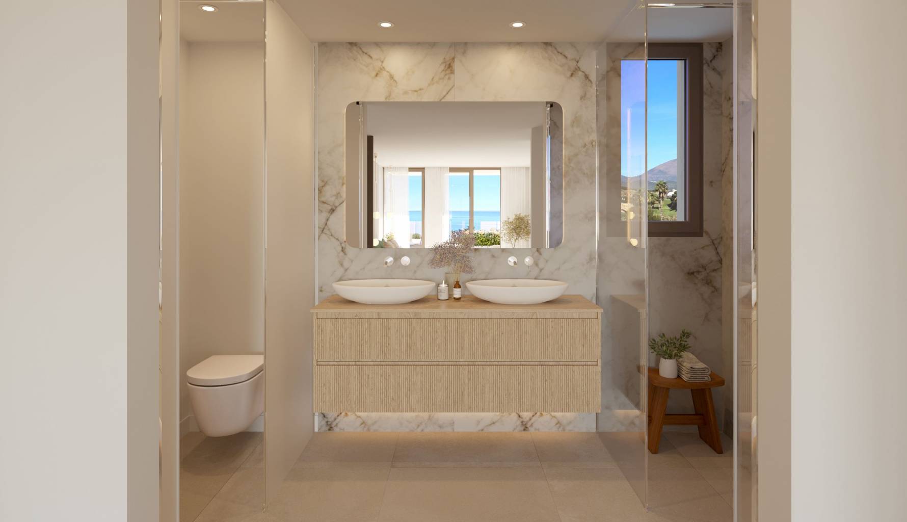 Los exteriores de este residencial en Casares Costa están diseñados para complementar el entorno natural y ofrecer un espacio de relajación y disfrute. Cada propiedad cuenta con una terraza privada, ideal para disfrutar de las vistas al mar y el clima mediterráneo. Además, los áticos incluyen un solárium, proporcionando un espacio adicional al aire libre para el ocio y el entretenimiento. La cercanía al mar y al campo de golf añade un valor adicional a la experiencia de vivir en este enclave único.