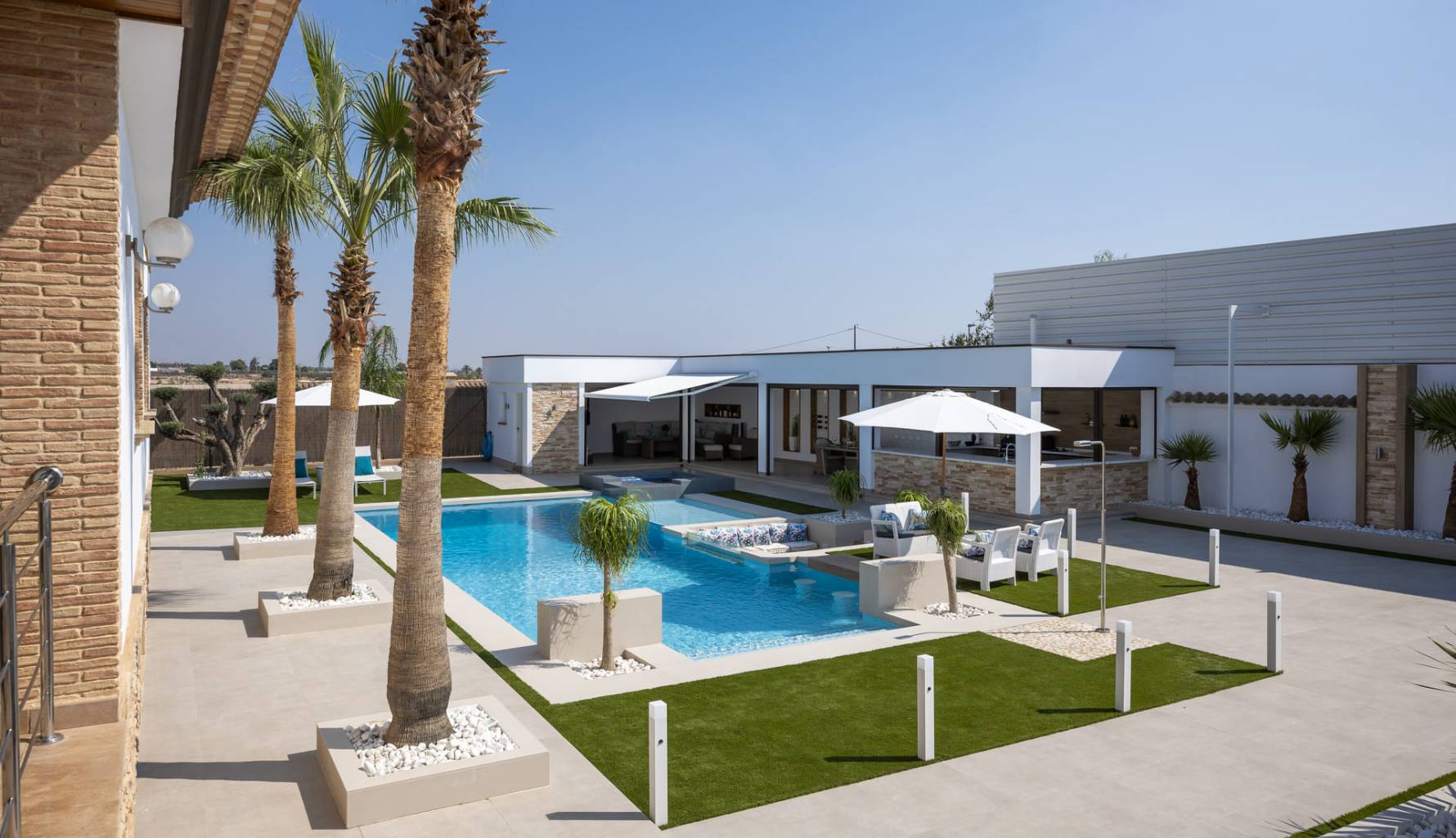 La villa cuenta con un amplio jardín privado, ideal para disfrutar del aire libre y organizar reuniones familiares o con amigos. Además, dispone de una piscina privada, perfecta para refrescarse durante los calurosos días de verano. La terraza es otro de los atractivos exteriores, ofreciendo un espacio adicional para relajarse y disfrutar del entorno natural que rodea la propiedad. El diseño exterior de la villa combina elegancia y funcionalidad, creando un ambiente acogedor y sofisticado.
