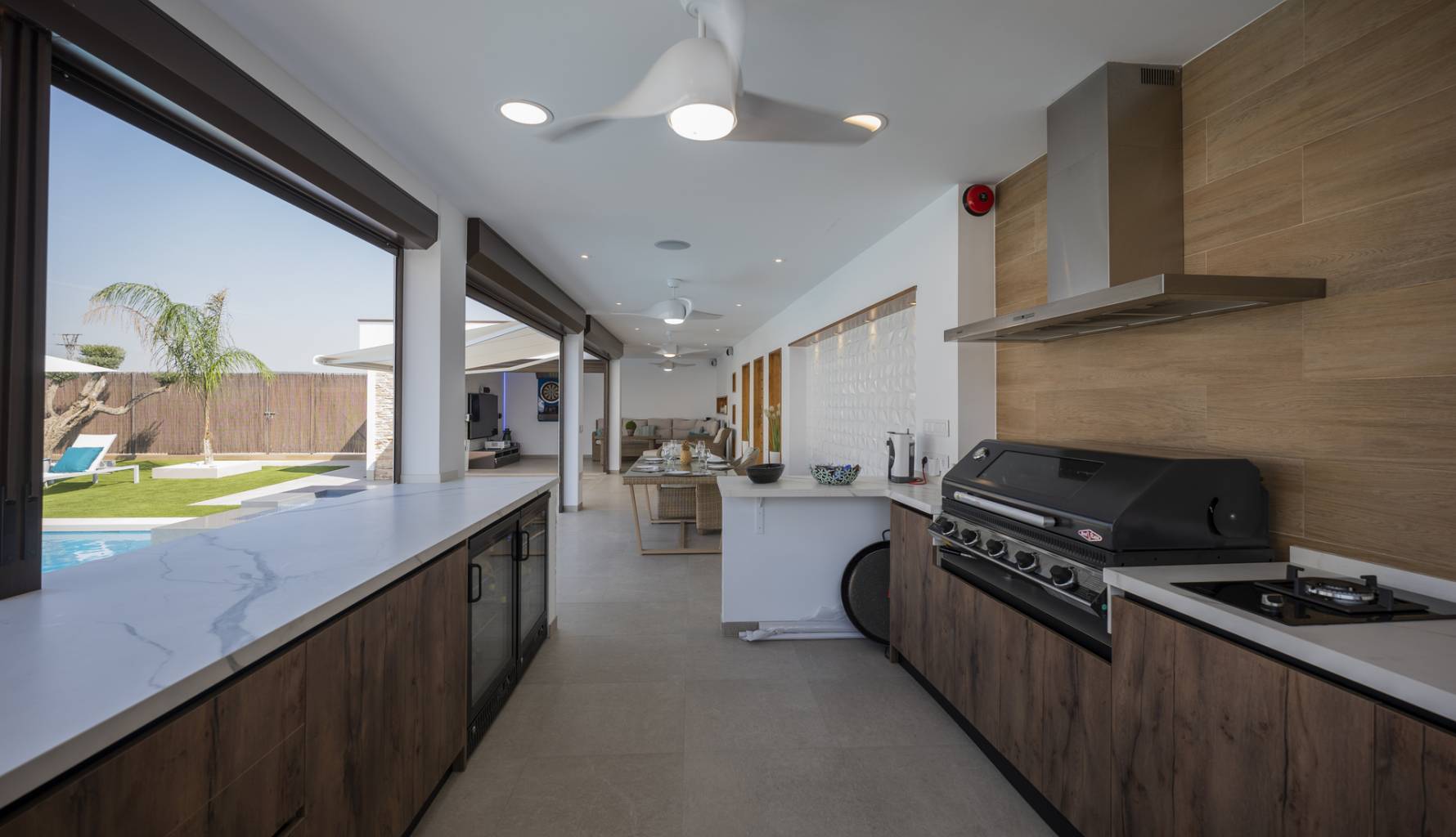 En el interior, la villa está equipada con todas las comodidades necesarias para un estilo de vida moderno. Dispone de cuatro dormitorios, lo que la hace ideal para familias numerosas o para quienes deseen contar con habitaciones adicionales para invitados. Los tres baños aseguran la comodidad y privacidad de todos los miembros del hogar. La villa viene completamente amueblada, lo que facilita la mudanza y permite disfrutar del nuevo hogar desde el primer día. Además, cuenta con aire acondicionado para garantizar el confort térmico durante todo el año. Los armarios empotrados ofrecen un amplio espacio de almacenamiento, manteniendo el orden y la organización en cada habitación.