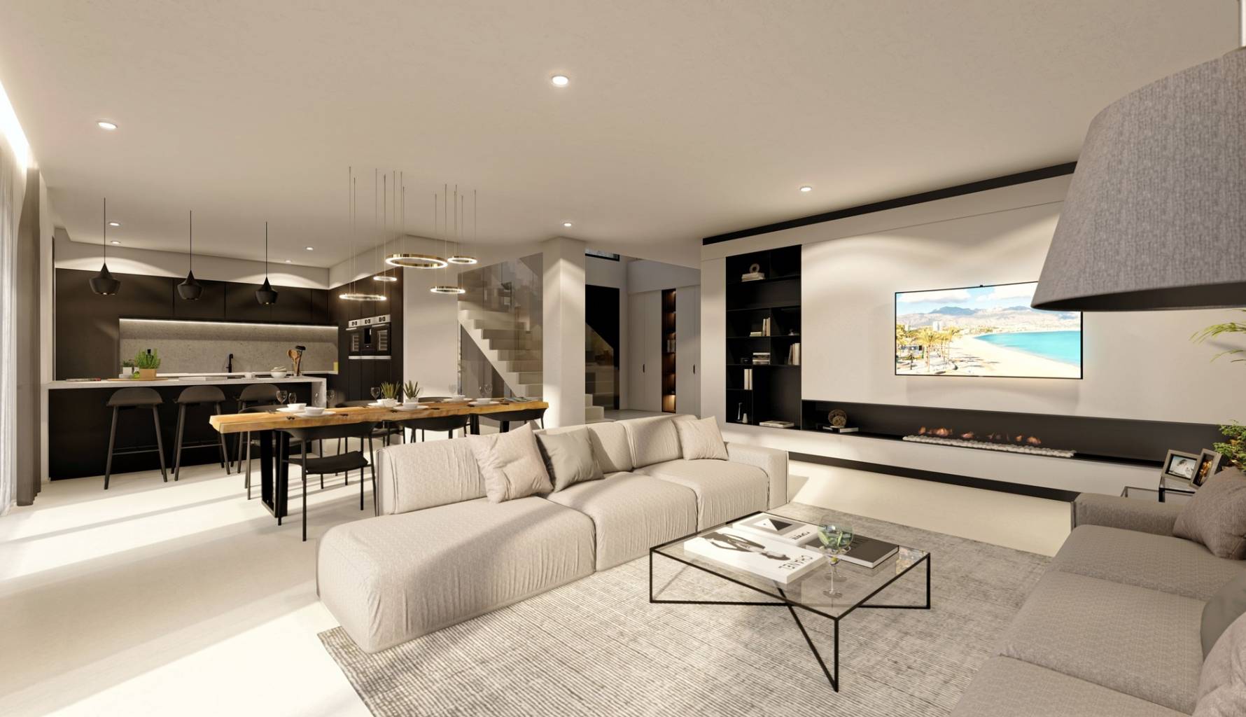 El interior de la villa está cuidadosamente diseñado para ofrecer el máximo confort y funcionalidad. Consta de cuatro dormitorios, cada uno con su propio baño, lo que garantiza privacidad y comodidad para todos los residentes. Los armarios empotrados proporcionan un amplio espacio de almacenamiento, manteniendo el orden y la estética del hogar. La cocina está equipada con electrodomésticos modernos, facilitando las tareas diarias y aportando un toque de sofisticación. El suelo de cerámica no solo es elegante, sino también fácil de mantener, ideal para un estilo de vida activo. La villa también incluye un garaje, proporcionando seguridad y comodidad para el estacionamiento de vehículos.