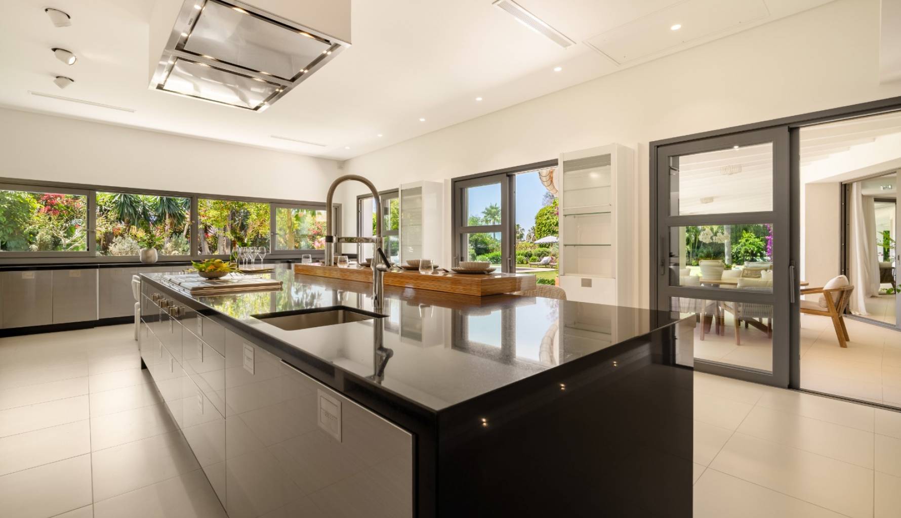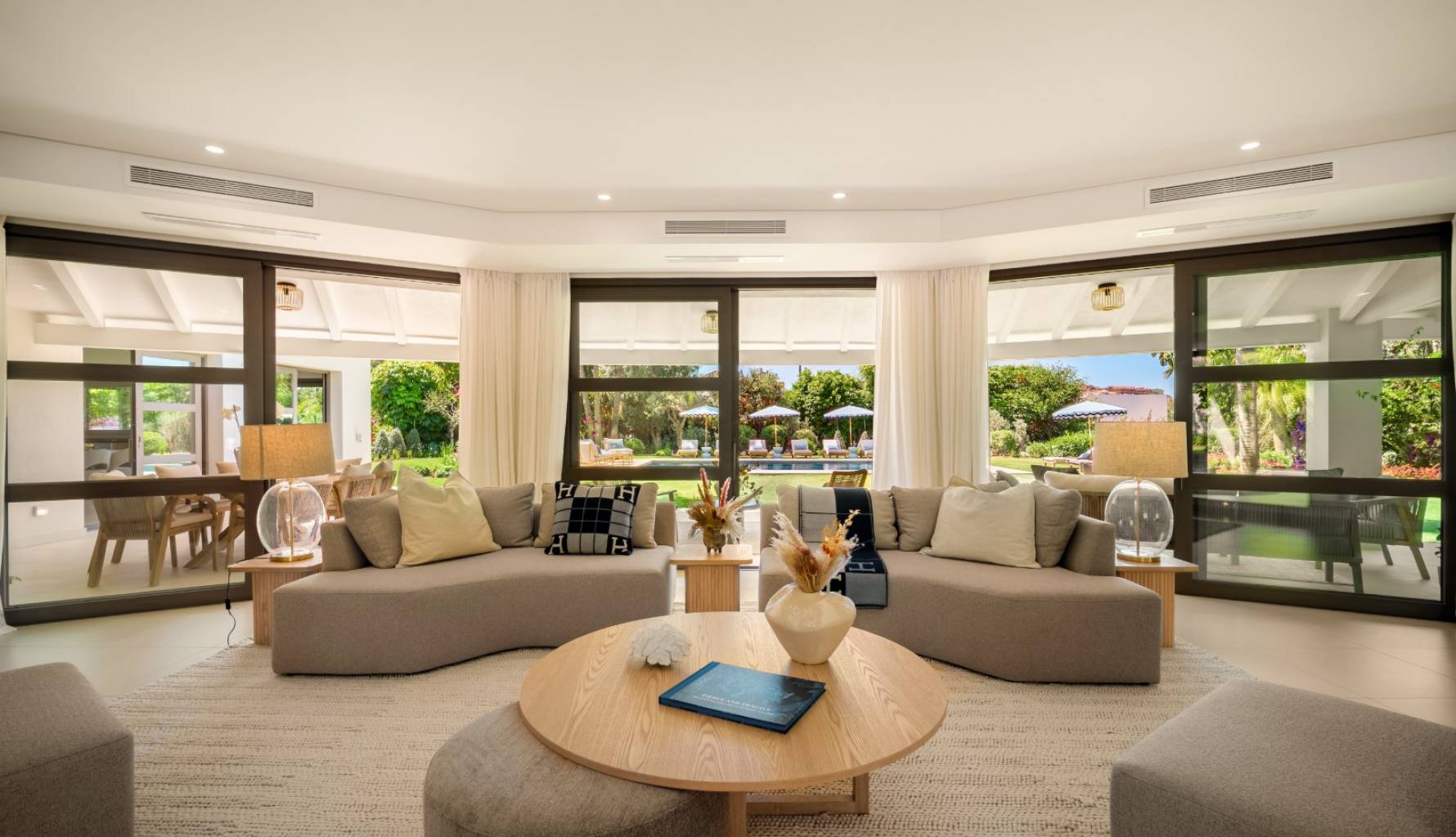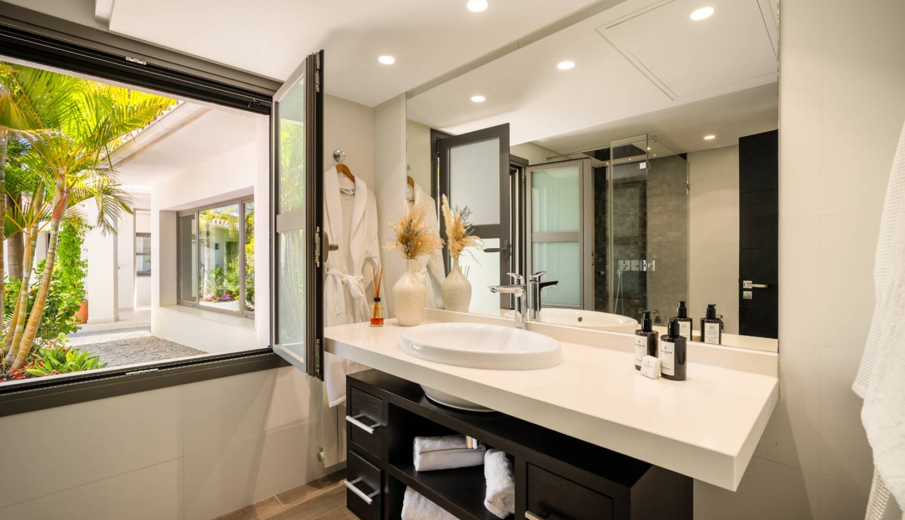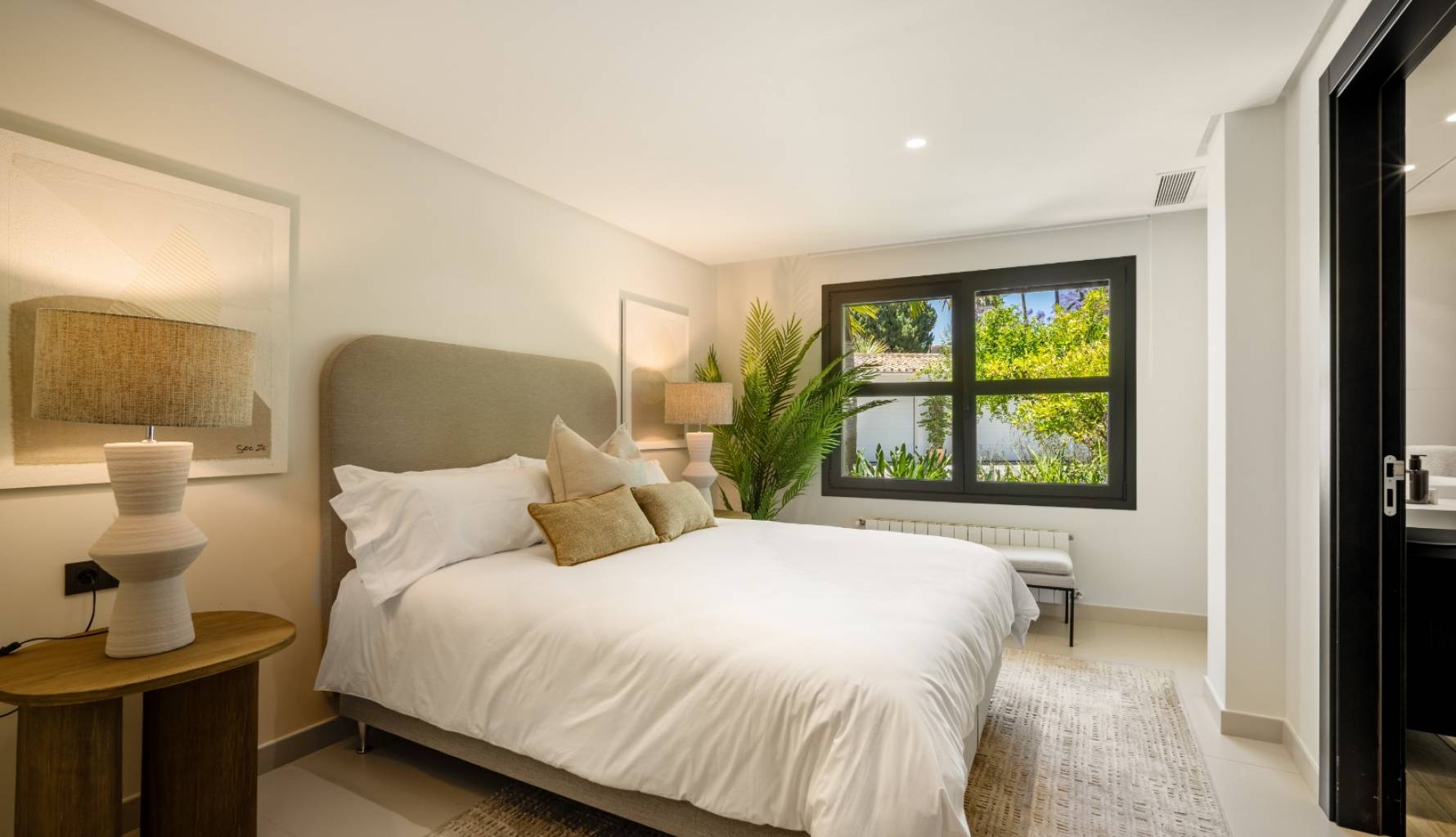 El interior de la villa está cuidadosamente diseñado para ofrecer el máximo confort y funcionalidad. Con un total de 5 dormitorios y 5 baños, cada espacio está pensado para proporcionar privacidad y comodidad. Los armarios empotrados en las habitaciones ofrecen un almacenamiento eficiente y elegante. La distribución incluye un garaje, asegurando espacio para vehículos y almacenamiento adicional. Cada detalle del interior refleja un compromiso con la calidad y el estilo, creando un ambiente acogedor y sofisticado.