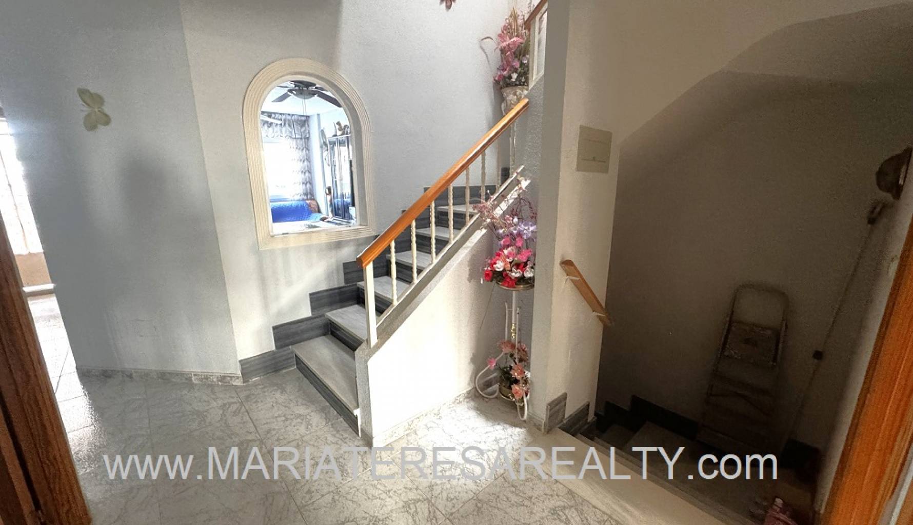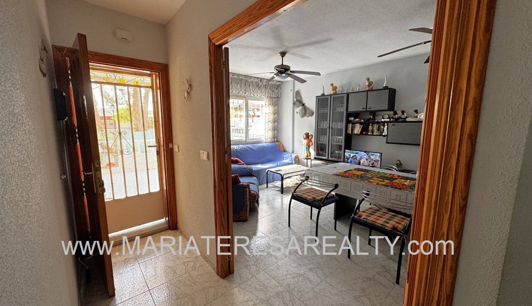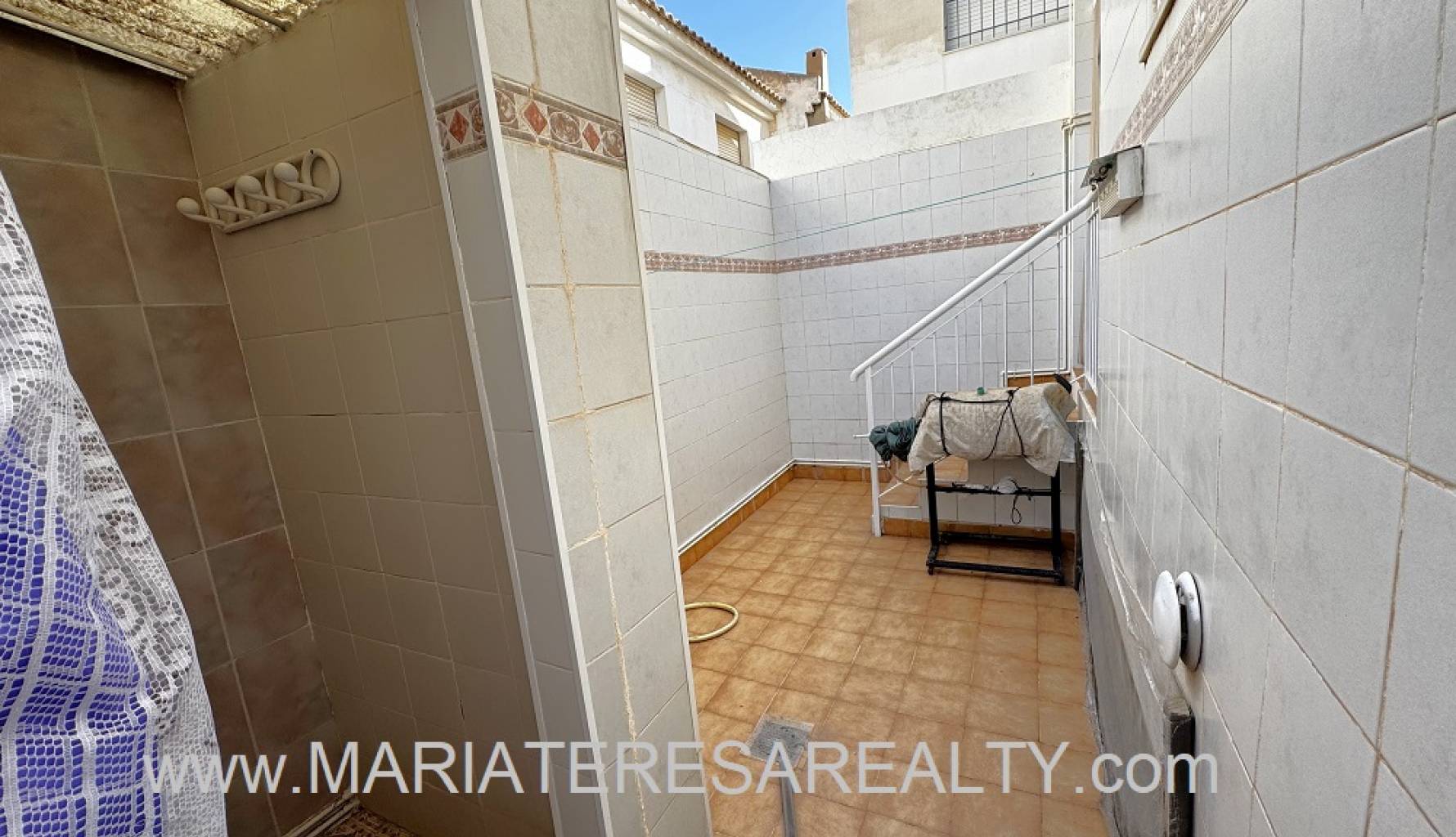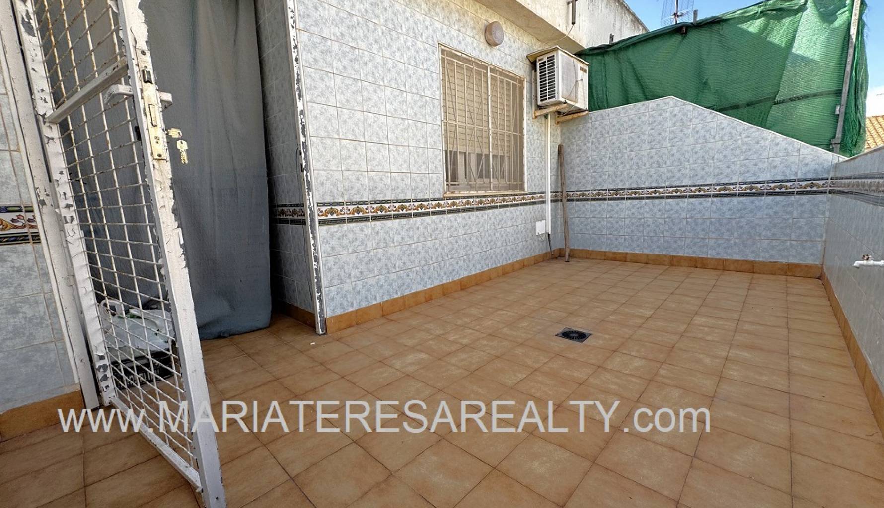 Preciosa casa adosada de 4 dormitorios en muy buen estado, cerca de la piscina municipal y la biblioteca en Los Alcázares. La vivienda consta de una amplia terraza con porche con toldos, al entrar nos encontramos con un recibidor que divide las habitaciones de a la vivienda en la planta baja tenemos un amplio salón independiente equipado con aire acondicionado, un dormitorio sin armario empotrado, un aseo y una amplia cocina completamente equipada que da salida a una zona de lavadero independiente que a su vez da salida a un amplio patio trasero en el cual tenemos una ducha exterior de obra. Bajando las escaleras tenemos un amplio sótano con entrada desde el exterior, es decir, completamente independiente de la vivienda principal, en el cual tenemos un cuarto de baño con ducha y dos amplios dormitorios sin armario empotrado. En la planta alta de esta casa adosada tenemos un dormitorio principal con armario empotrado y con salida a un balcón, un dormitorio con aire acondicionado y sin armario empotrado con salida a una terraza cubierta que a su vez da salida a una amplia terraza, un cuarto de baño equipado con bañera y un dormitorio con armario empotrado.