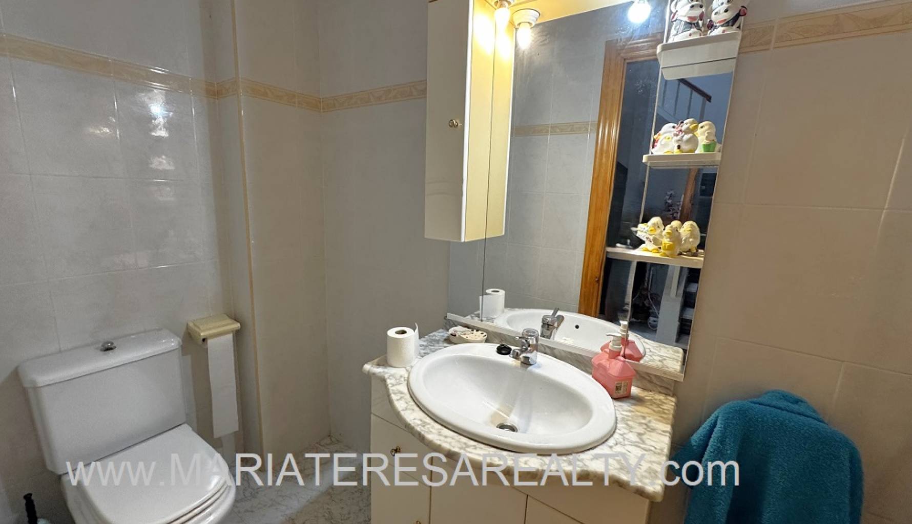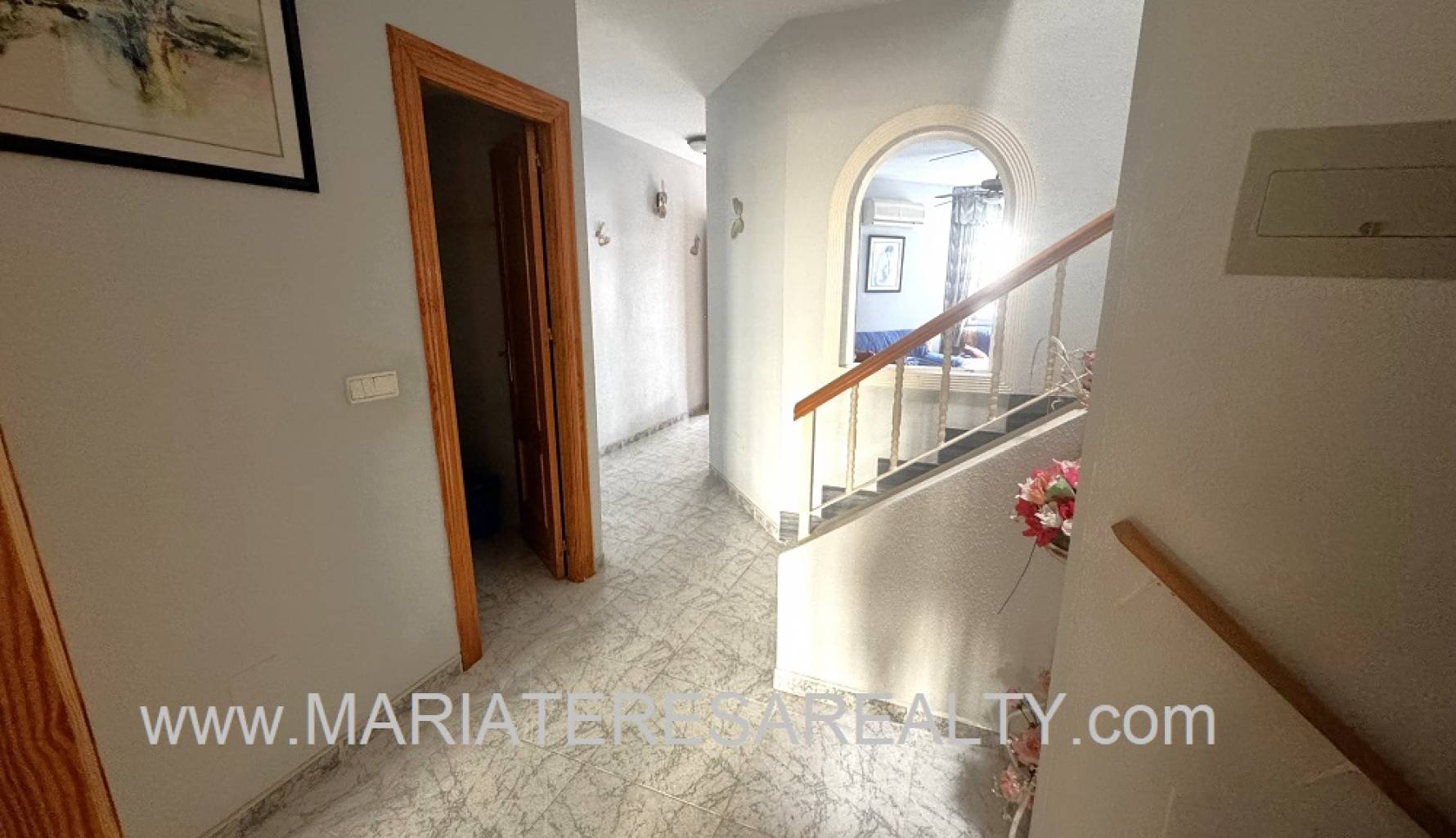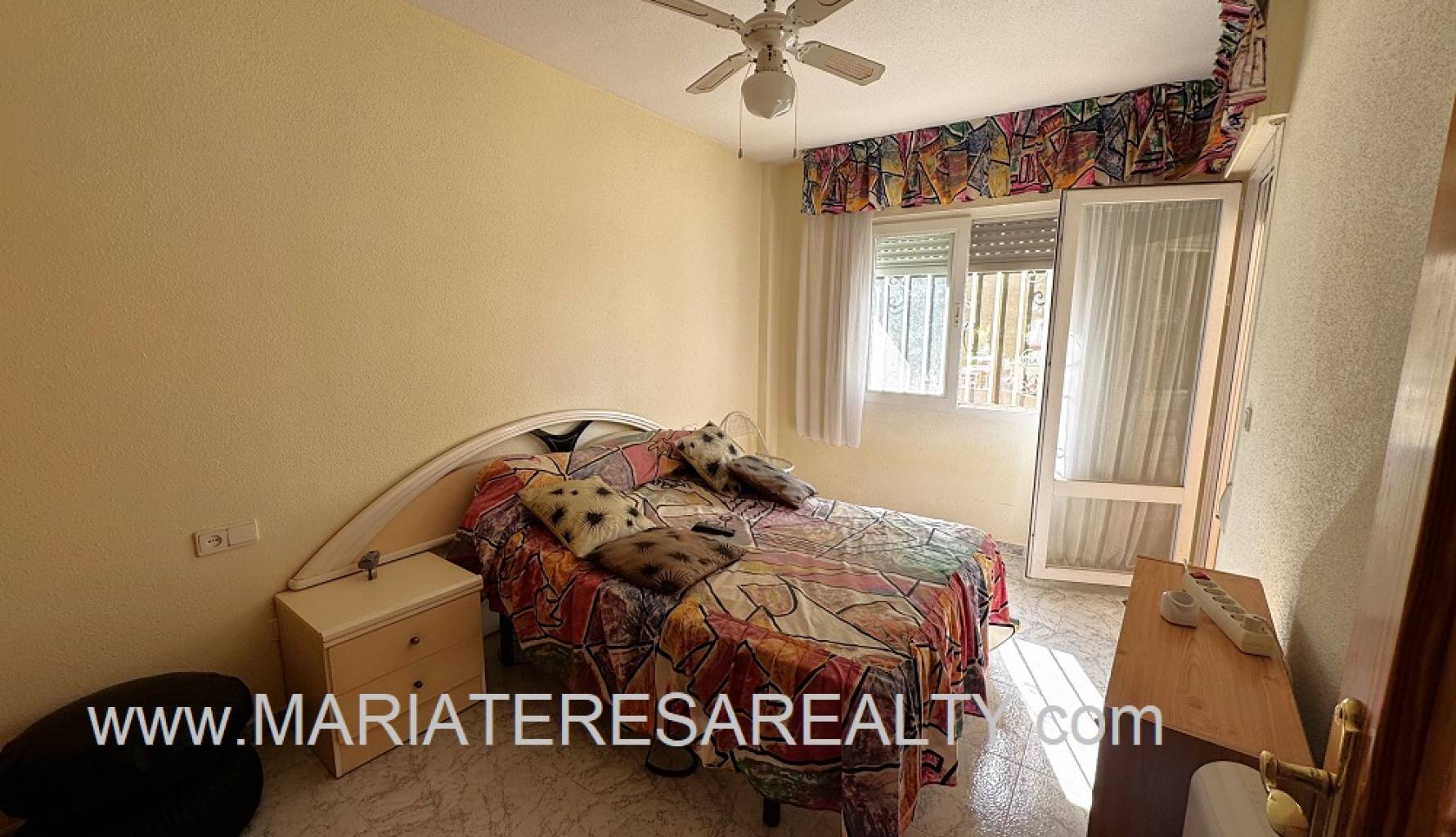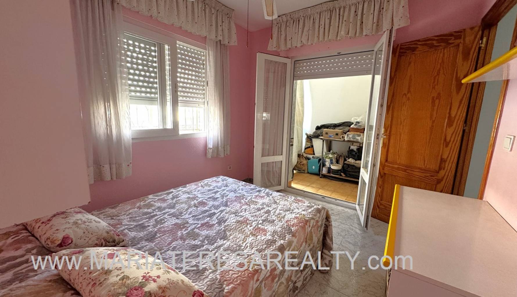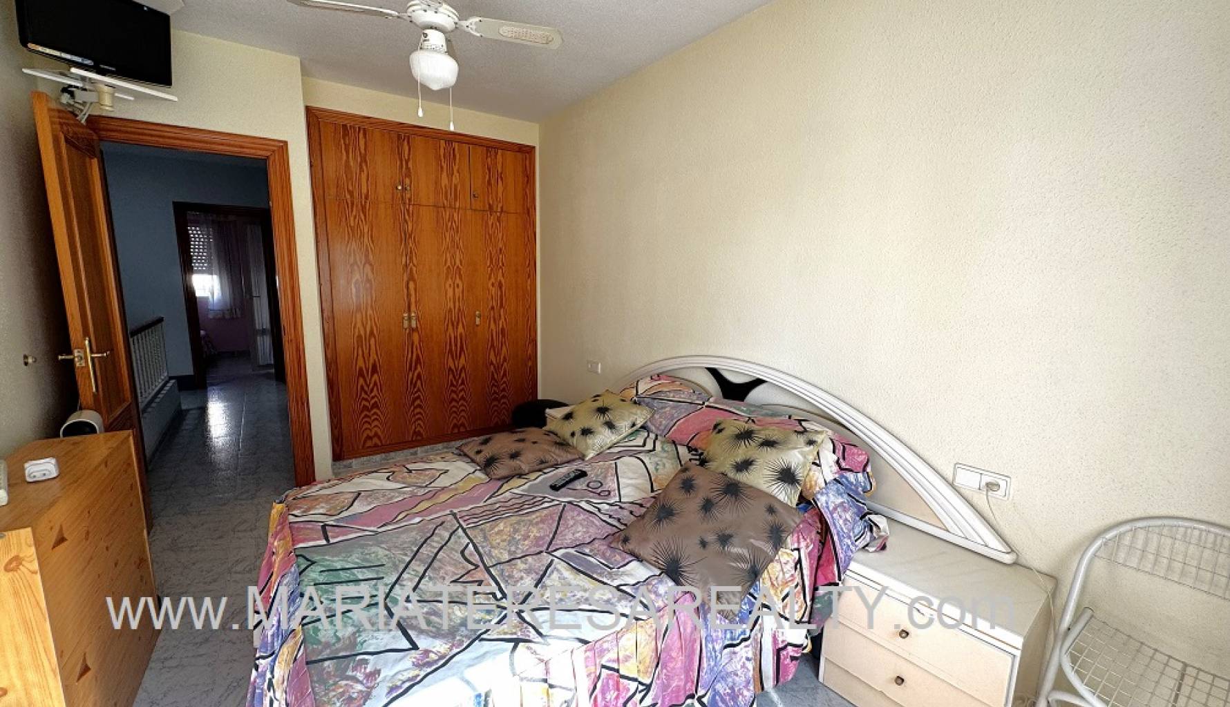 Preciosa casa adosada de 4 dormitorios en muy buen estado, cerca de la piscina municipal y la biblioteca en Los Alcázares. La vivienda consta de una amplia terraza con porche con toldos, al entrar nos encontramos con un recibidor que divide las habitaciones de a la vivienda en la planta baja tenemos un amplio salón independiente equipado con aire acondicionado, un dormitorio sin armario empotrado, un aseo y una amplia cocina completamente equipada que da salida a una zona de lavadero independiente que a su vez da salida a un amplio patio trasero en el cual tenemos una ducha exterior de obra. Bajando las escaleras tenemos un amplio sótano con entrada desde el exterior, es decir, completamente independiente de la vivienda principal, en el cual tenemos un cuarto de baño con ducha y dos amplios dormitorios sin armario empotrado. En la planta alta de esta casa adosada tenemos un dormitorio principal con armario empotrado y con salida a un balcón, un dormitorio con aire acondicionado y sin armario empotrado con salida a una terraza cubierta que a su vez da salida a una amplia terraza, un cuarto de baño equipado con bañera y un dormitorio con armario empotrado.