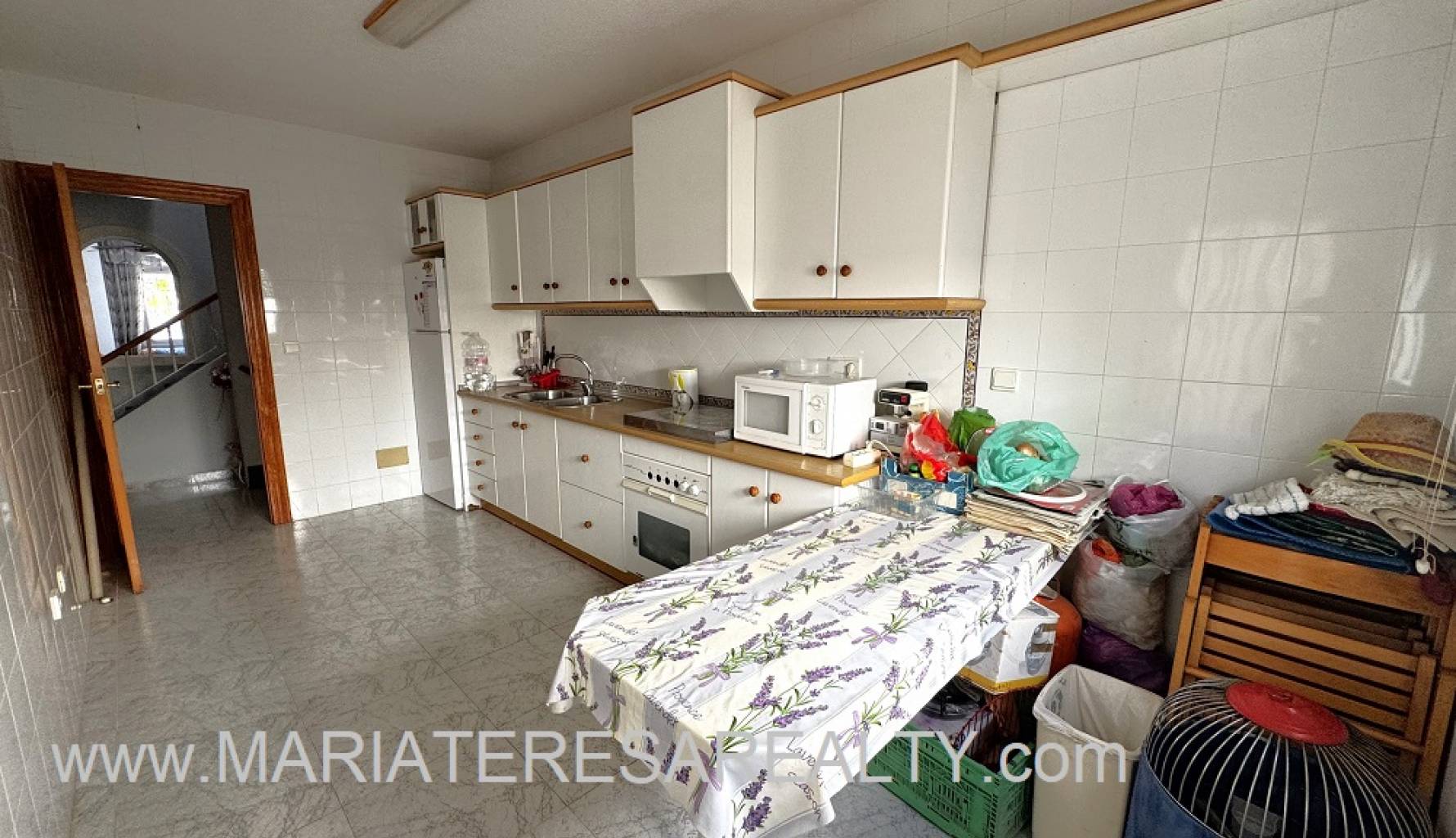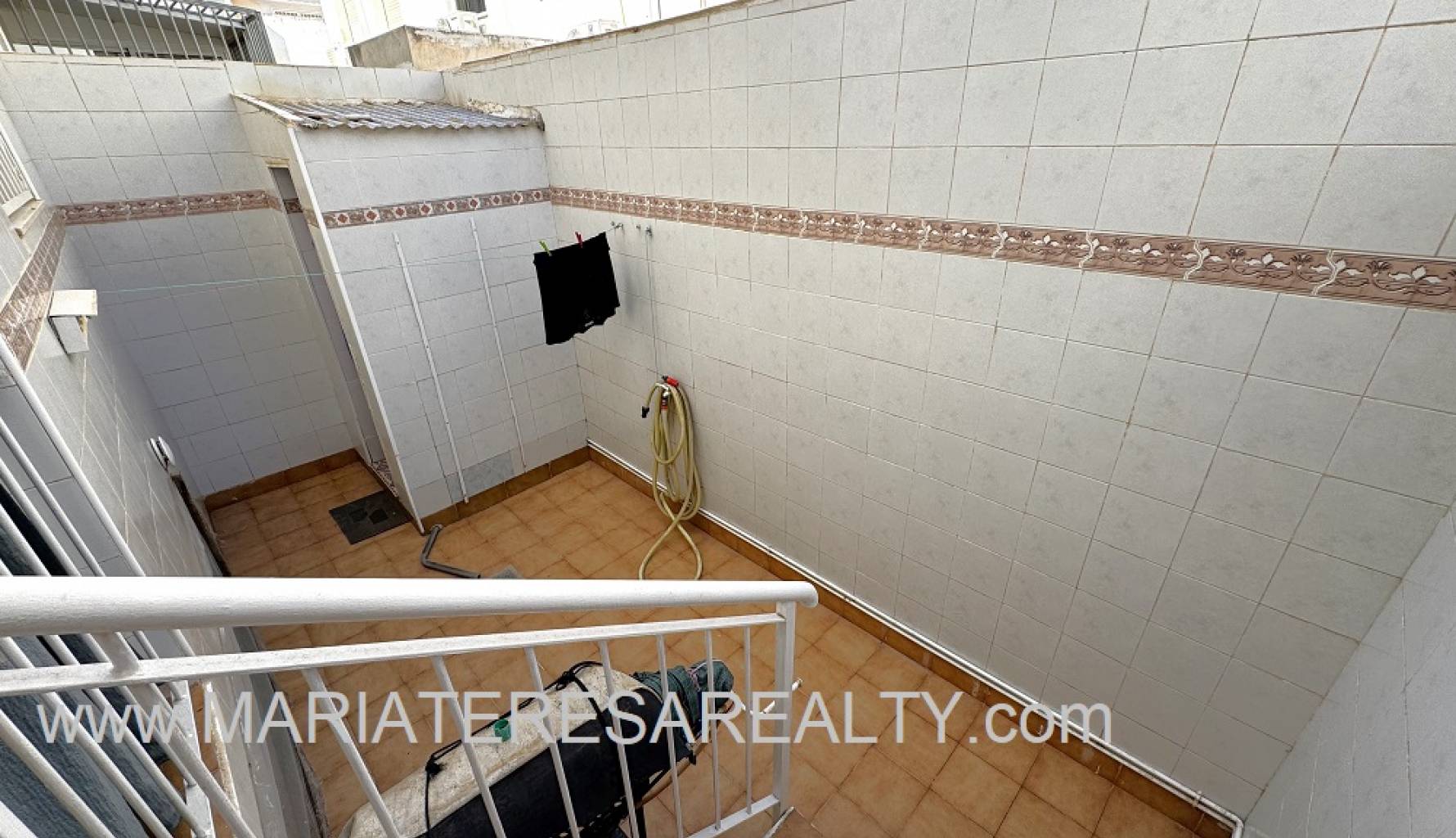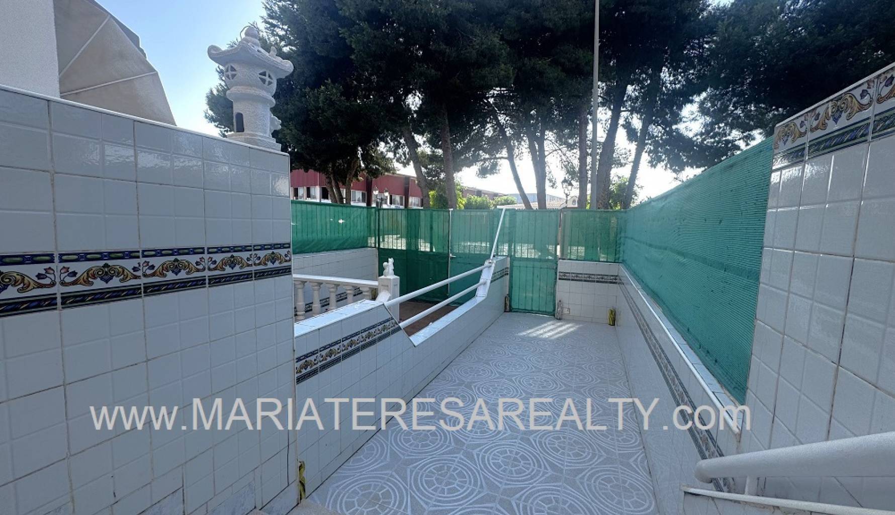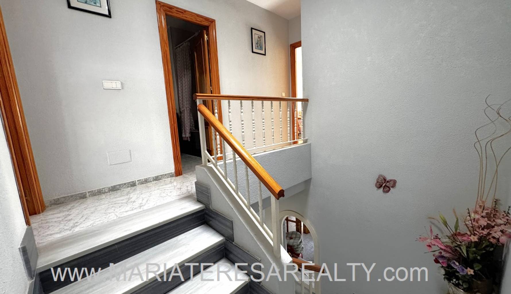 Preciosa casa adosada de 4 dormitorios en muy buen estado, cerca de la piscina municipal y la biblioteca en Los Alcázares. La vivienda consta de una amplia terraza con porche con toldos, al entrar nos encontramos con un recibidor que divide las habitaciones de a la vivienda en la planta baja tenemos un amplio salón independiente equipado con aire acondicionado, un dormitorio sin armario empotrado, un aseo y una amplia cocina completamente equipada que da salida a una zona de lavadero independiente que a su vez da salida a un amplio patio trasero en el cual tenemos una ducha exterior de obra. Bajando las escaleras tenemos un amplio sótano con entrada desde el exterior, es decir, completamente independiente de la vivienda principal, en el cual tenemos un cuarto de baño con ducha y dos amplios dormitorios sin armario empotrado. En la planta alta de esta casa adosada tenemos un dormitorio principal con armario empotrado y con salida a un balcón, un dormitorio con aire acondicionado y sin armario empotrado con salida a una terraza cubierta que a su vez da salida a una amplia terraza, un cuarto de baño equipado con bañera y un dormitorio con armario empotrado.