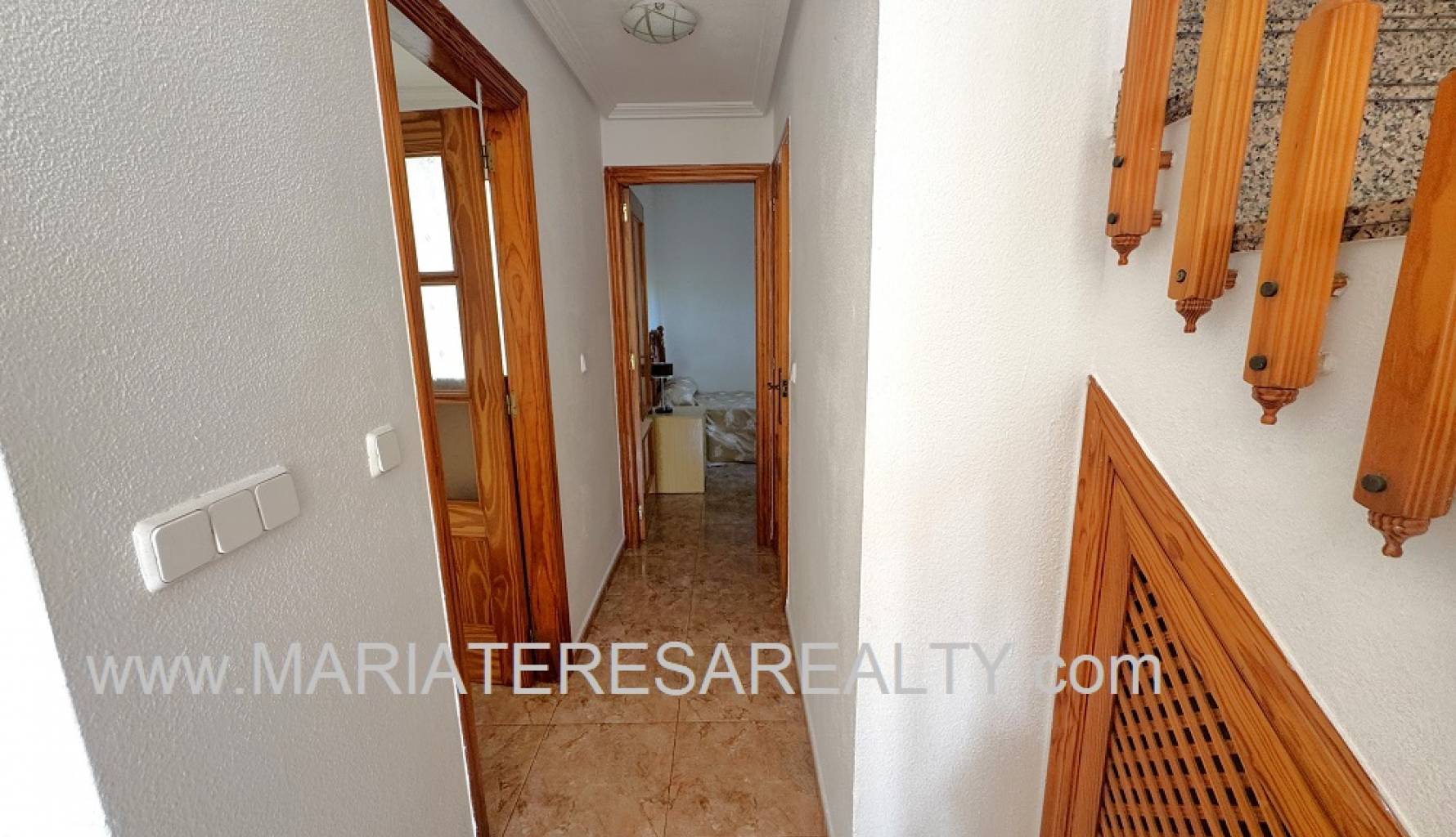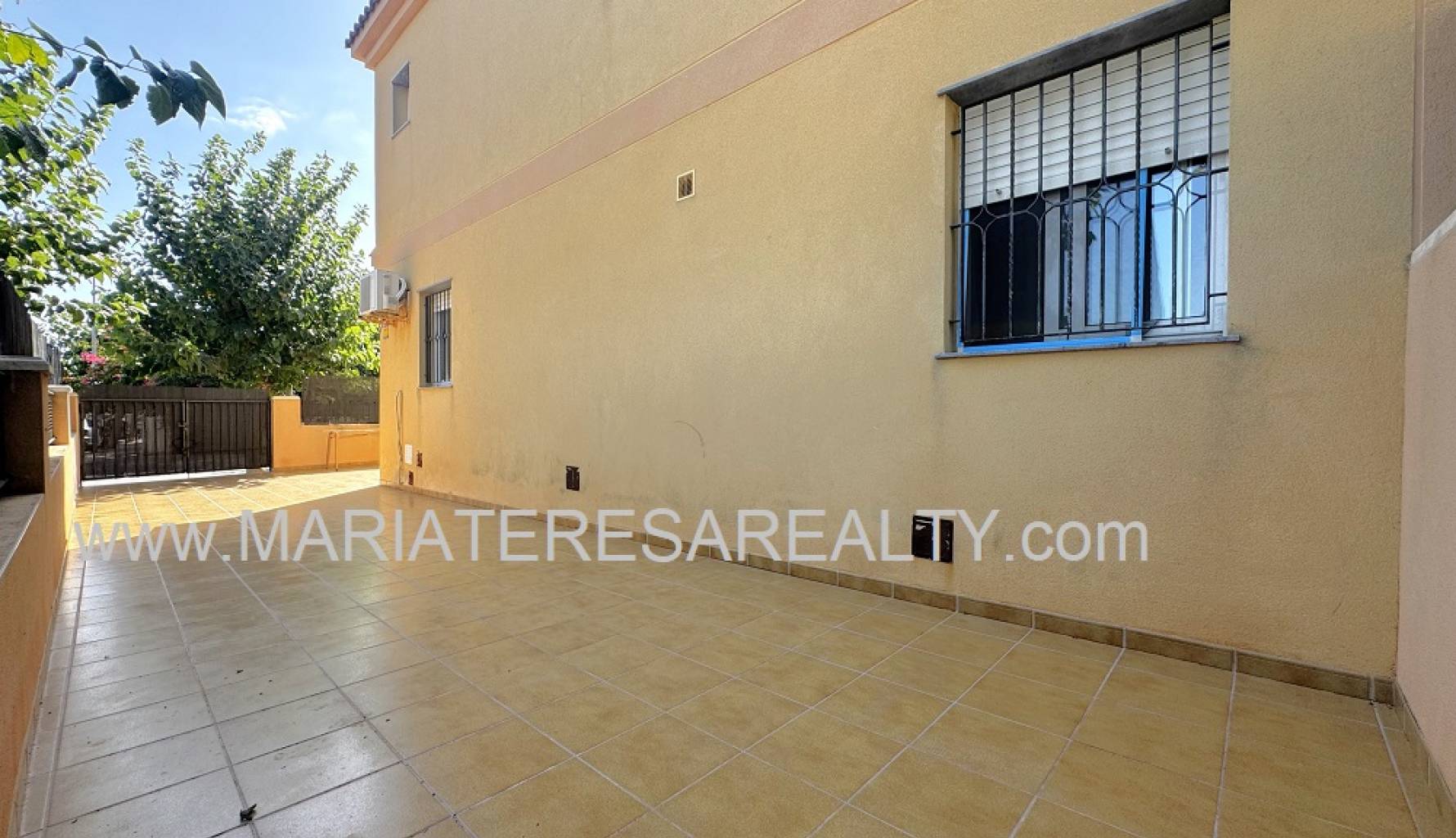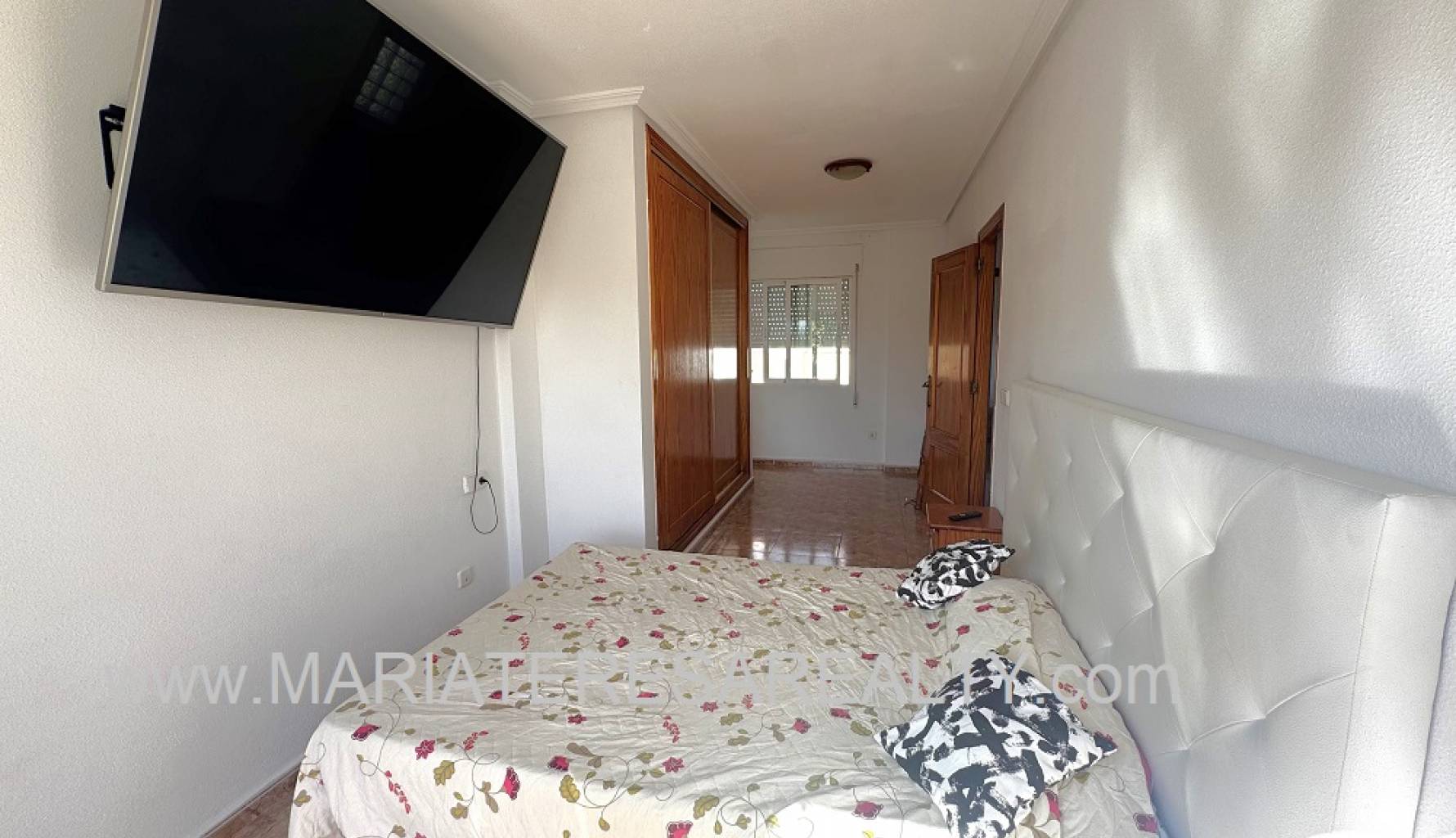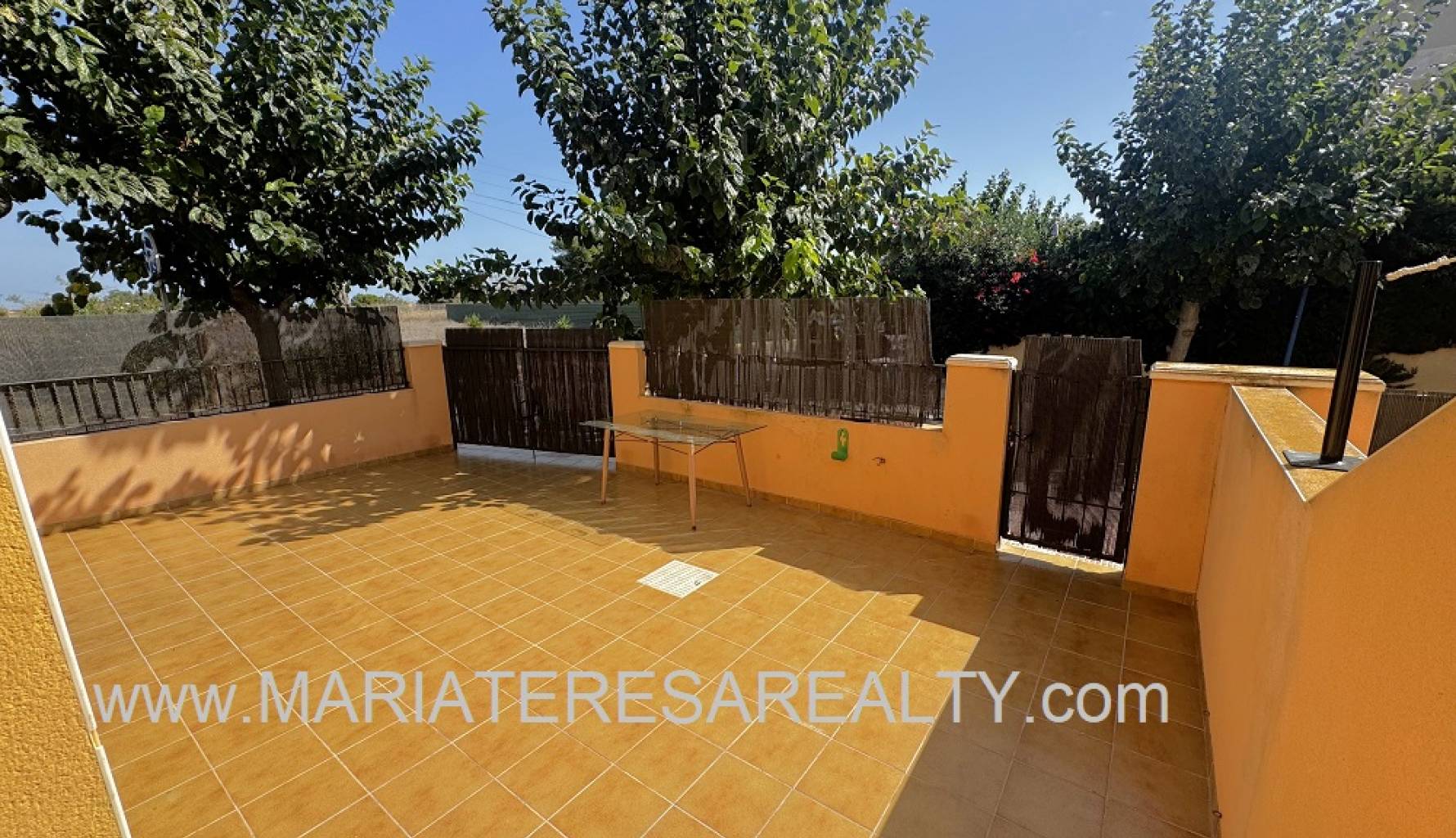 Precioso dúplex en esquina con jardín propio en los Narejos, Los Alcázares, Murcia. Al entrar a este dúplex tenemos un amplio y luminoso saló/comedor que a su vez da a un pasillo donde nos encontramos con la cocina independiente completamente equipada que a su vez da salida a un patio semi cubierto, siguiendo el pasillo tenemos un dormitorio con armario empotrado y un cuarto de baño equipado con ducha. Subiendo la escalera que se encuentra en el salón/comedor nos encontramos con un dormitorio con armario empotrado, un amplio cuarto de baño equipado con bañera y un amplio dormitorio con un gran armario empotrado y con salida a una terraza.
