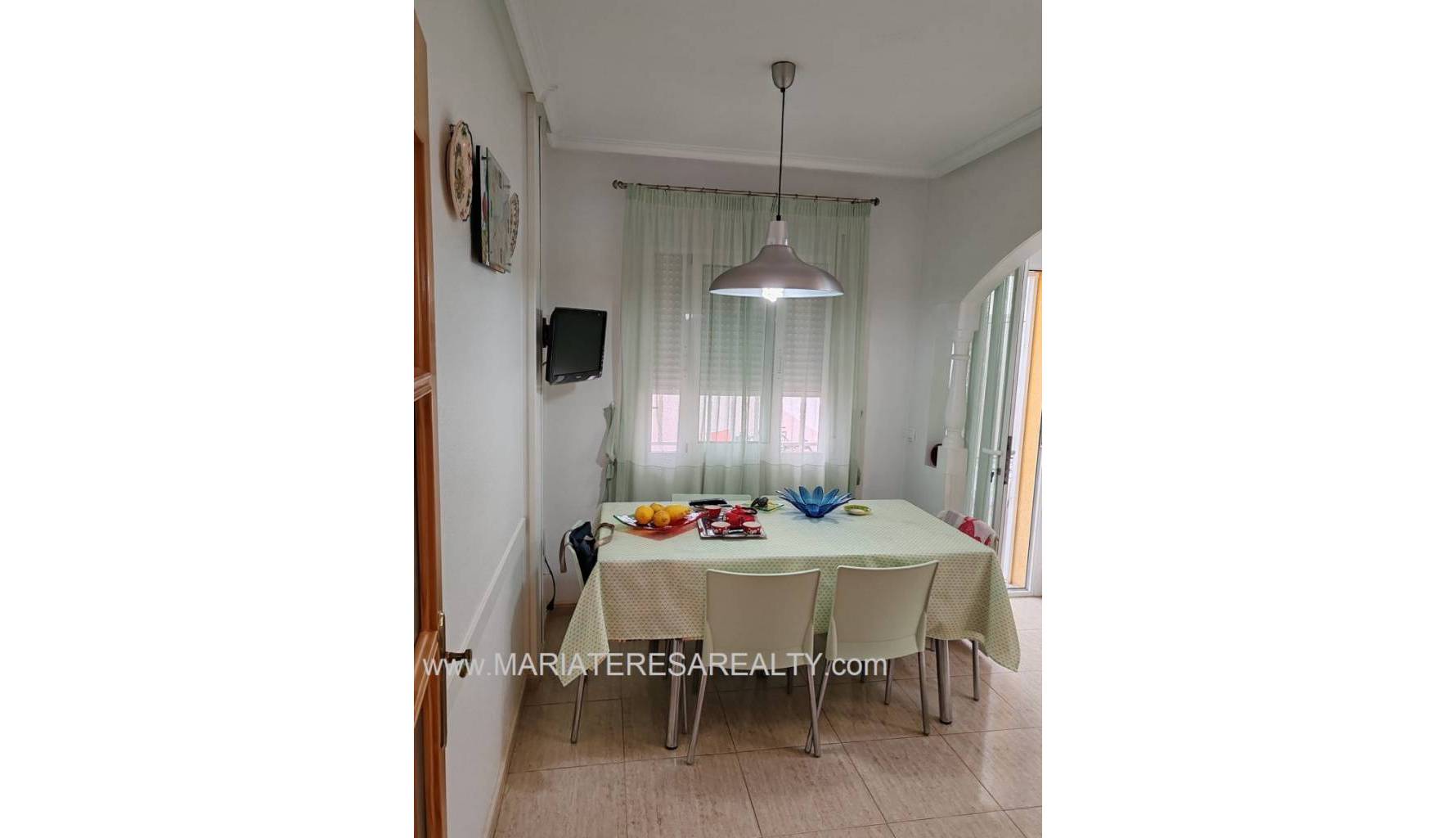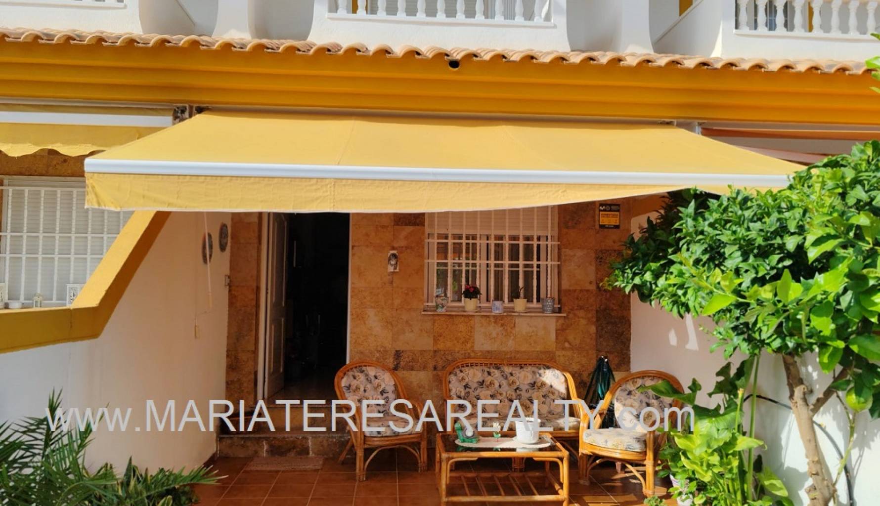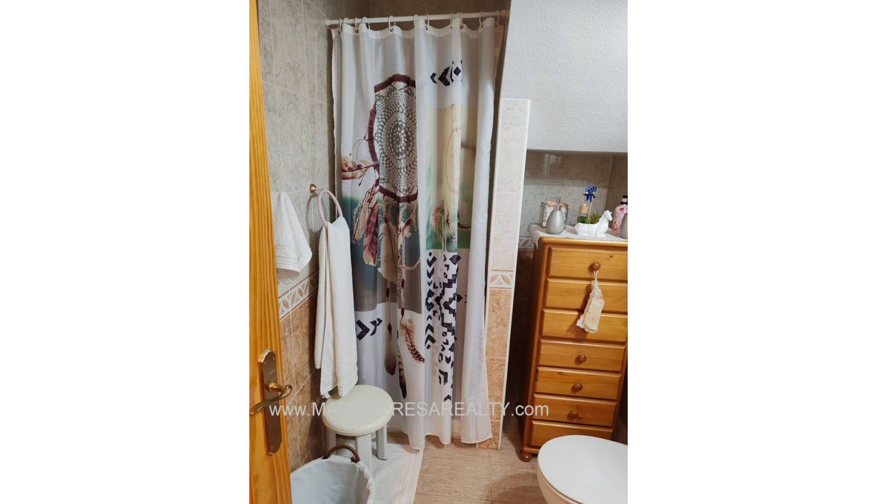 Ideal casa adosada con terraza orientación al sur equipado con toldos, acceso directo a la piscina comunitaria desde la parte trasera de la vivienda y con garaje incluido en el precio. Al entrar a la vivienda en la planta baja tenemos un amplio salón/comedor, un cuarto de baño con ducha, una cocina completamente equipada con una zona de comedor y a su vez da salida a un porche con techo movible que da salida a la zona comunitaria y a la piscina comunitaria. Subiendo a la planta de arriba tenemos un amplio dormitorio con salida a un balcón y armario empotrado, un cuarto de baño equipado con ducha y otro dormitorio con armario empotrado. Al subir a la siguiente planta tenemos un amplio dormitorio con cuarto de baño equipado con ducha en suite y con salida a un solario.