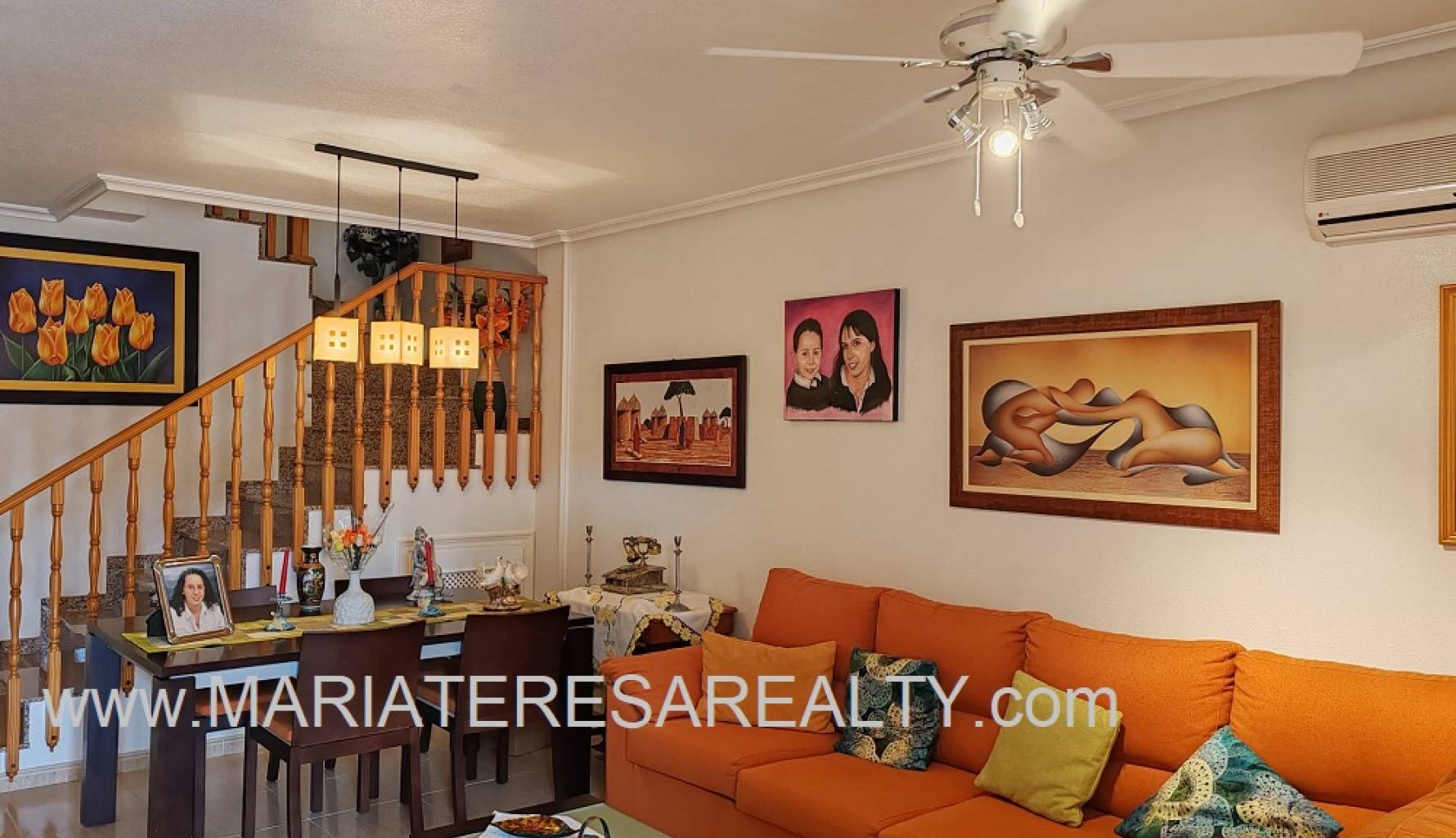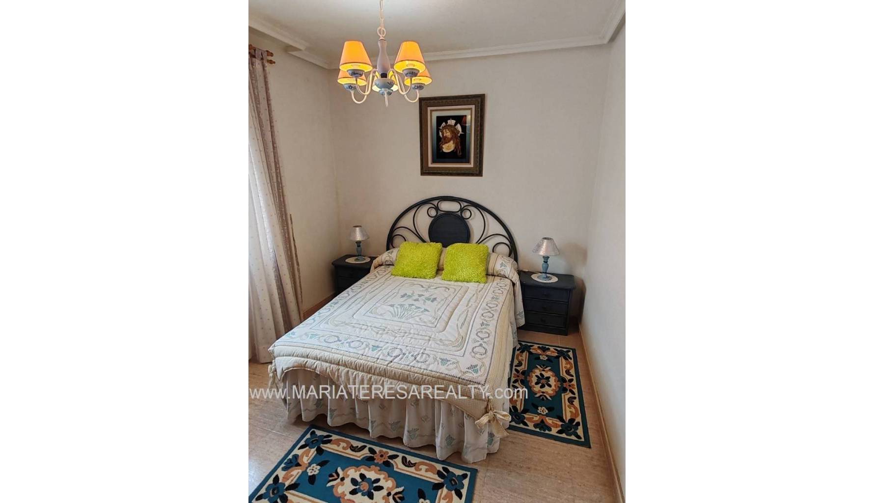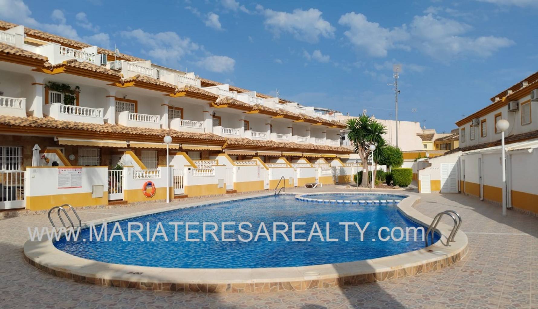 Ideal casa adosada con terraza orientación al sur equipado con toldos, acceso directo a la piscina comunitaria desde la parte trasera de la vivienda y con garaje incluido en el precio. Al entrar a la vivienda en la planta baja tenemos un amplio salón/comedor, un cuarto de baño con ducha, una cocina completamente equipada con una zona de comedor y a su vez da salida a un porche con techo movible que da salida a la zona comunitaria y a la piscina comunitaria. Subiendo a la planta de arriba tenemos un amplio dormitorio con salida a un balcón y armario empotrado, un cuarto de baño equipado con ducha y otro dormitorio con armario empotrado. Al subir a la siguiente planta tenemos un amplio dormitorio con cuarto de baño equipado con ducha en suite y con salida a un solario.
