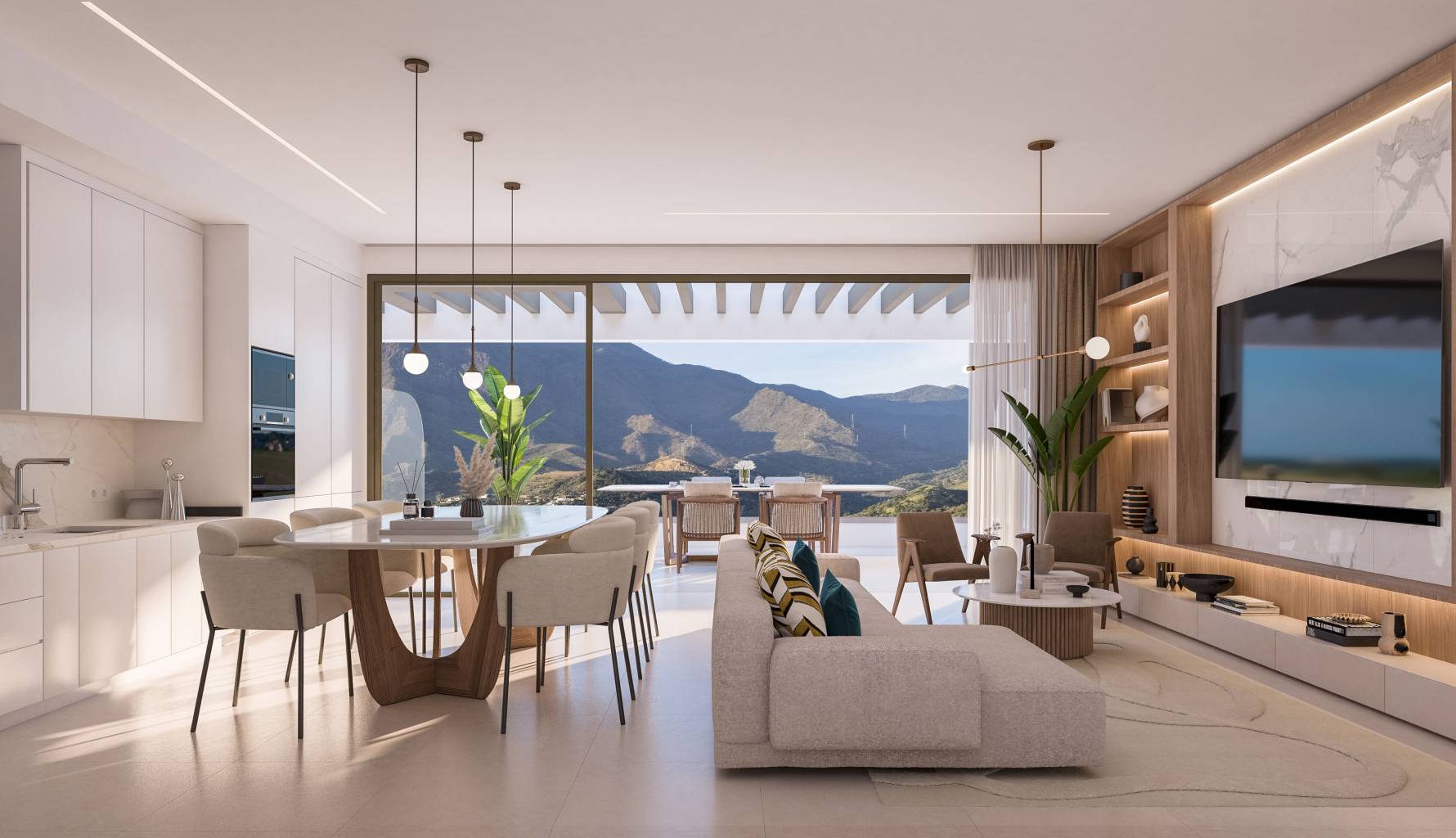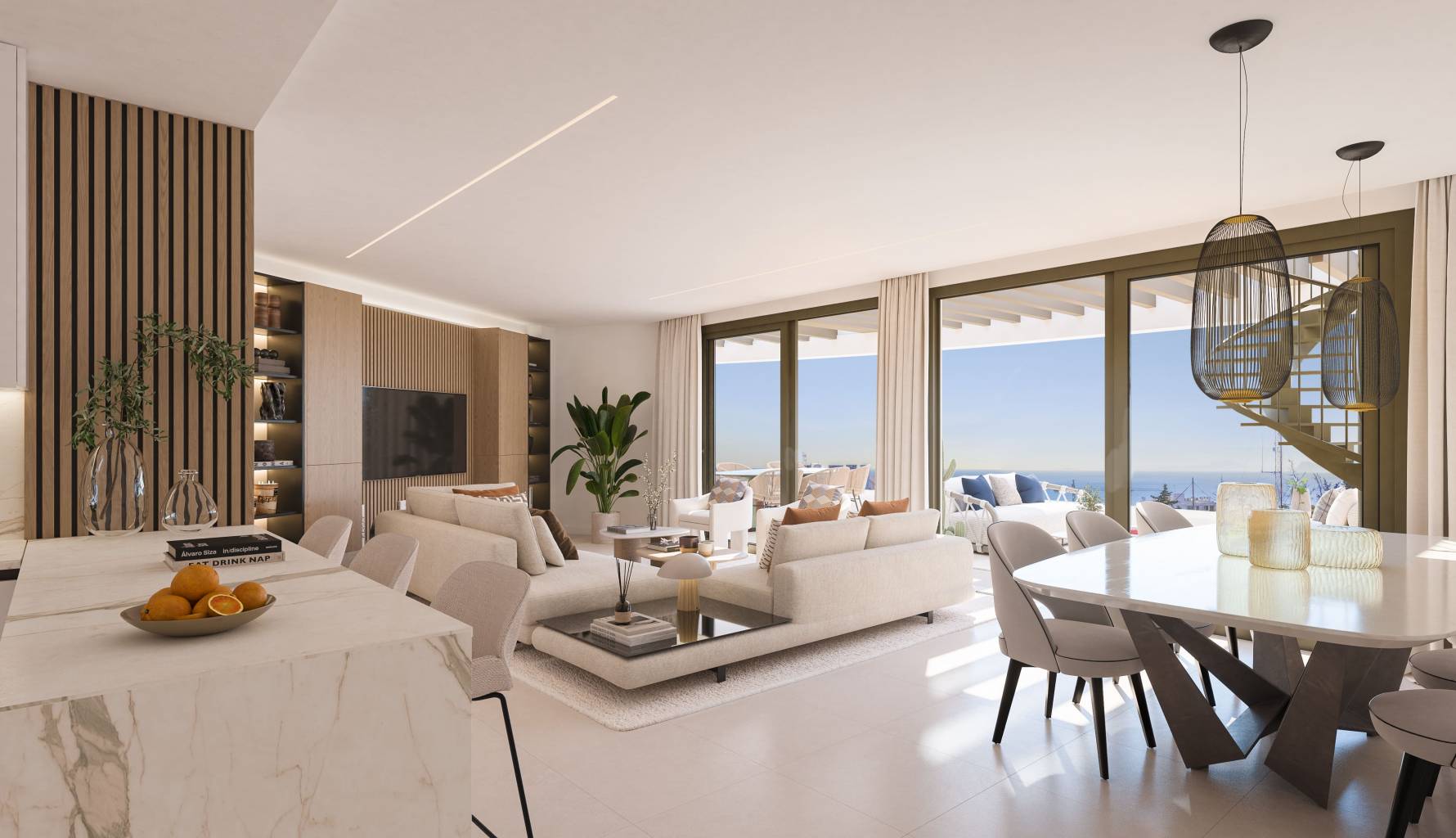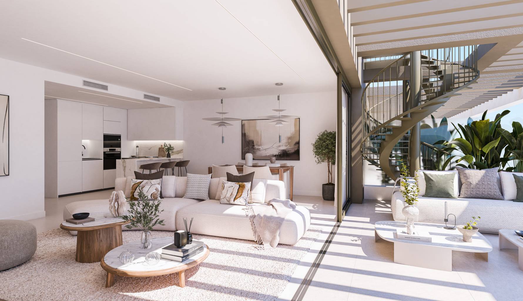 Los exteriores de este residencial en Estepona están diseñados para ofrecer un espacio de vida al aire libre excepcional. Cada propiedad cuenta con terraza, proporcionando un lugar perfecto para disfrutar del clima mediterráneo. Además, algunas tipologías incluyen jardín privado, ideal para quienes buscan un espacio verde personal. La inclusión de solariums en ciertas propiedades permite disfrutar de vistas panorámicas y maximizar la exposición al sol. La cercanía al mar, a solo 2 km, añade un atractivo especial, permitiendo disfrutar de la brisa marina y vistas al mar desde varias ubicaciones dentro del residencial.