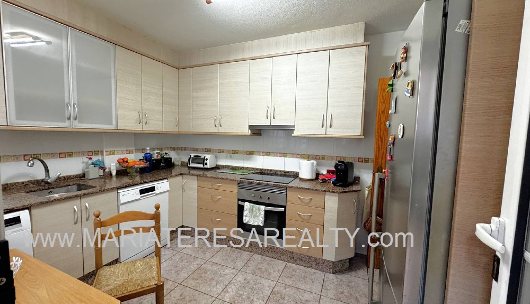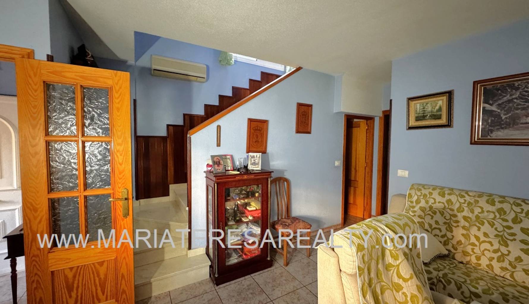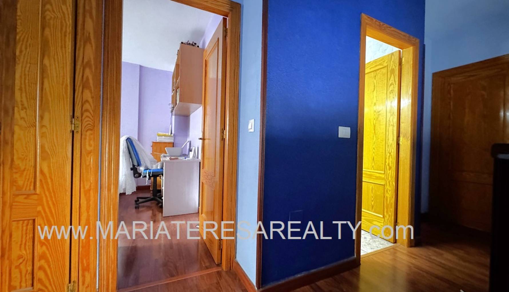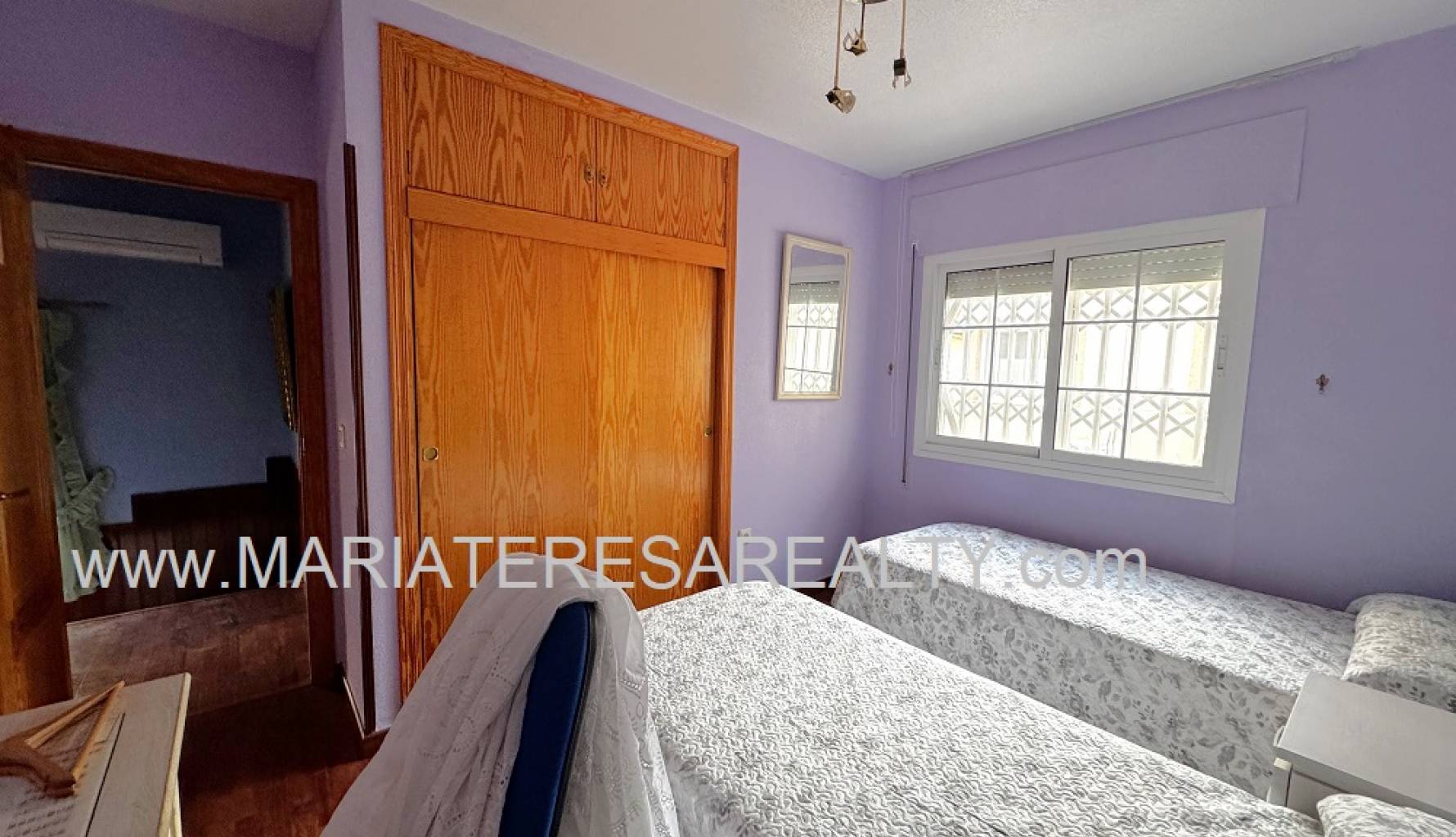 Maravilloso Dúplex con amplio jardín de 90m2 con toldos y garaje de 28m2. En la planta baja que está constituida por 53m2, tenemos al entrar a la vivienda un pequeño recibidor que independiza la entrada de la vivienda con el salón, un amplio salón/comedor con chimenea decorativa, seguimos y bajo la escalera tenemos una pequeña despensa, un cuarto de baño equipado con ducha, cocina independiente totalmente equipada que a su vez tiene salida a un amplio patio trasero con barbacoa de obra y toldos, el patio comunica directamente con el garaje y este a su vez tiene unas escaleras que conducen a una buhardilla de 28m2 con balcón y chimenea funcional. En la planta alta de este dúplex tenemos una superficie construida de 67m2, la cual consta de cuatro amplios dormitorios con armarios empotrados respectivos y un cuarto de baño equipado con ducha. Dos de los dormitorios están equipados con aire acondicionado al igual que el salón y el pasillo que dirige a las habitaciones. Esta vivienda dispone de rejas de seguridad, ventanas de doble cristal (climalit), mosquiteras en las ventanas y en las puertas entrada a la vivienda y salida al patio.