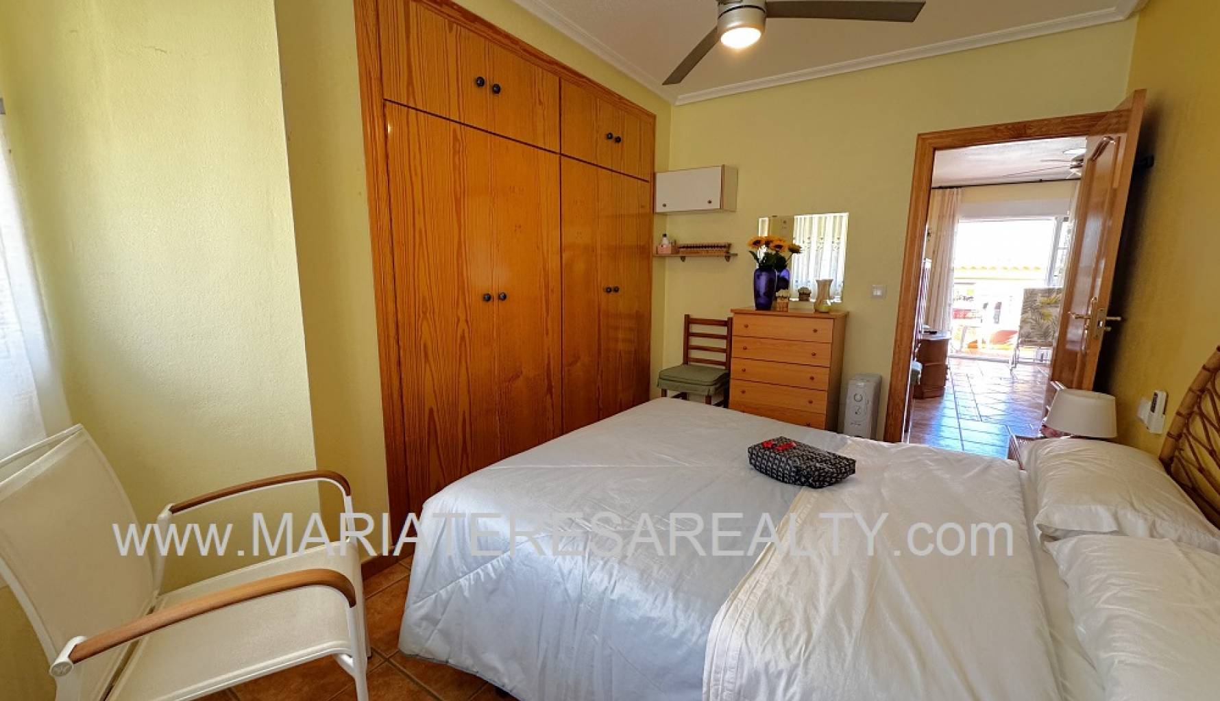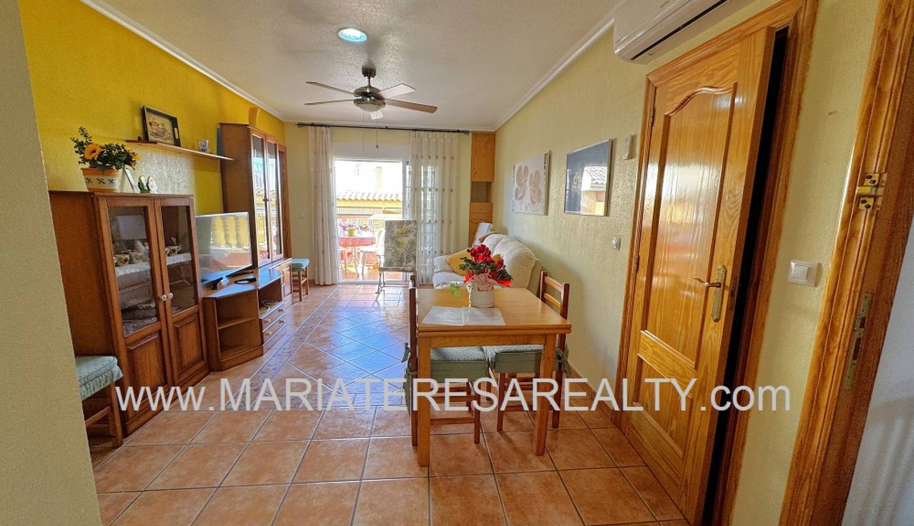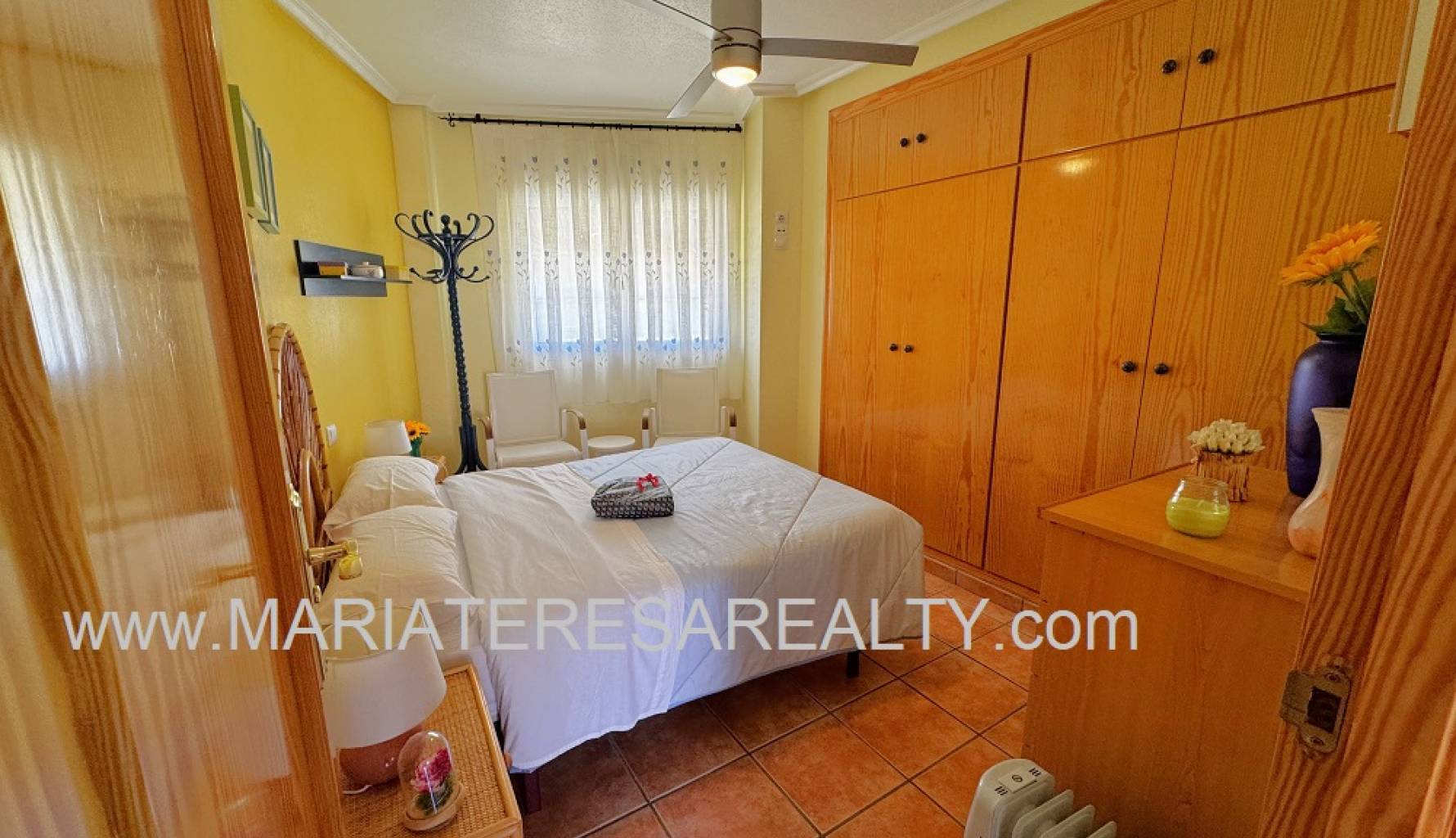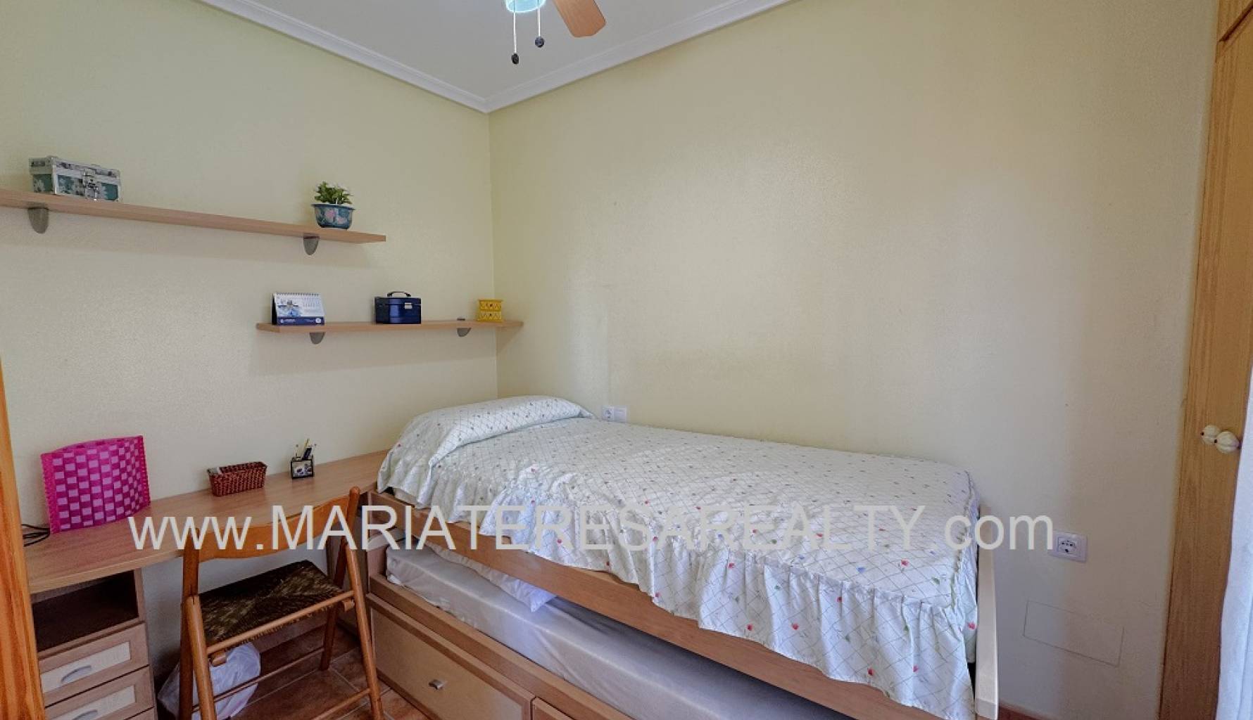 Acogedor piso en segunda planta con ascensor en el centro de Los Alcázares a tan solo 100 metros de la plaza del espejo y la playa. Este edificio consta de únicamente con una vivienda por planta por lo cual solo hay un apartamento en planta baja, un piso en planta primera, en segunda planta esta vivienda y en el ático un apartamento. Al entrar a la vivienda tenemos un amplio y luminoso salón/comedor con aire acondicionado, con salida balcón/terraza con toldo y una amplia despensa/trastero, seguimos con la cocina que es independiente y está completamente equipada con toldos en la ventana y da paso a un dormitorio individual con armario empotrado y ventilador de techo, un amplio cuarto de baño equipado con ducha, un amplio dormitorio principal con cama de matrimonio y un gran armario empotrado también con toldos en la ventana y ventilador de techo y un tercer dormitorio con armario empotrado, ventilador de techo y este dormitorio tiene acceso al balcón que comunica con el salón. El solario comunitario de 15m2 que es accesible por ascensor y cuenta con trastero comunitario.