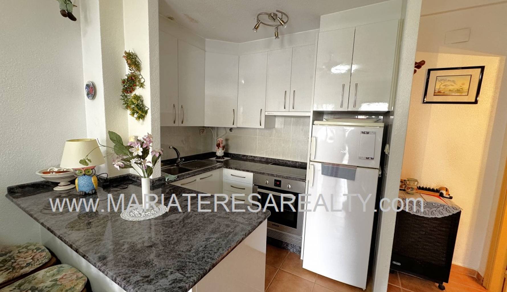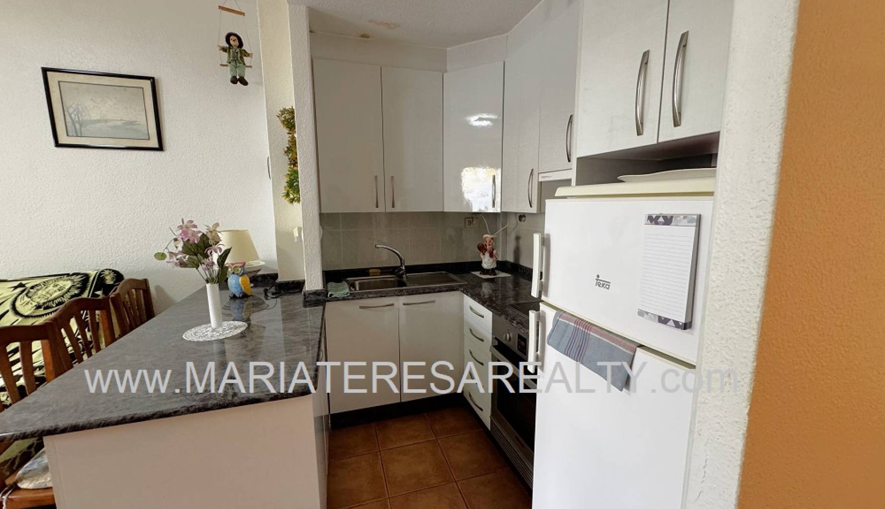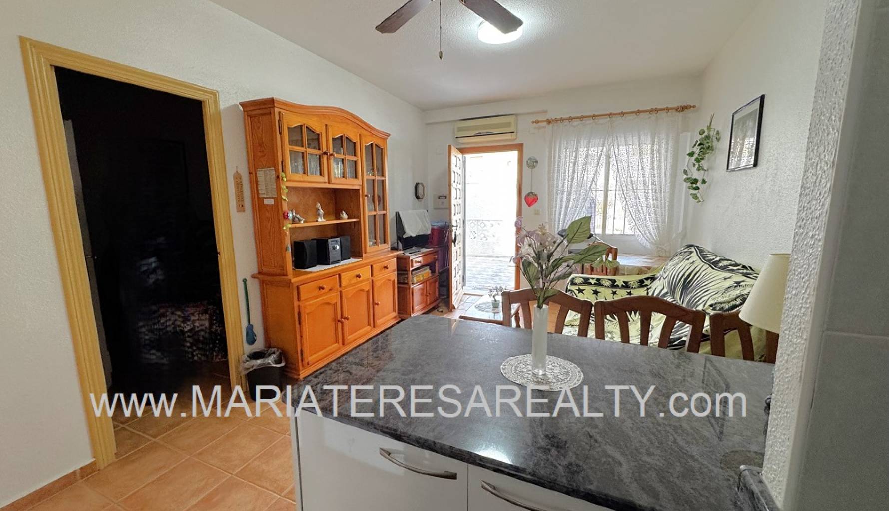 Acogedor apartamento en planta baja con una terraza de 7,26m2 y un jardín de 17,04m2 y un trastero de 3m2, ubicado en la urbanización Oasis en los Narejos. Con 39m2 construidos está distribuida en un amplio salón/comedor con aire acondicionado y con cocina abierta completamente equipada, un amplio dormitorio con ventilador de techo y armarios movibles y un cuarto de baño equipado con ducha y lavadora con carga superior.