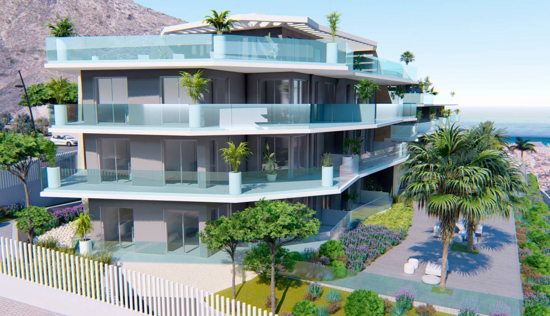 Los exteriores de estos áticos están pensados para ofrecer un espacio de relajación y disfrute al aire libre. Cada propiedad cuenta con una amplia terraza, perfecta para disfrutar de las vistas panorámicas al mar y el entorno natural de Benalmádena. Además, los residentes tienen acceso a un solárium comunitario, ideal para tomar el sol en un ambiente privado y exclusivo. La cercanía al mar, a solo 4 km, permite disfrutar de paseos costeros y actividades acuáticas en cualquier momento. El diseño exterior se complementa con zonas ajardinadas que aportan un toque de frescura y naturaleza al conjunto.